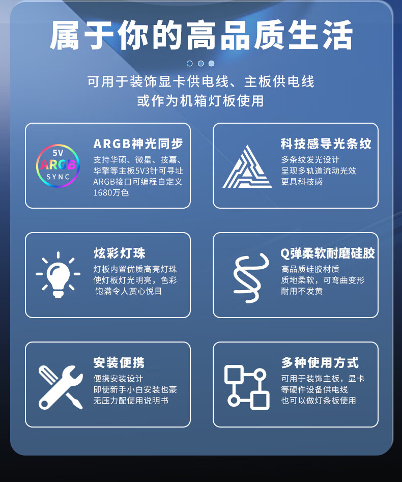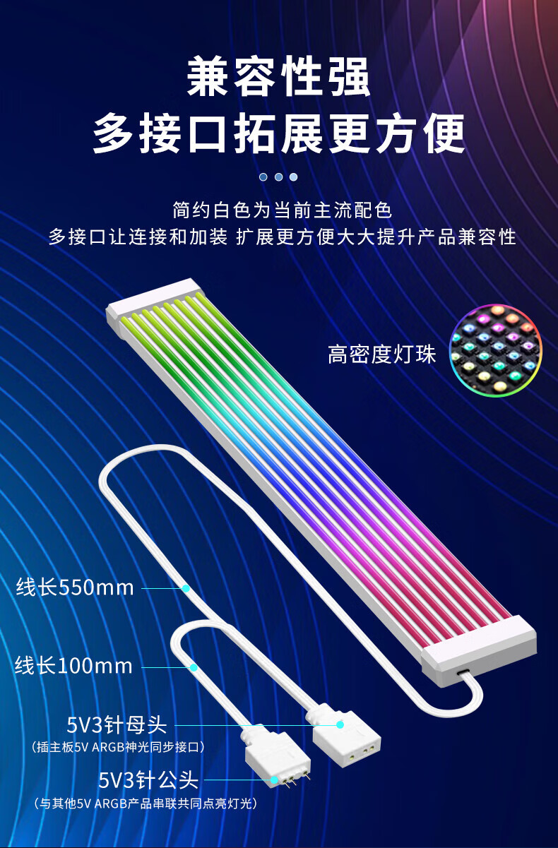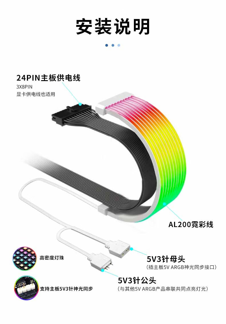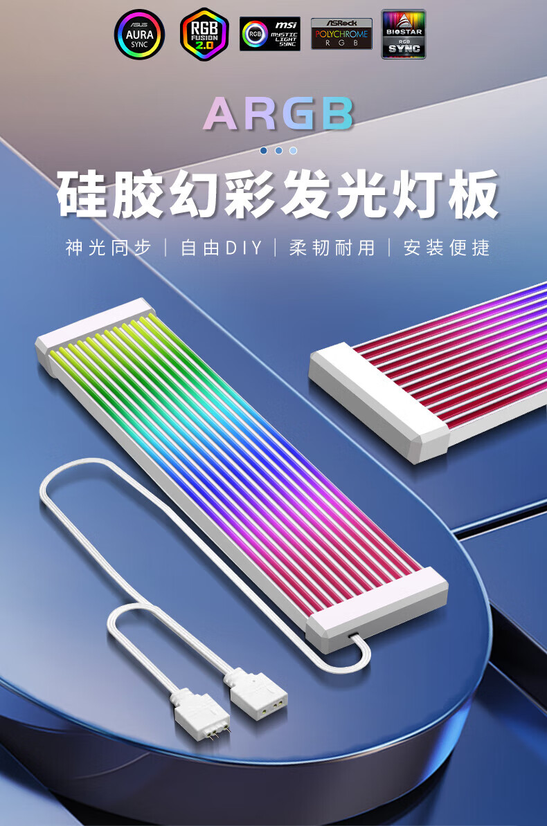 OKOU霓虹线ARGB神光同步装饰灯显卡霓虹线灯条8Pin/24Pin主板显卡装饰RGB电脑主板机箱电源霓彩发光线 【单/双8P显卡供电线用】ARGB霓虹线