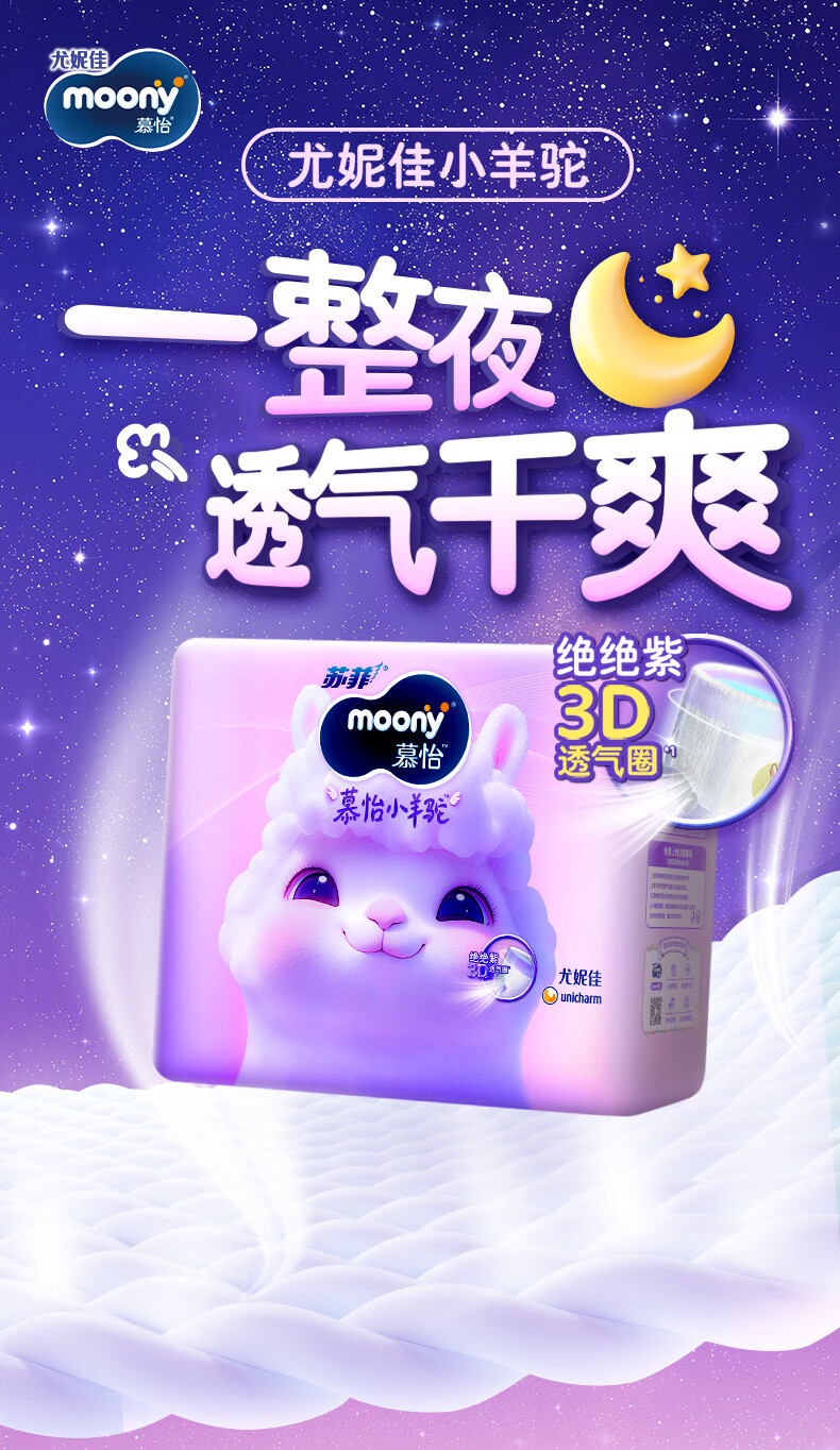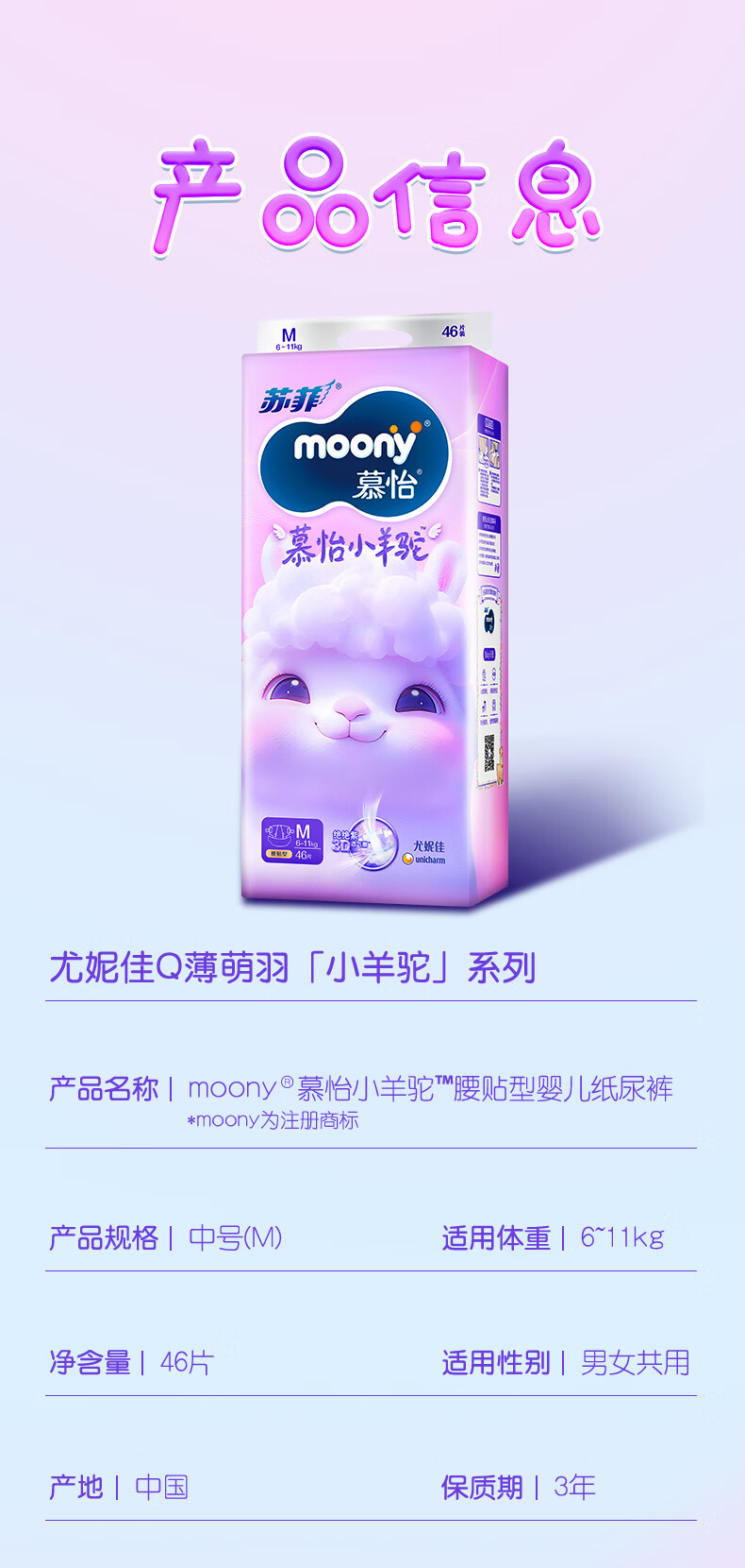 MOONY苏菲尤妮佳Q薄萌羽慕怡小羊驼纸尿裤尿不湿M46片(6-11kg)