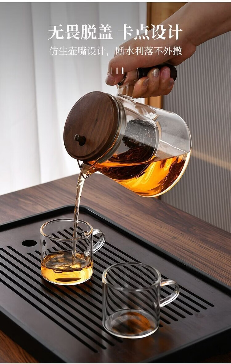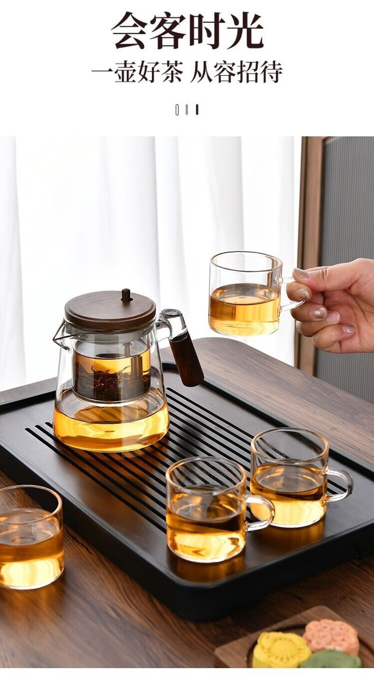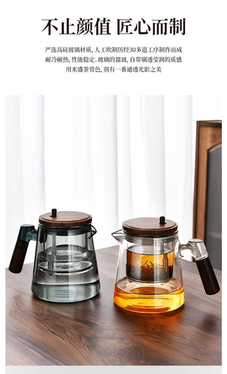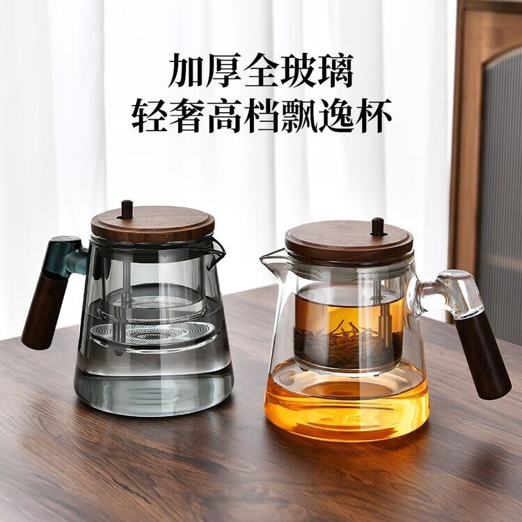 简漾玻璃内胆飘逸杯泡茶壶茶水分离懒人神器家用轻奢高档功夫茶具套装 烟灰净心飘逸壶