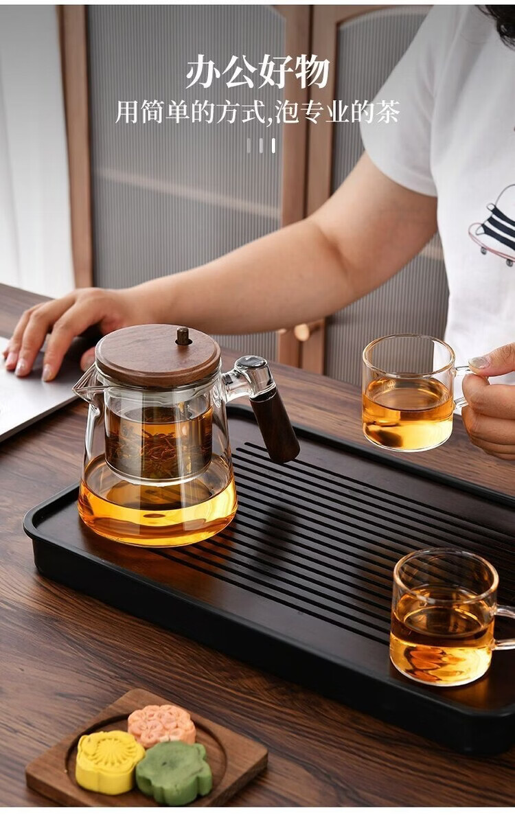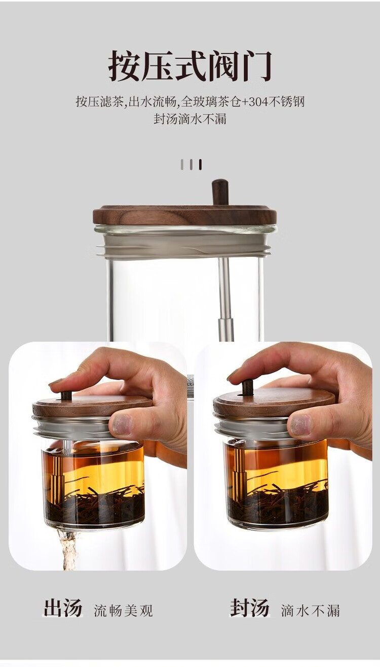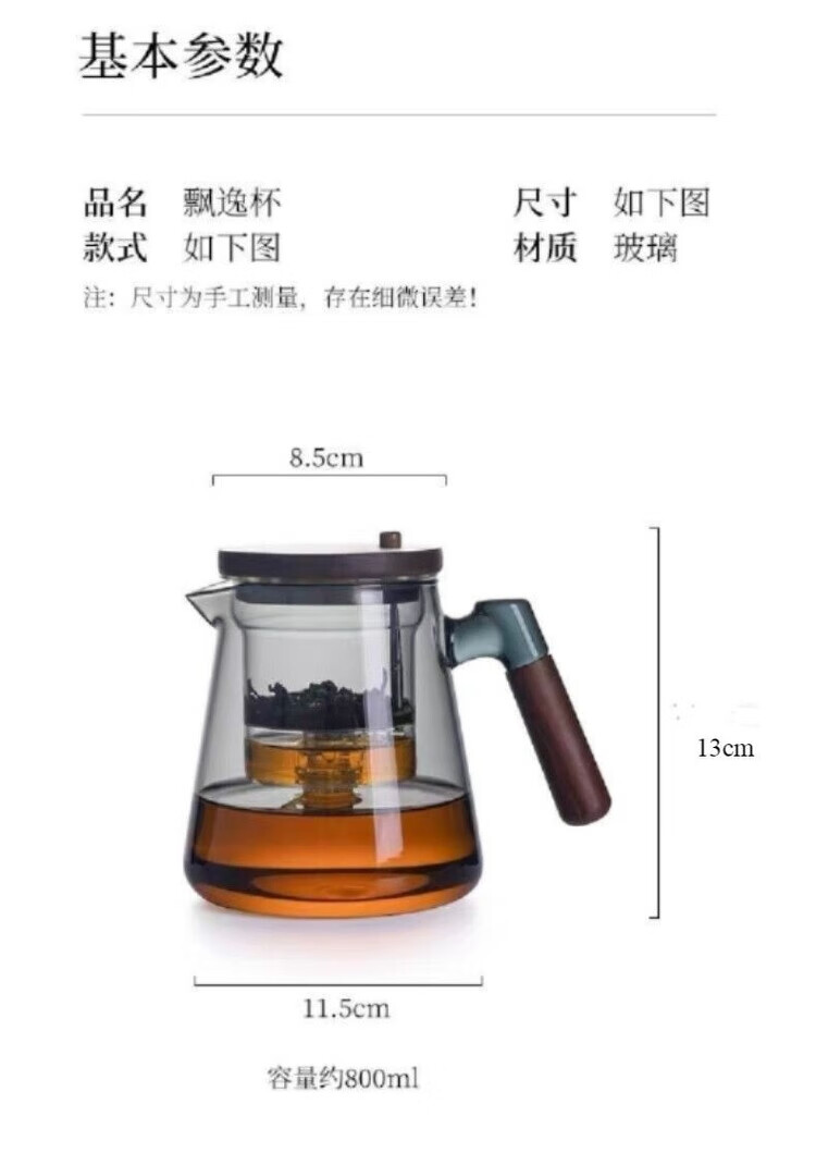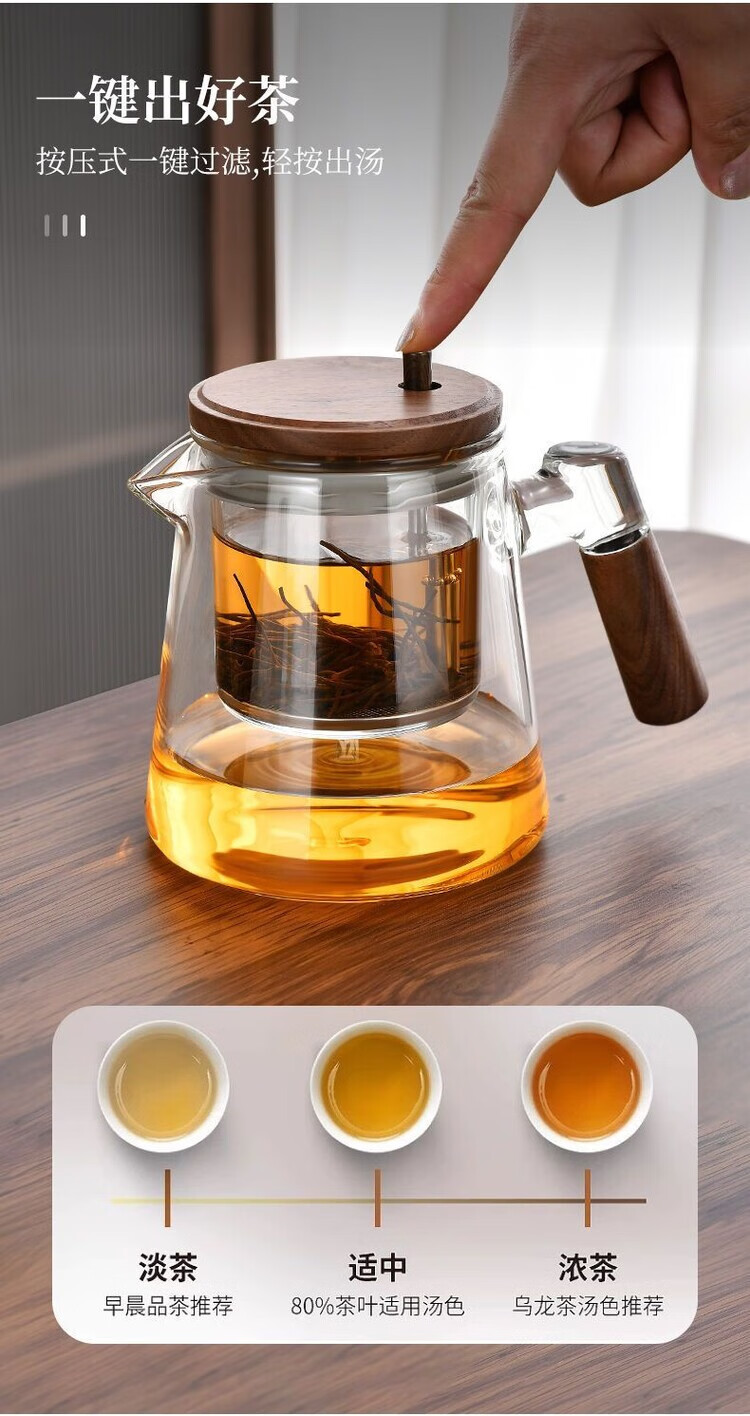 简漾玻璃内胆飘逸杯泡茶壶茶水分离懒人神器家用轻奢高档功夫茶具套装 烟灰净心飘逸壶
