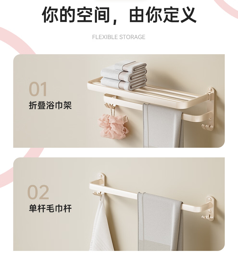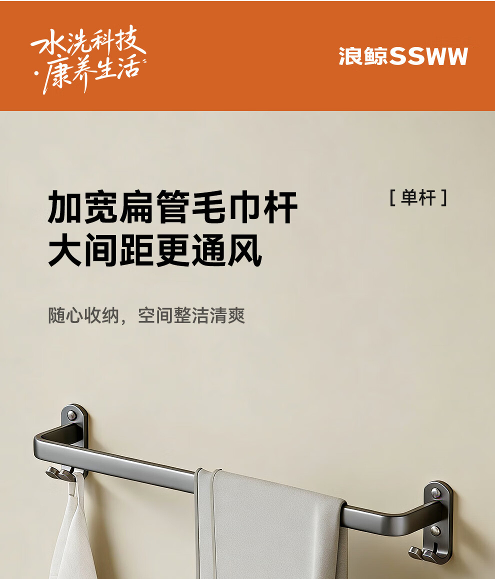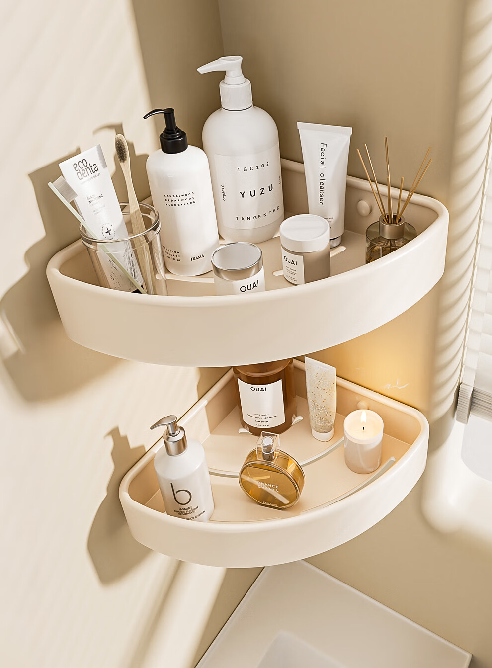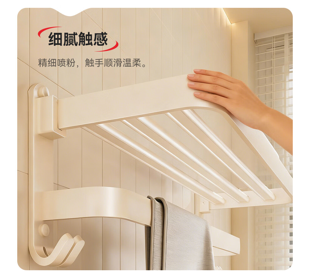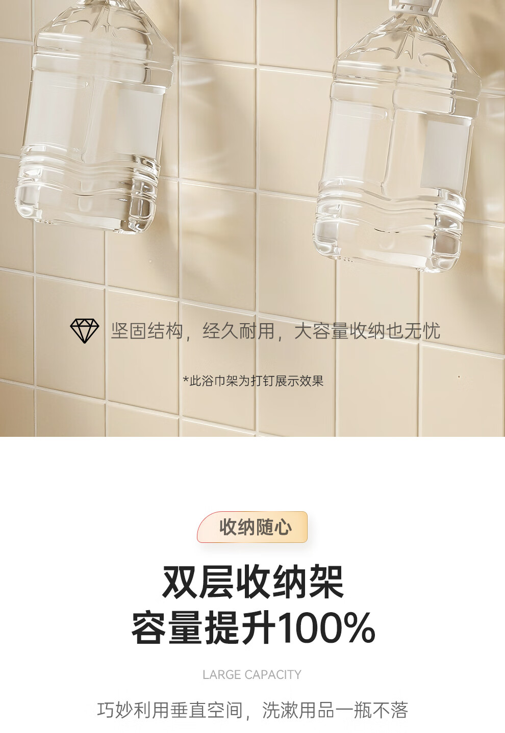 浪鲸(SSWW)卫浴免打孔太空铝吸盘毛巾架置物架折叠浴巾架浴室用品壁挂式挂件 【奶白】单层三角收纳篮