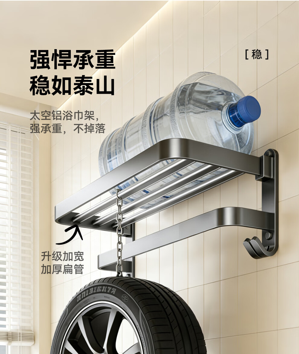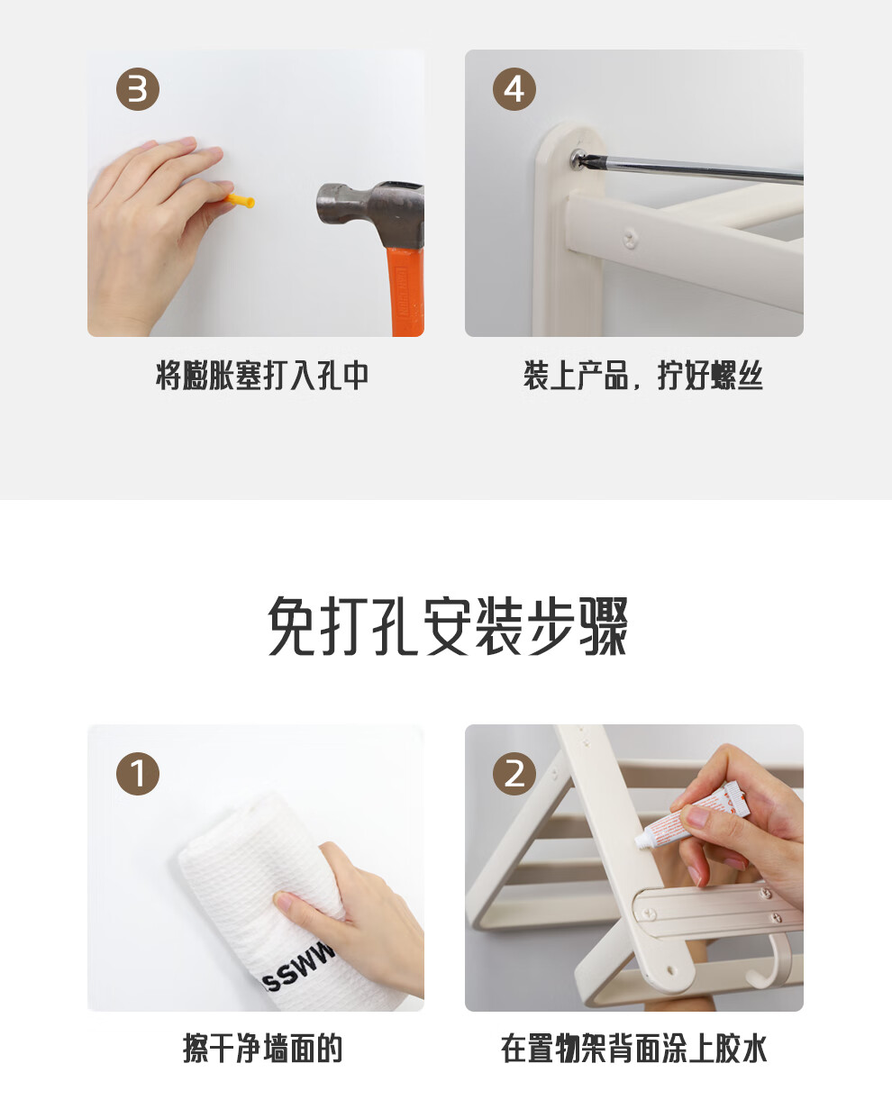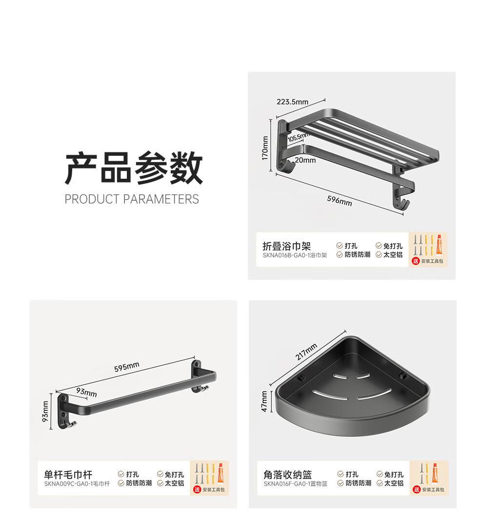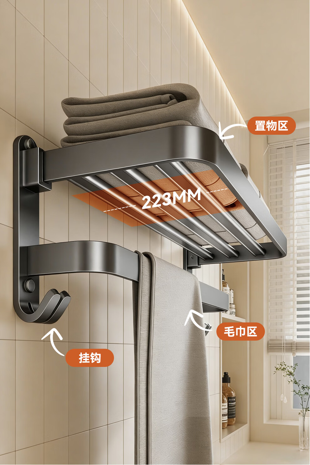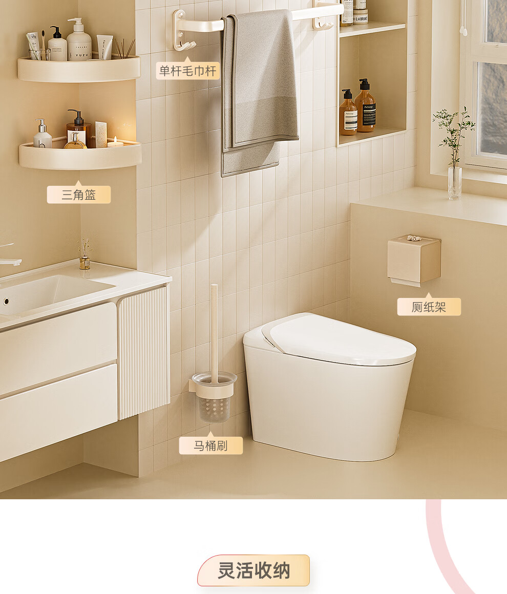 浪鲸(SSWW)卫浴免打孔太空铝吸盘毛巾架置物架折叠浴巾架浴室用品壁挂式挂件 【奶白】单层三角收纳篮