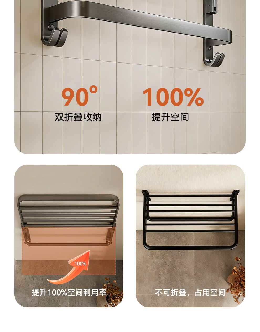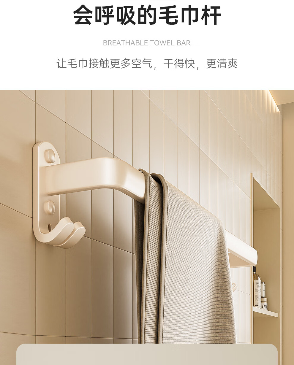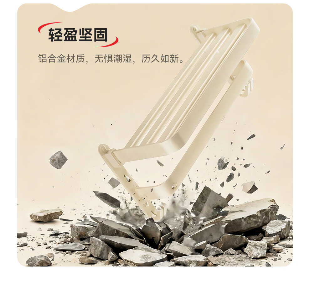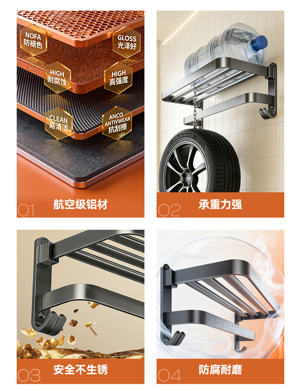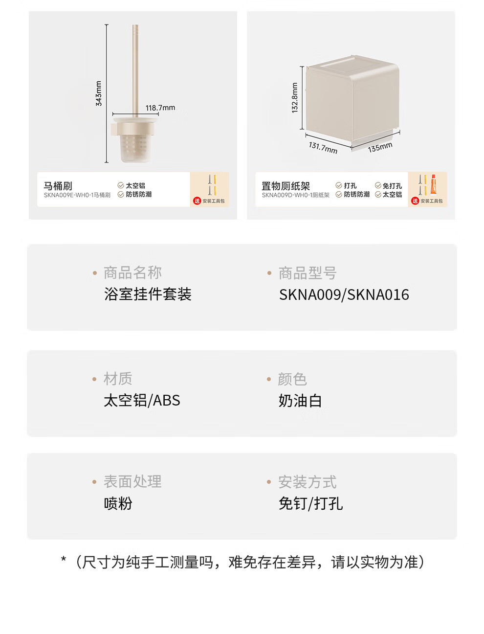 浪鲸(SSWW)卫浴免打孔太空铝吸盘毛巾架置物架折叠浴巾架浴室用品壁挂式挂件 【奶白】单层三角收纳篮