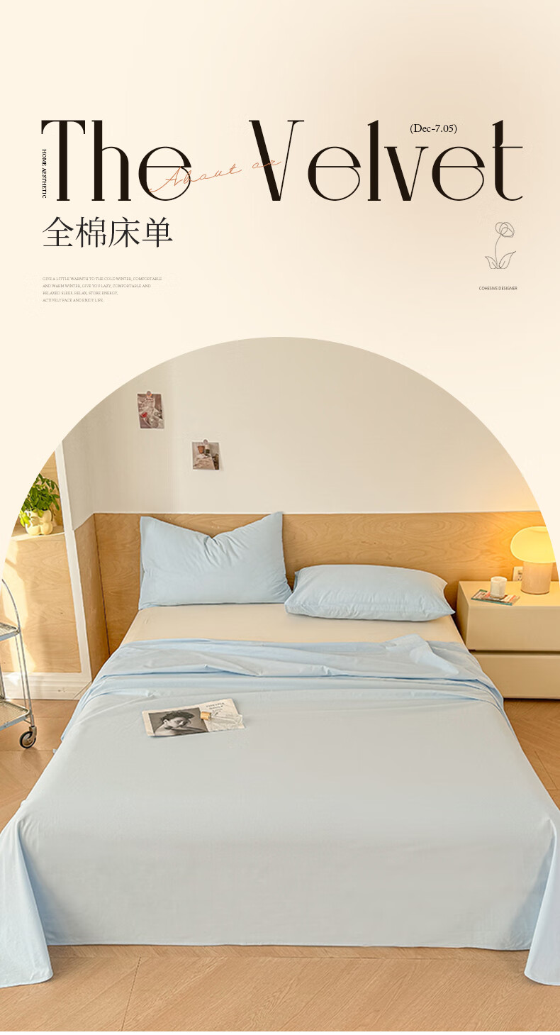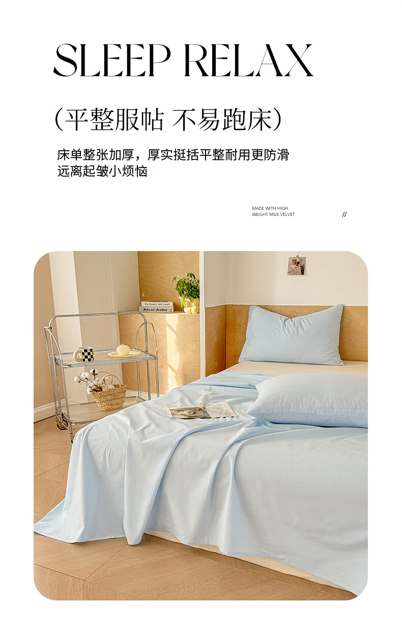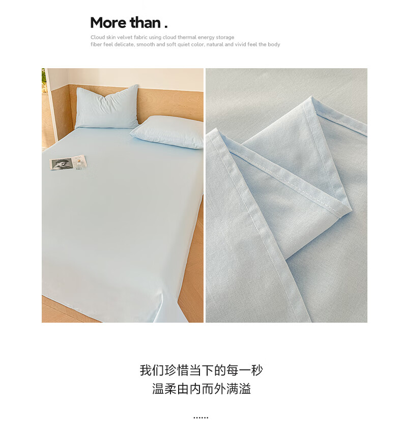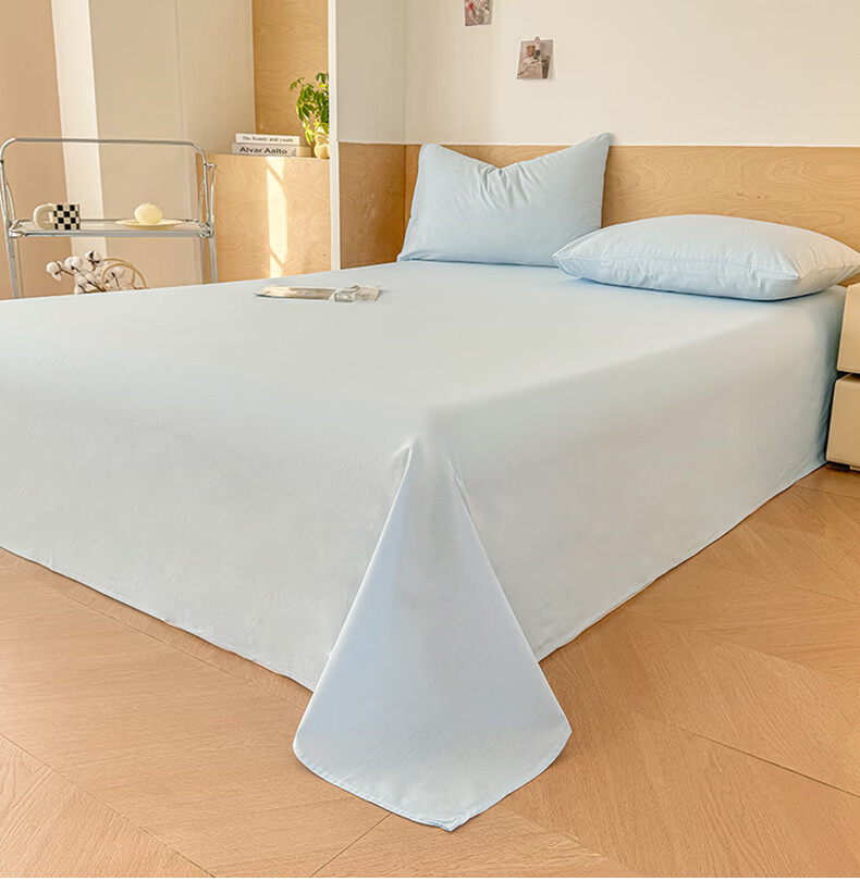 猫人(MiiOW)100%全棉加厚纯色水洗棉床单件家用纯棉被单人学生宿舍四季通用 天蓝【云柔触感丨柔软细腻】 单床单:230*240cm【适合1.8m床】