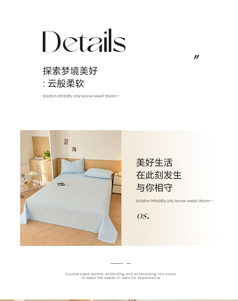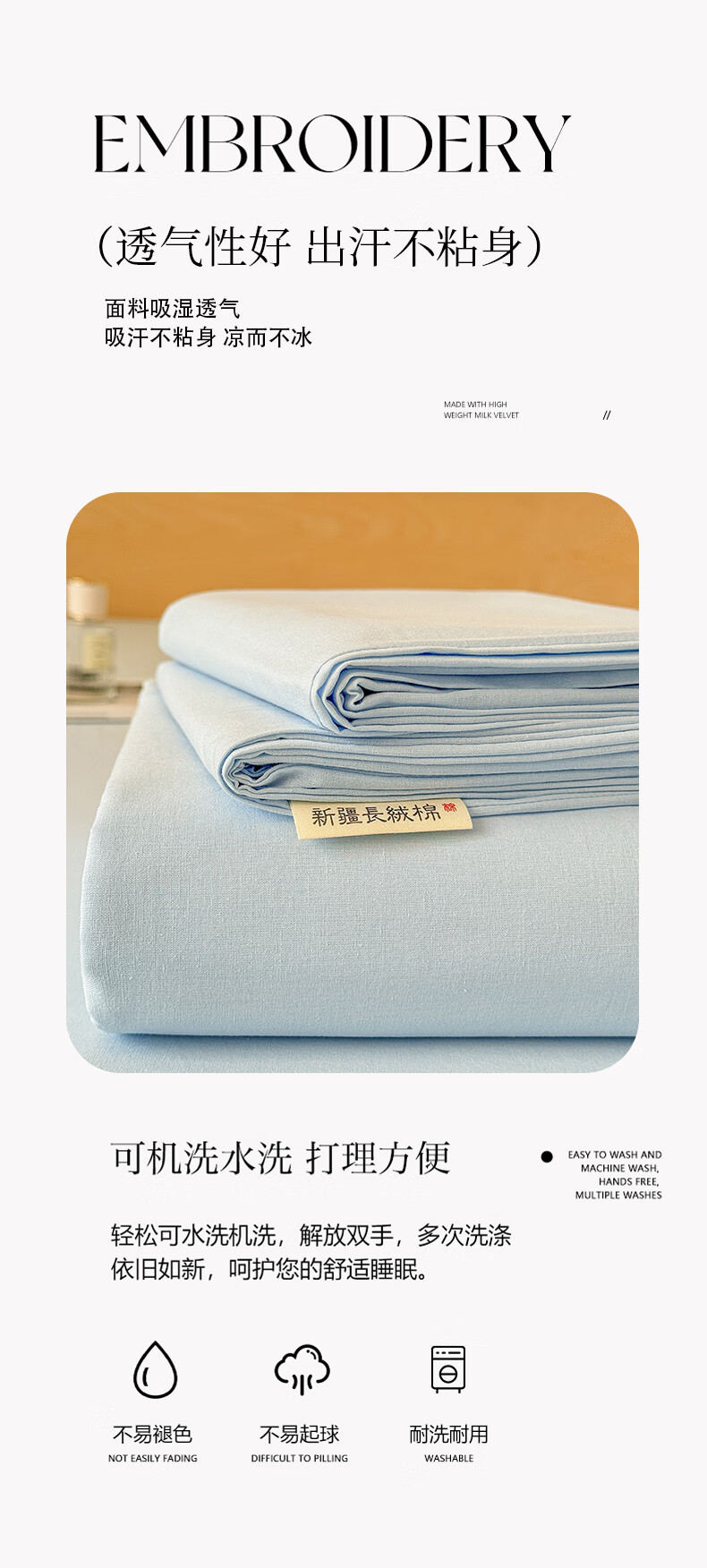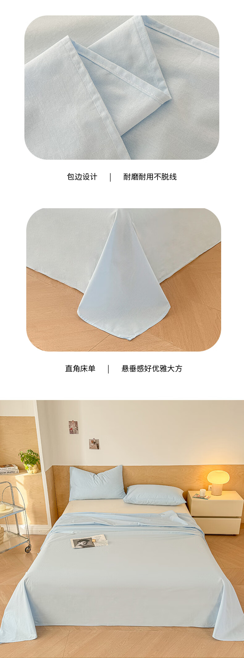 猫人(MiiOW)100%全棉加厚纯色水洗棉床单件家用纯棉被单人学生宿舍四季通用 天蓝【云柔触感丨柔软细腻】 单床单:230*240cm【适合1.8m床】