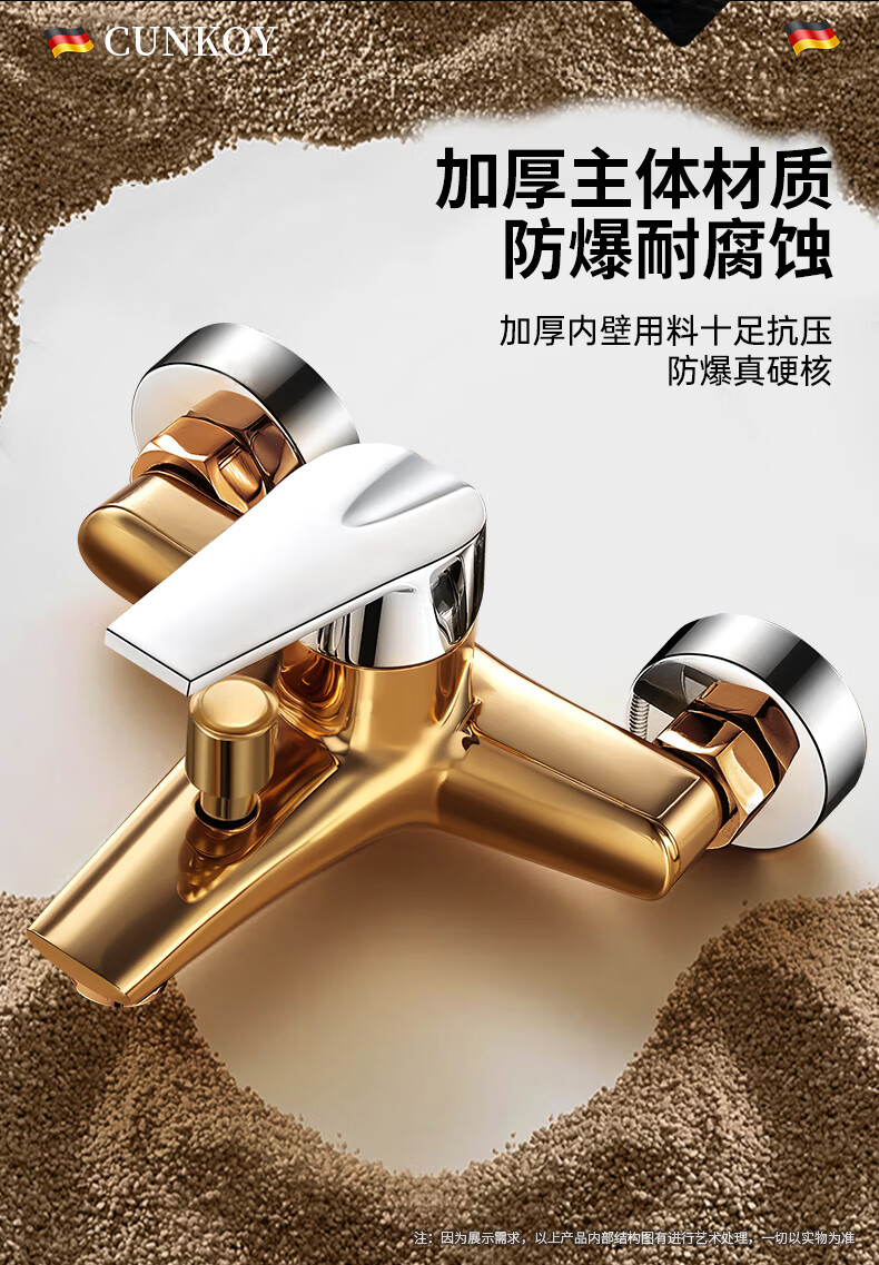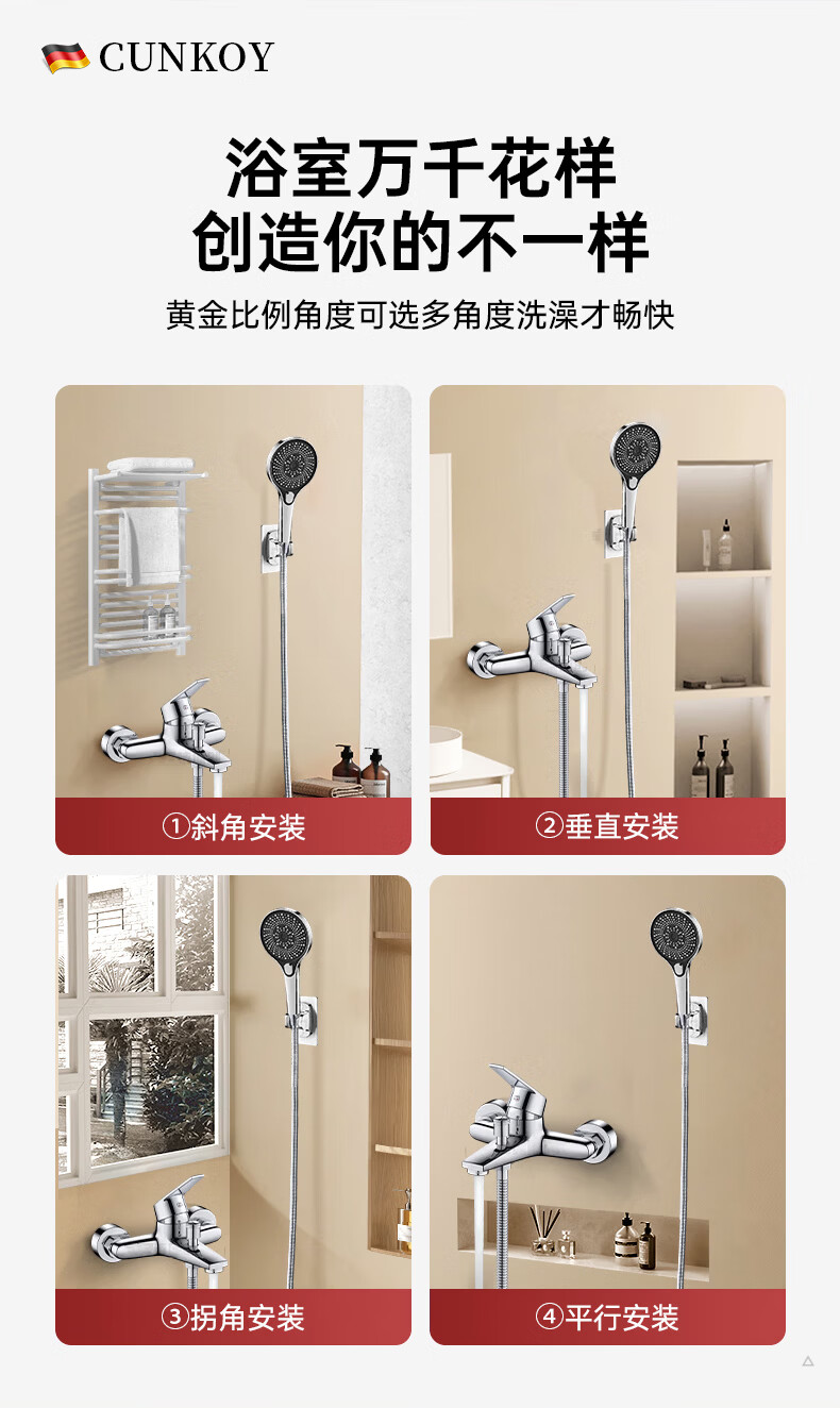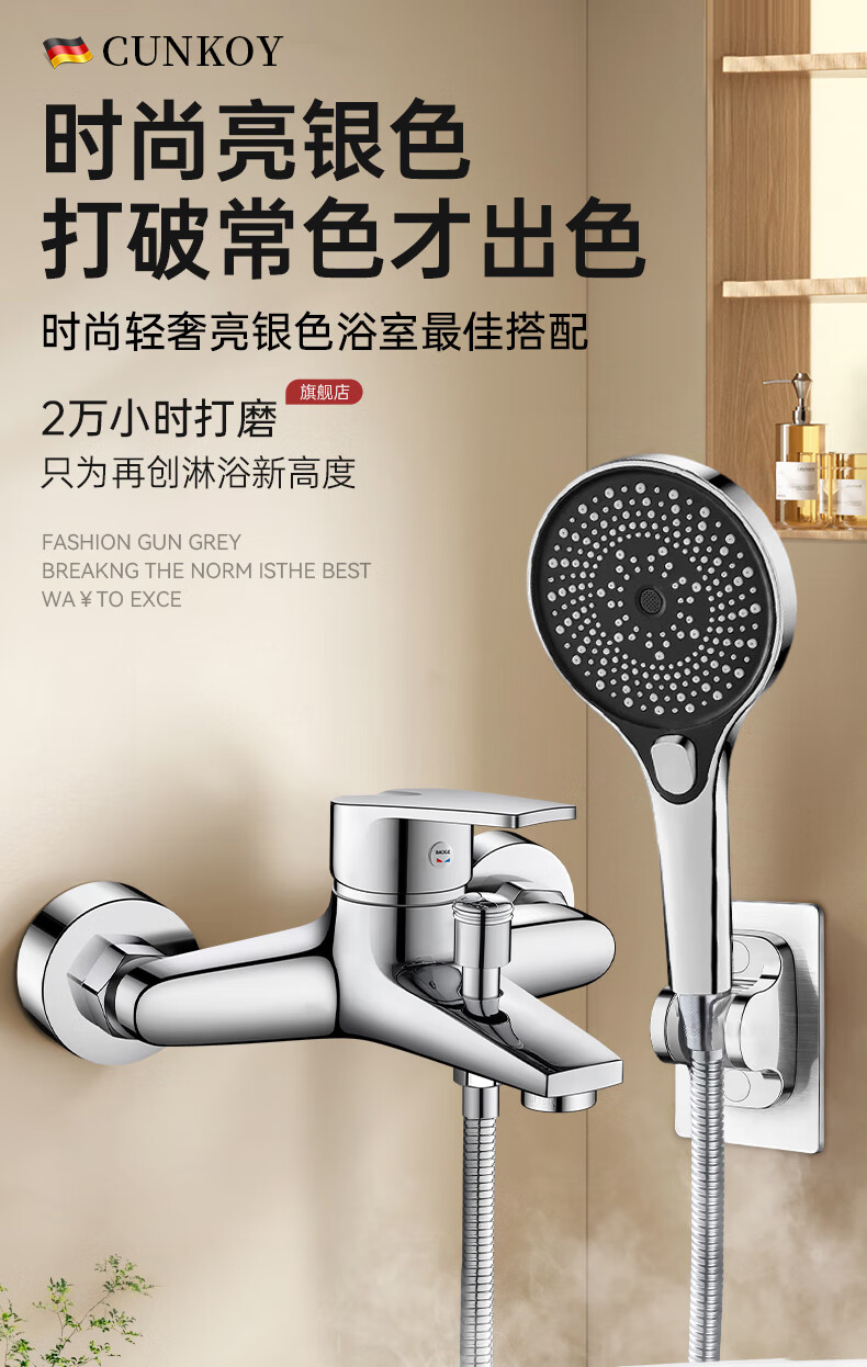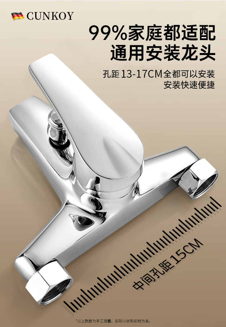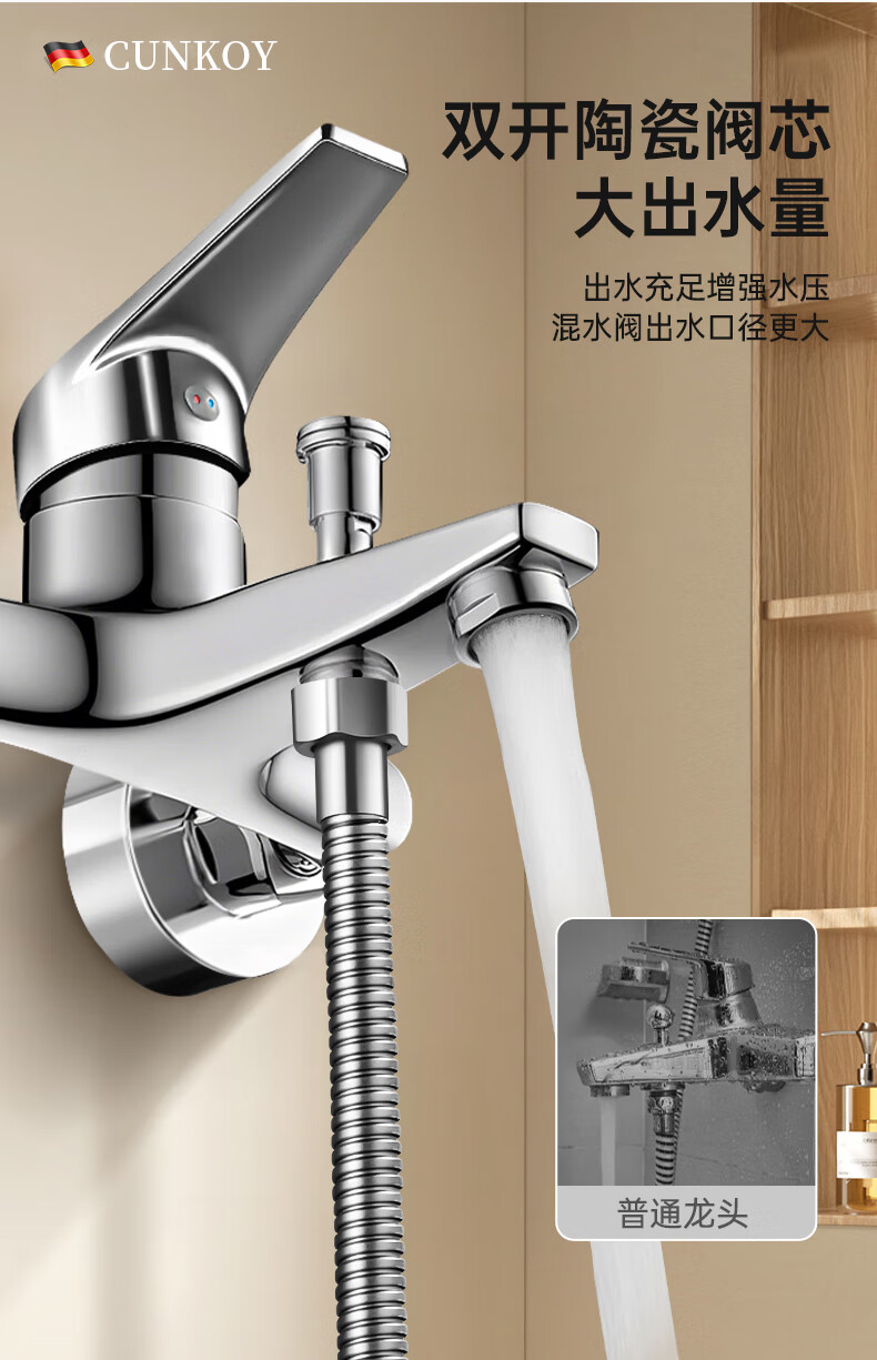 CUNKOY【德国】花洒淋浴套装一体浴室卫浴混水阀冷热水器无顶喷花洒全套 【亮银】混水阀+增压花洒套装 防溅出水嘴丨赠全套原装配件