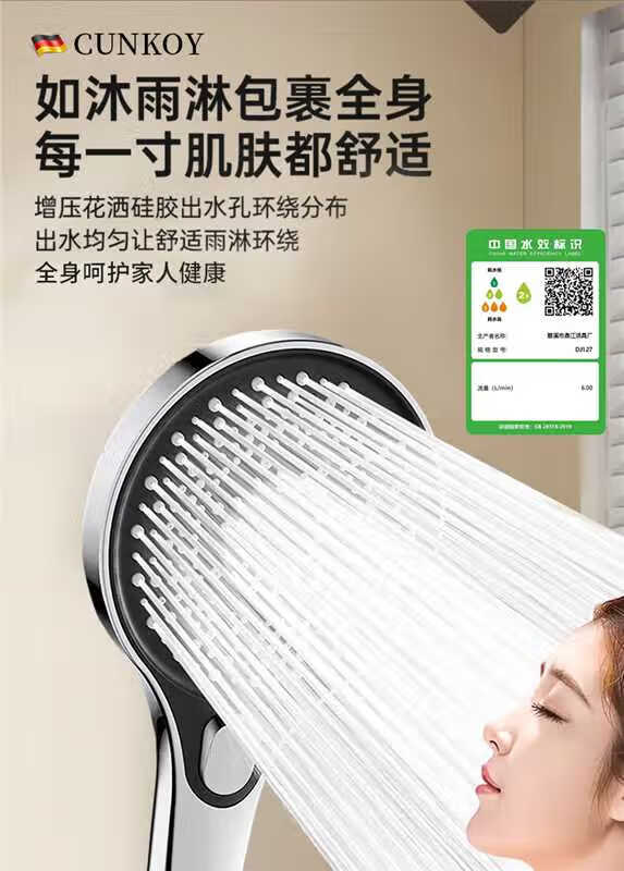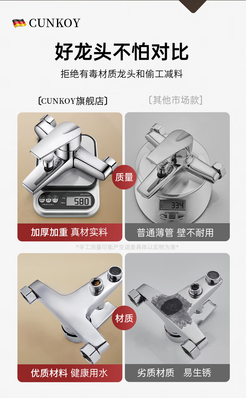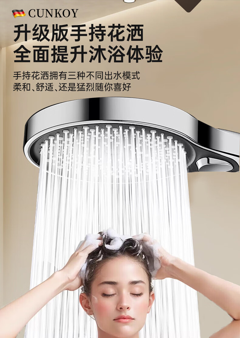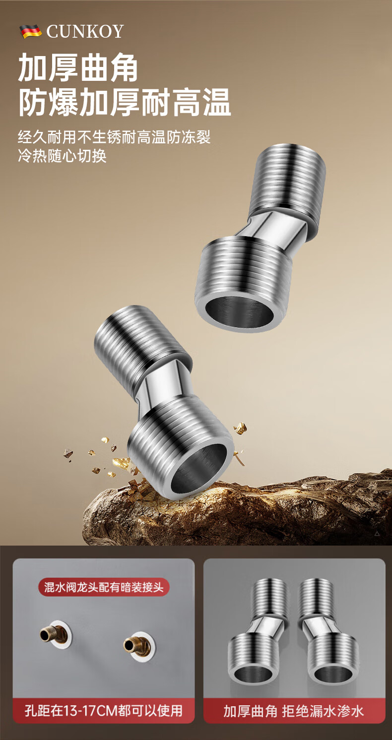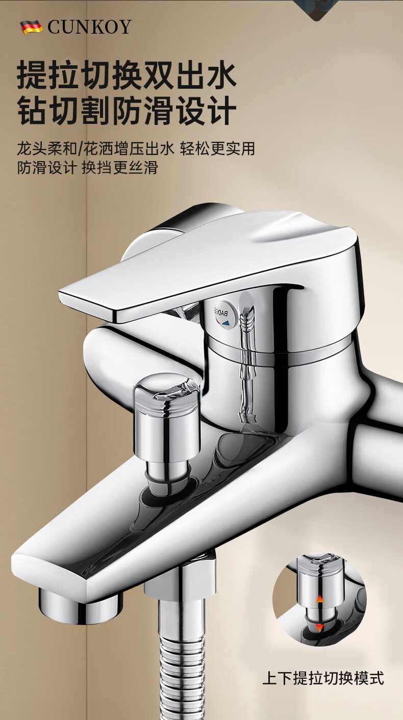 CUNKOY【德国】花洒淋浴套装一体浴室卫浴混水阀冷热水器无顶喷花洒全套 【亮银】混水阀+增压花洒套装 防溅出水嘴丨赠全套原装配件