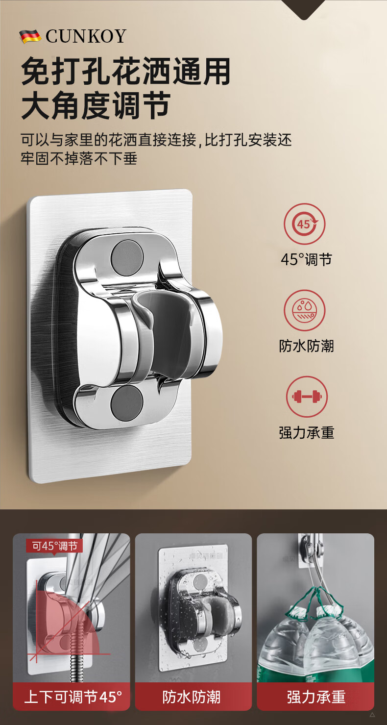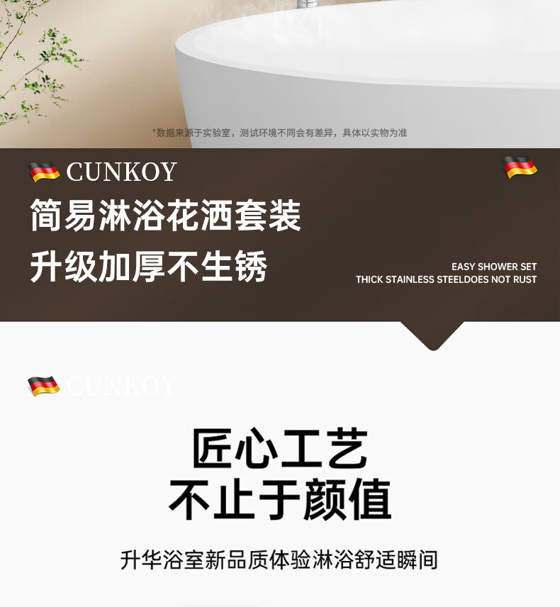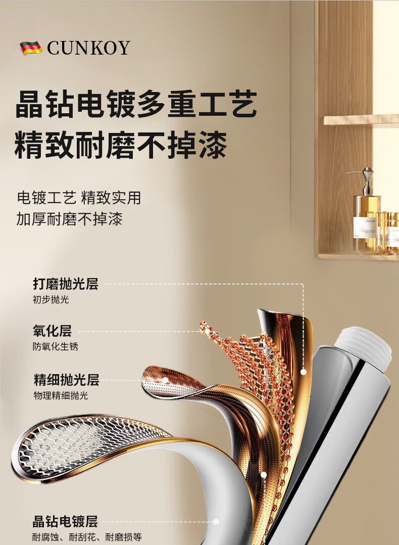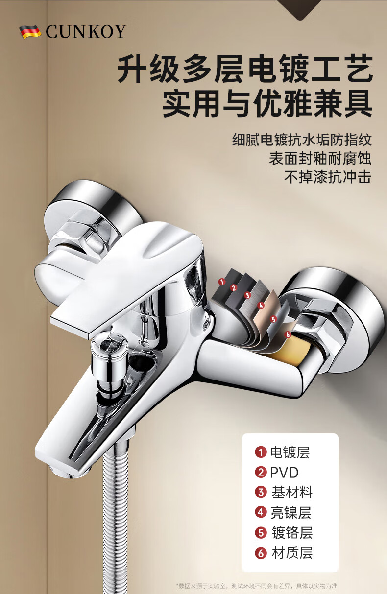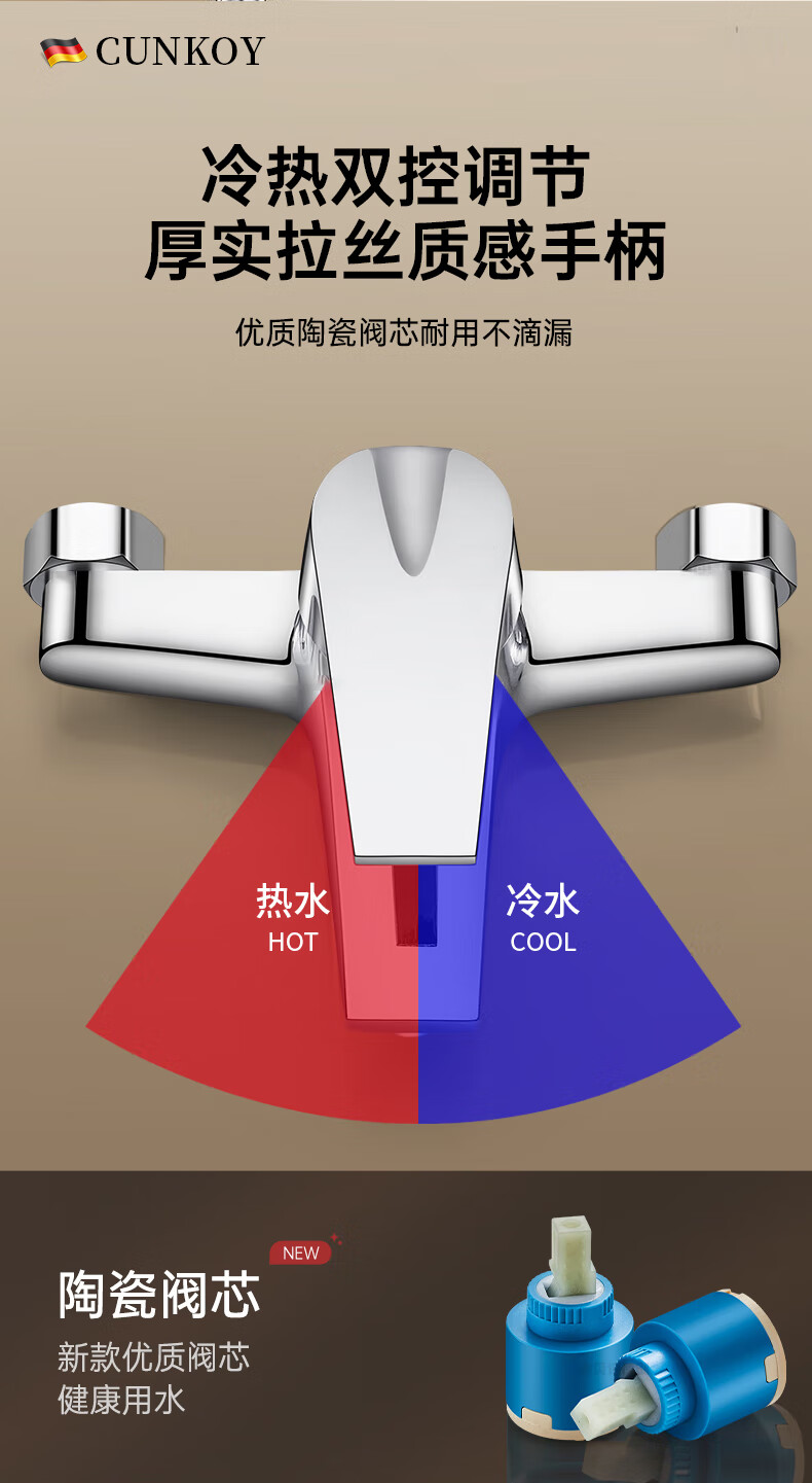 CUNKOY【德国】花洒淋浴套装一体浴室卫浴混水阀冷热水器无顶喷花洒全套 【亮银】混水阀+增压花洒套装 防溅出水嘴丨赠全套原装配件