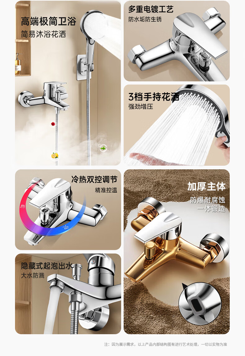 壹品印象家用面盆冷热二合一水龙头洗手盆卫生间万向机械臂浴室洗漱台龙头 太空银【两档调节+80cm冷热管】