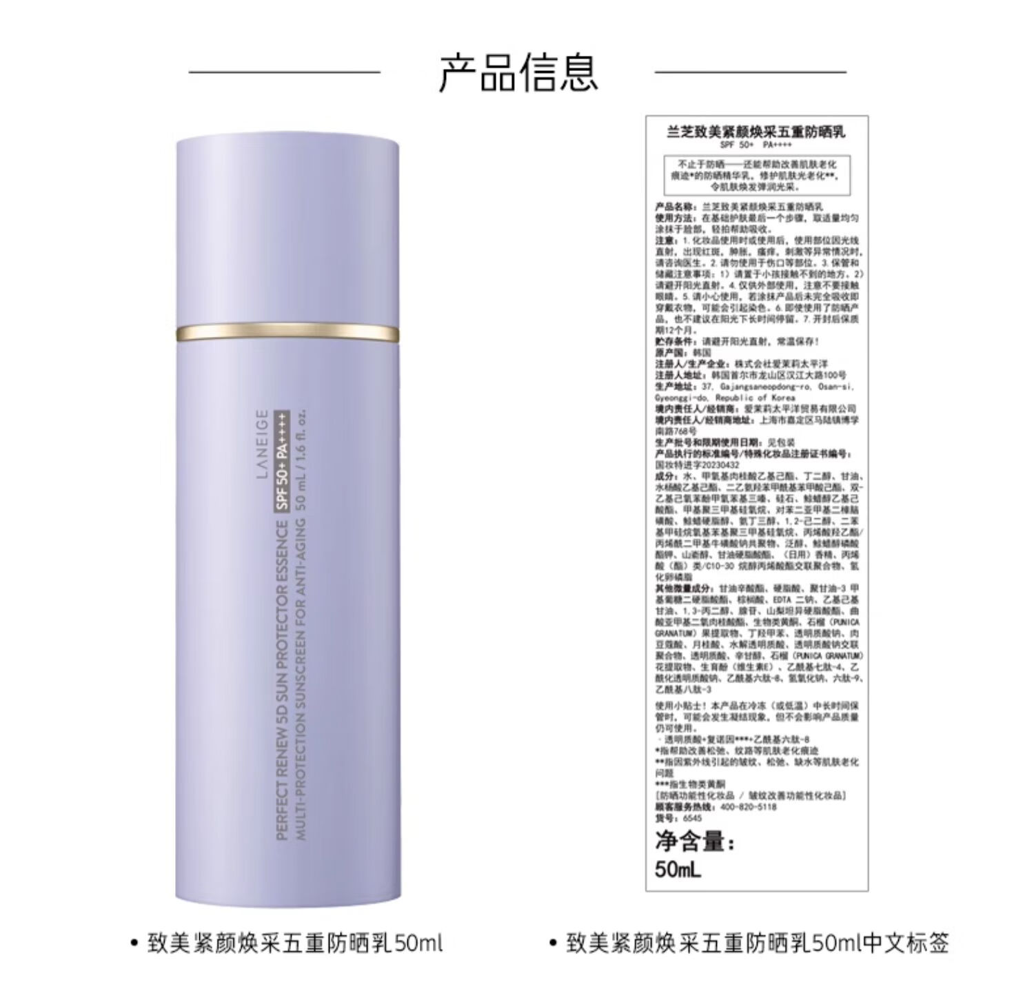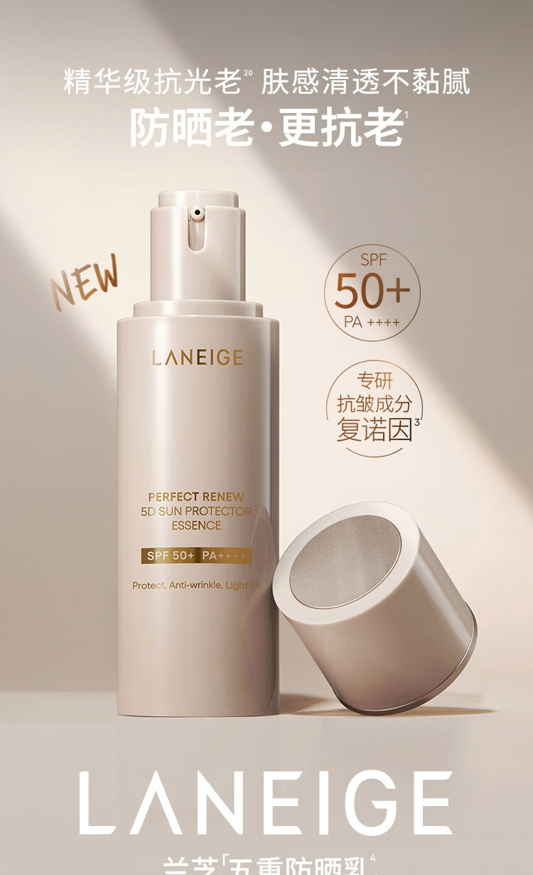 兰芝防晒乳致美紧颜焕采五重防晒精华乳50mlSPF50+圣诞节礼物送女友