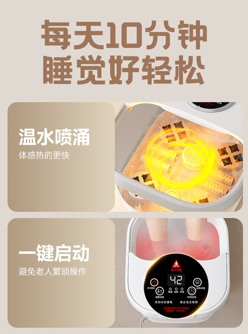 足力健泡脚桶2025款智能足浴盆自动加热恒温按摩桶养生桶家用洗脚桶