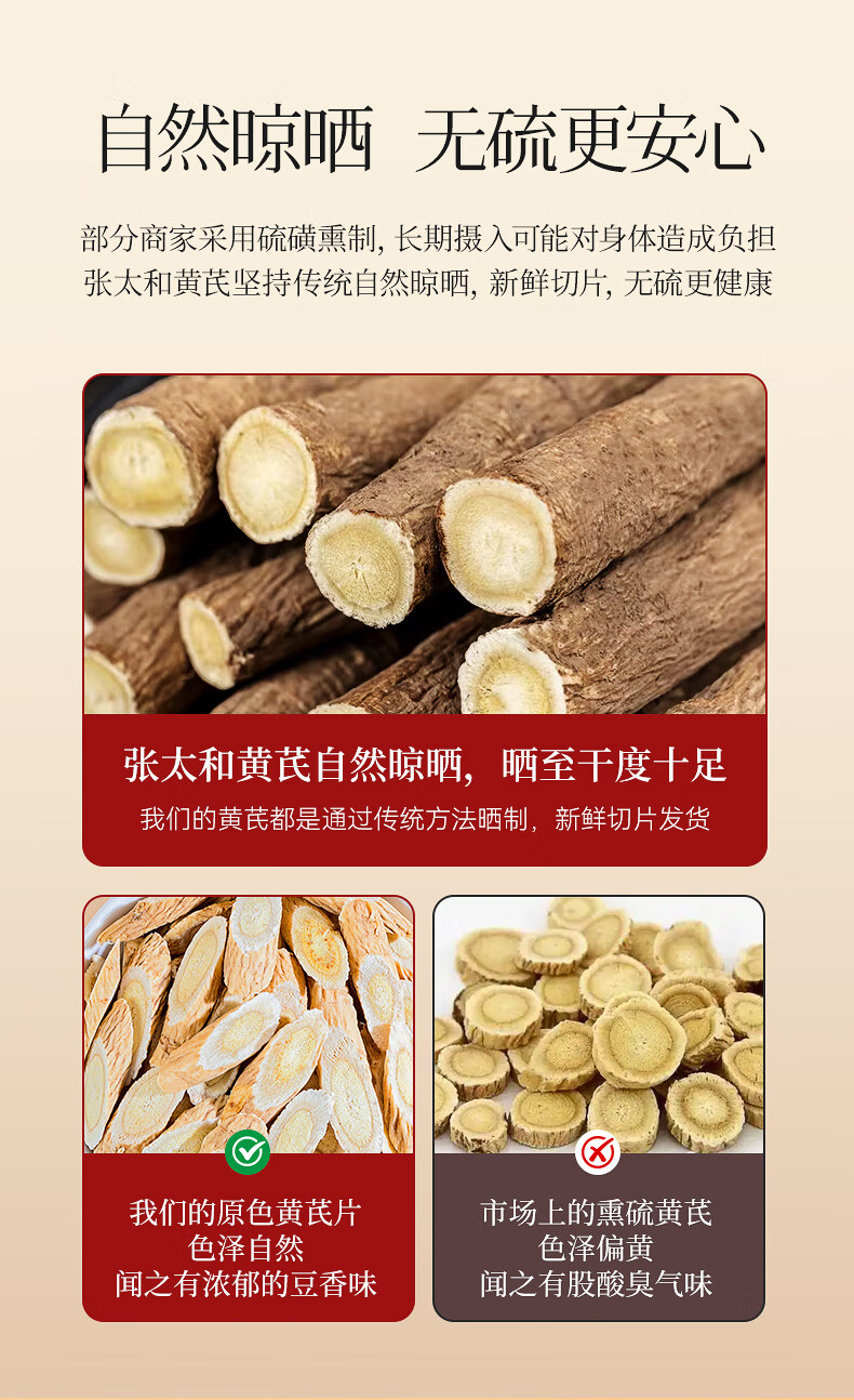 张太和始创于1915 黄芪片 黄芪破壁粉 甘肃黄芪 黄芪茶 可搭配党参枸杞 黄芪50g*2袋