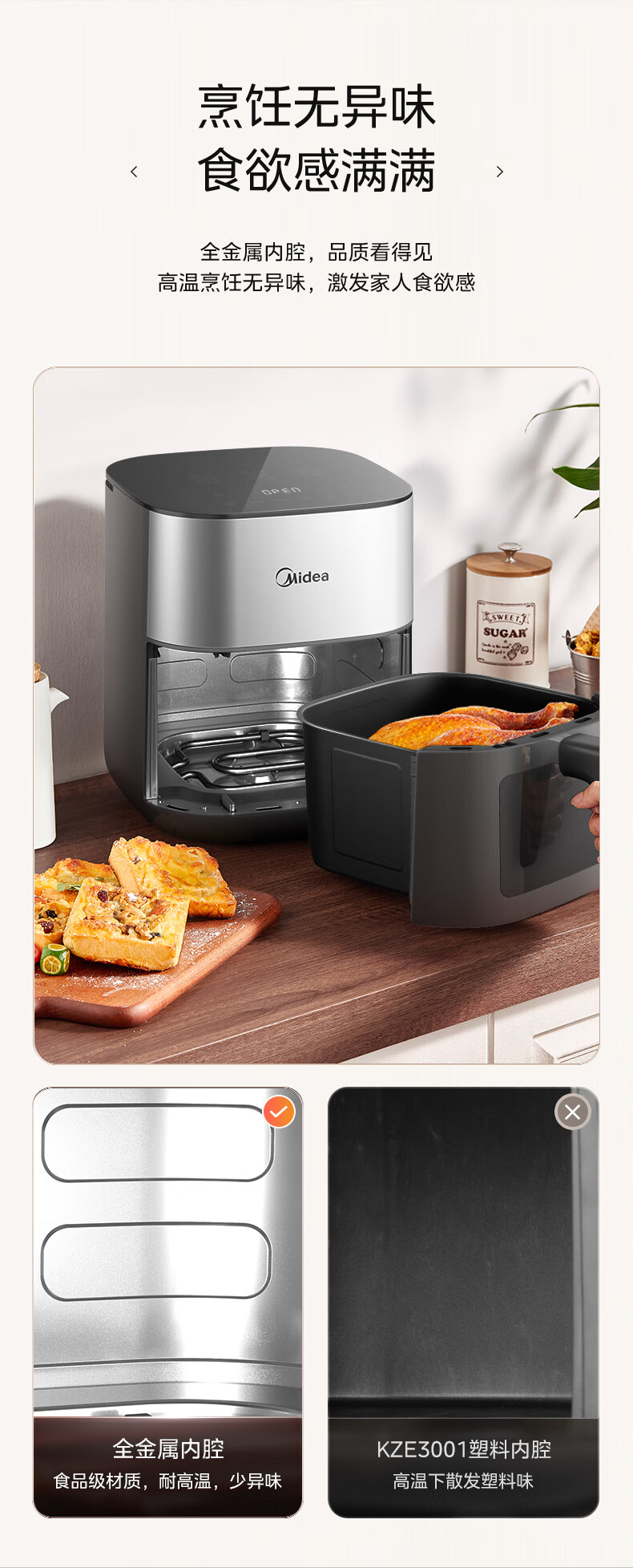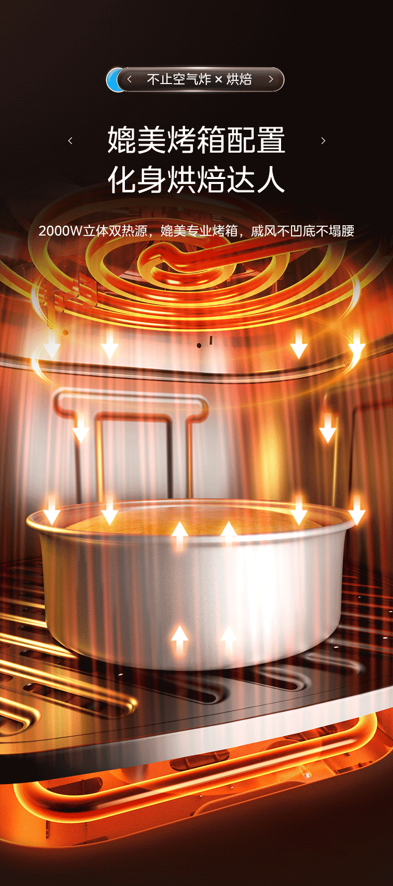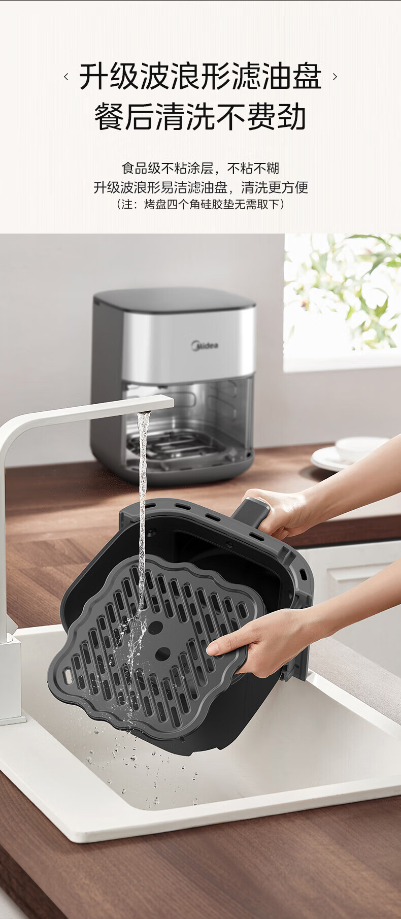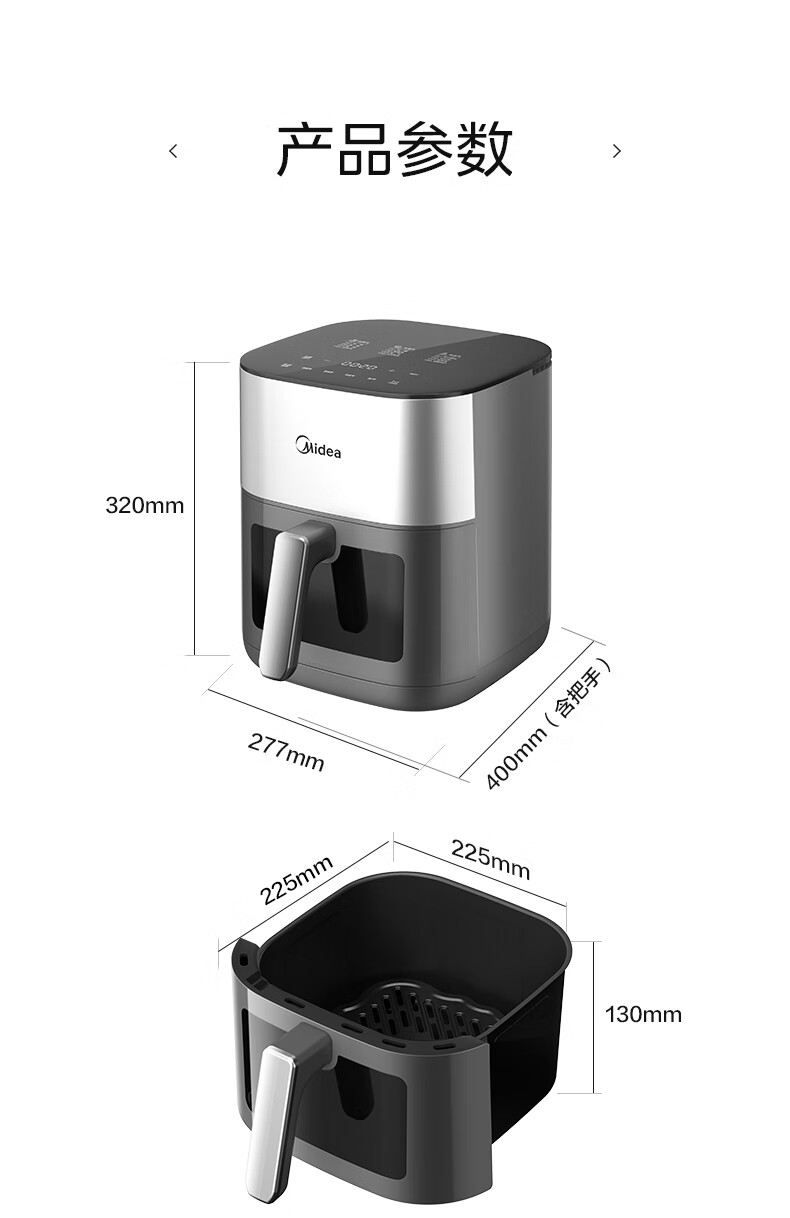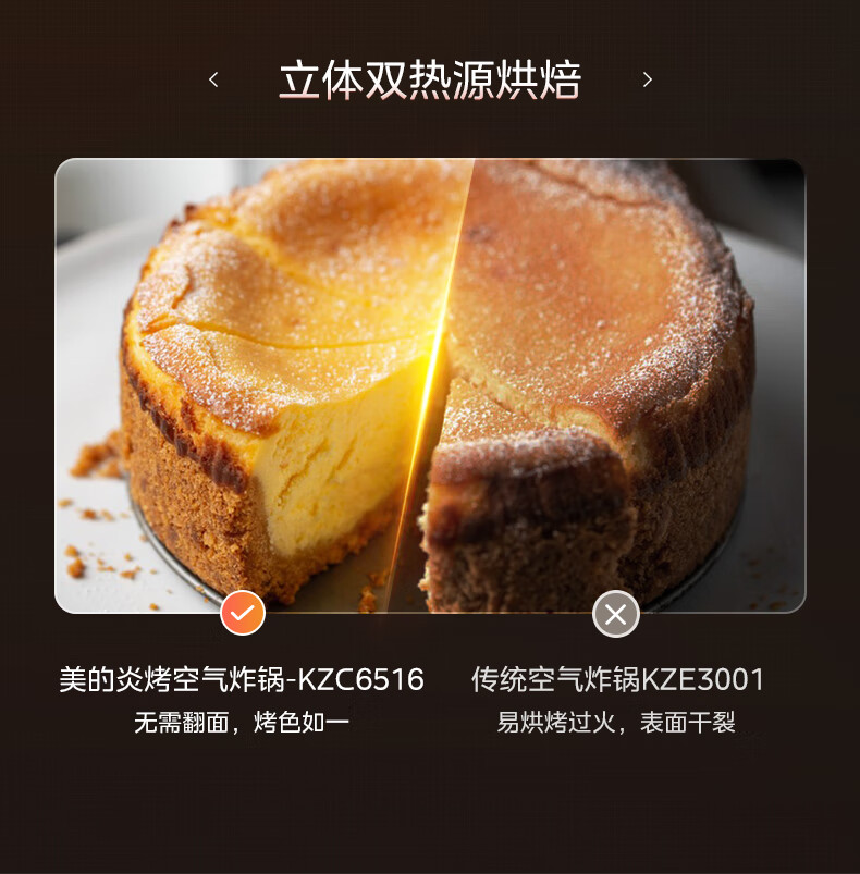 美的(Midea)炎烤免翻面家用空气炸锅蒸烤一体可视窗口上下双热源6.5L大容量金属内腔微蒸汽嫩烤 MF-KZC6516