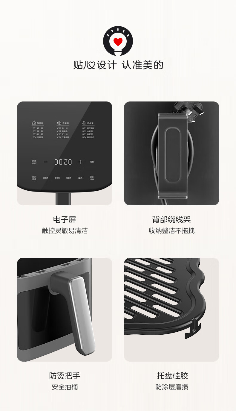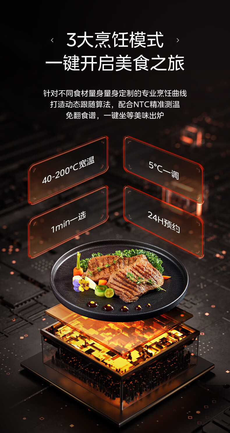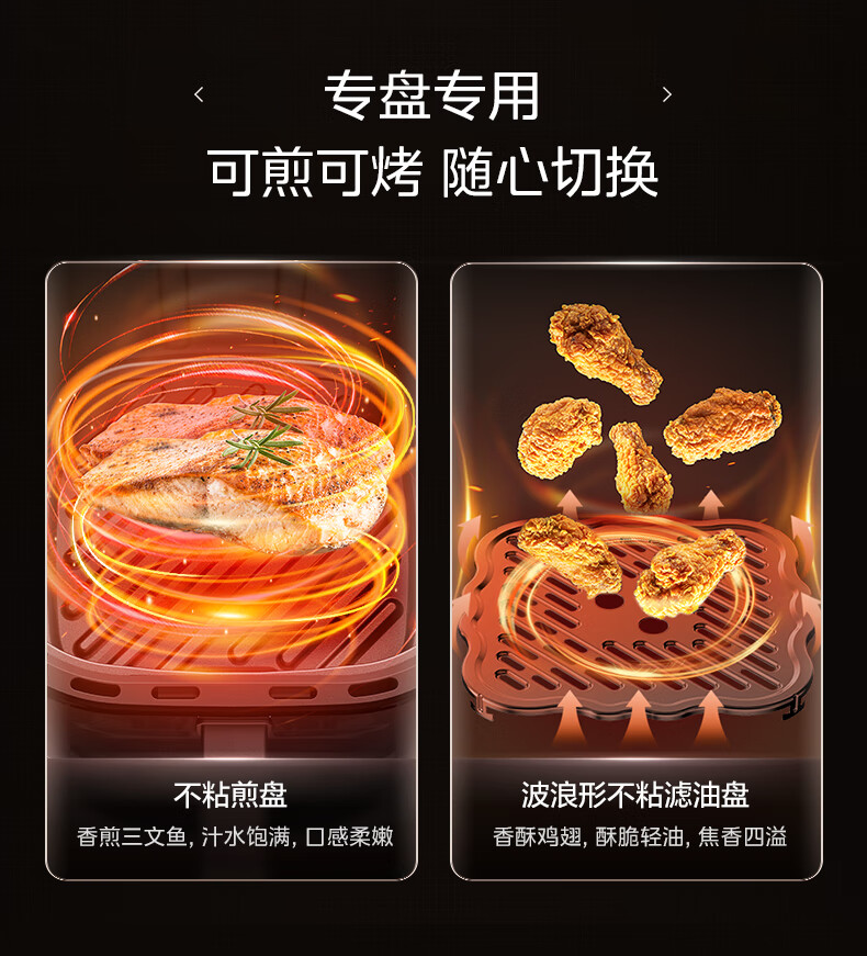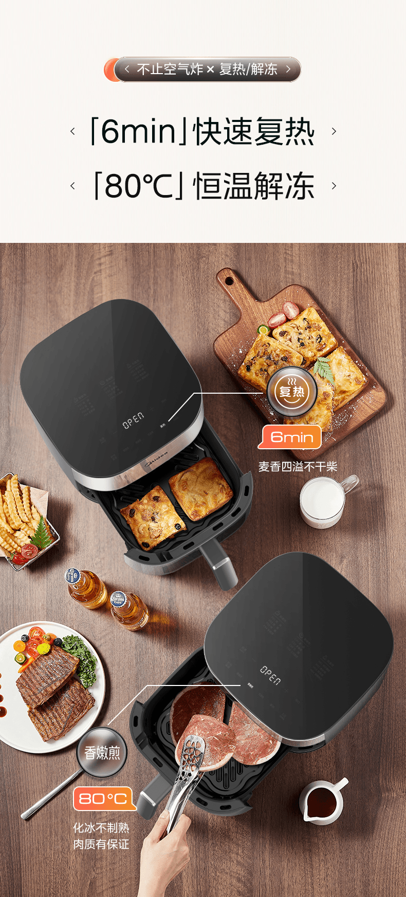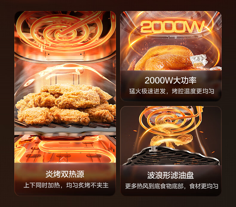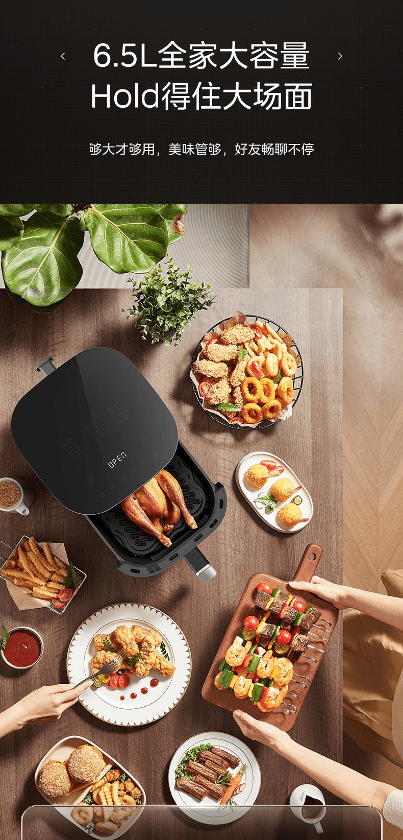 美的(Midea)炎烤免翻面家用空气炸锅蒸烤一体可视窗口上下双热源6.5L大容量金属内腔微蒸汽嫩烤 MF-KZC6516