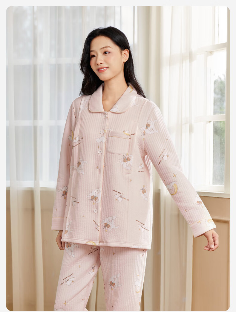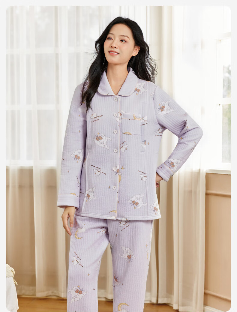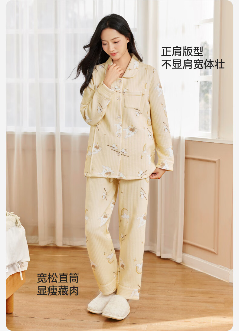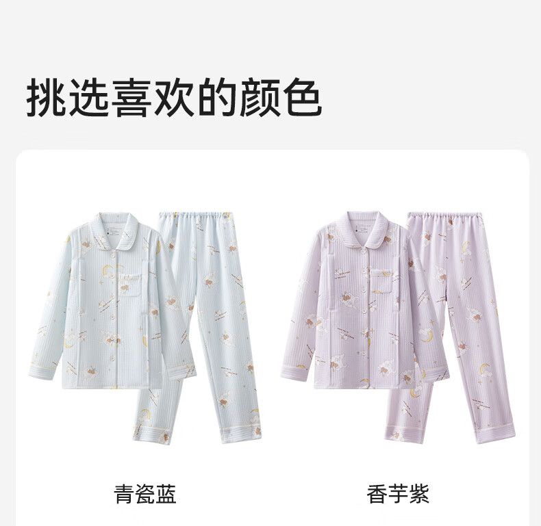 十月结晶月子服孕产妇冬季加厚产后哺乳装睡衣家居服套装 青瓷蓝XL码