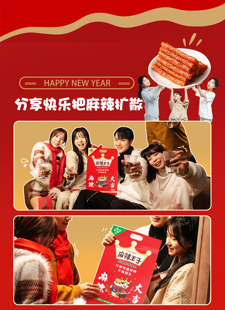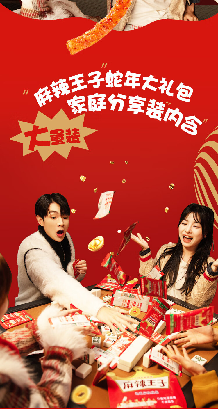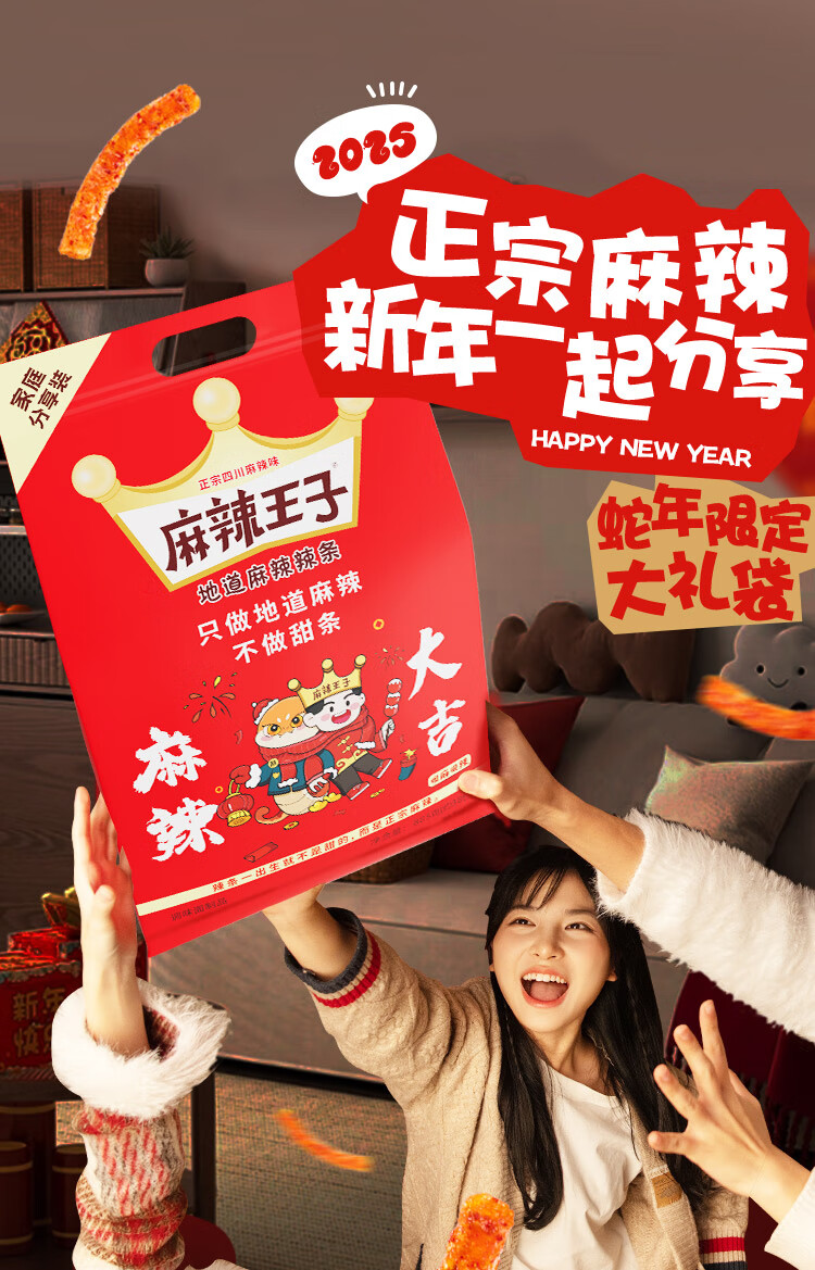 麻辣王子蛇年定制辣条大礼包 885g 微麻微辣 过节送礼休闲分享 零食礼袋