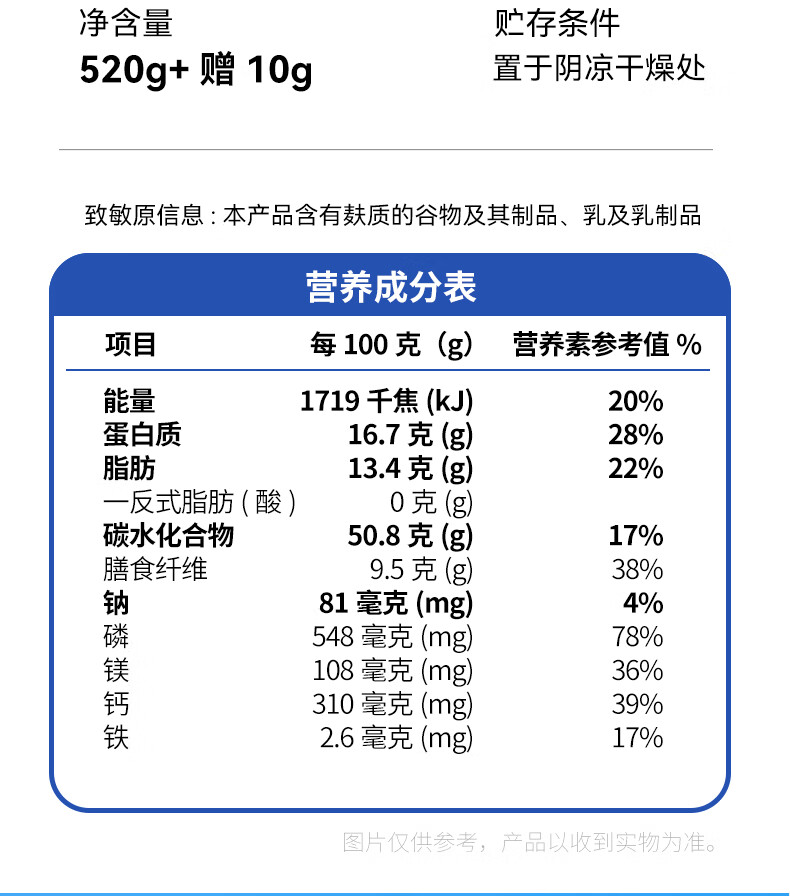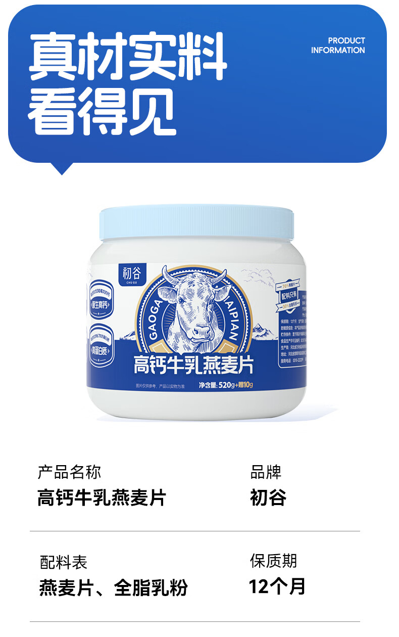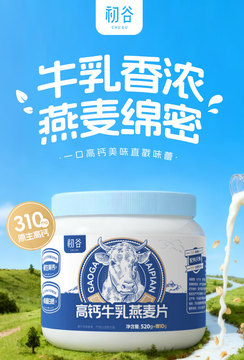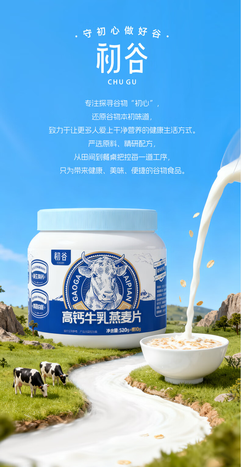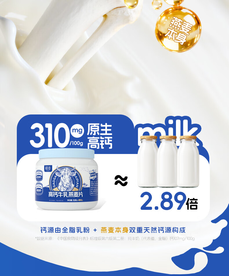 初谷高钙牛乳燕麦片530g速食冲饮谷物高纤高蛋白即食冲泡营养早餐代餐