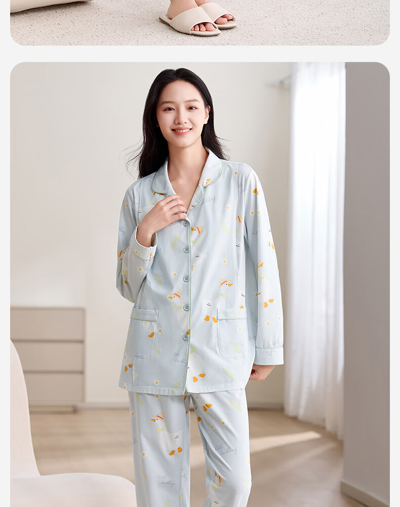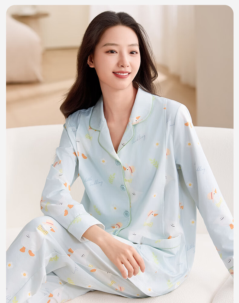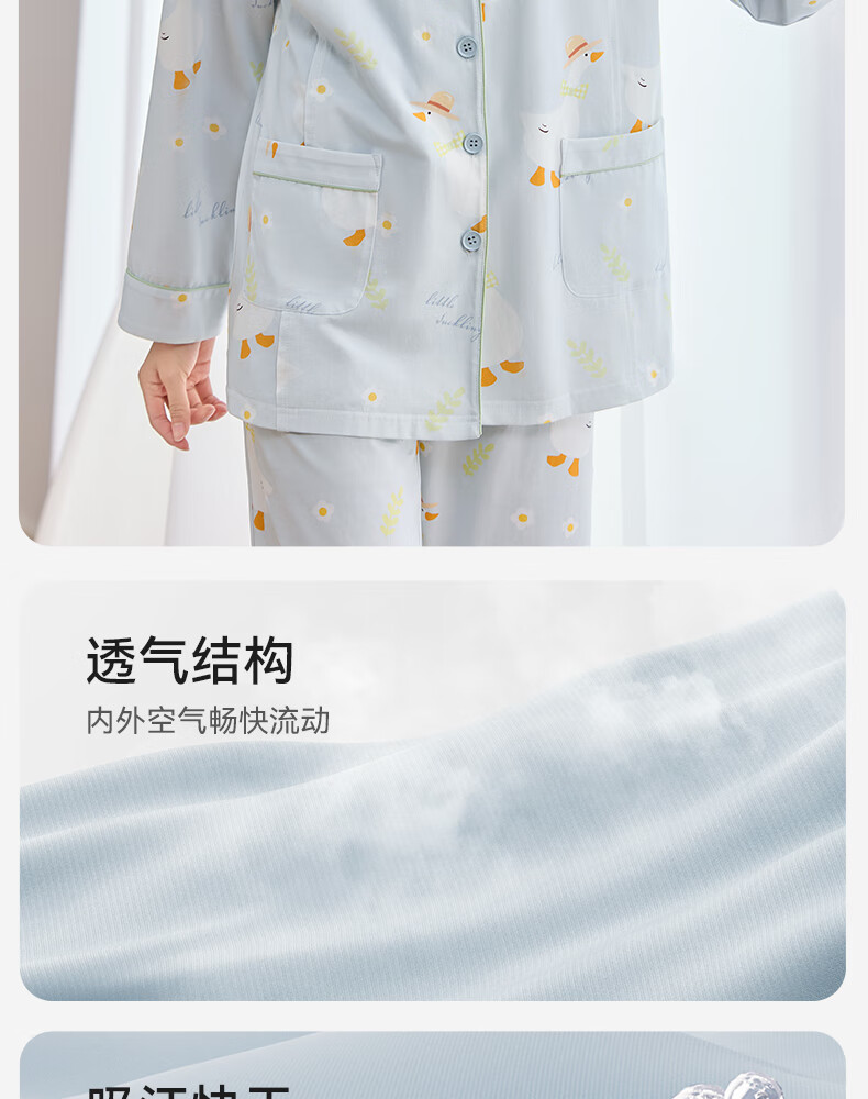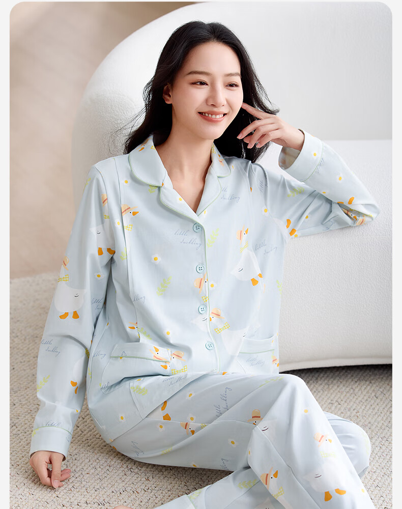 十月结晶纯棉卡通月子服透气秋冬产后喂奶哺乳家居服孕妇舒适吸汗 【7A抗菌】秋款165g丨雪梨鹅 推荐温度20-32℃ XL码