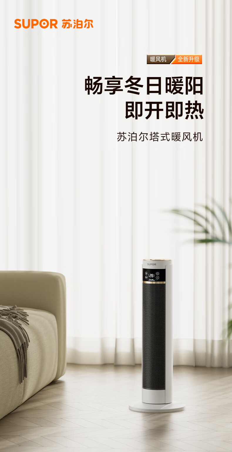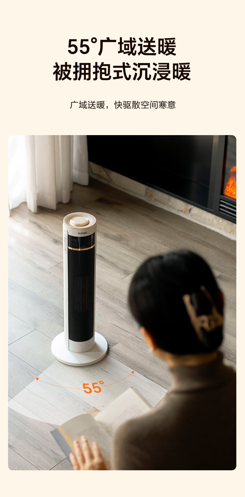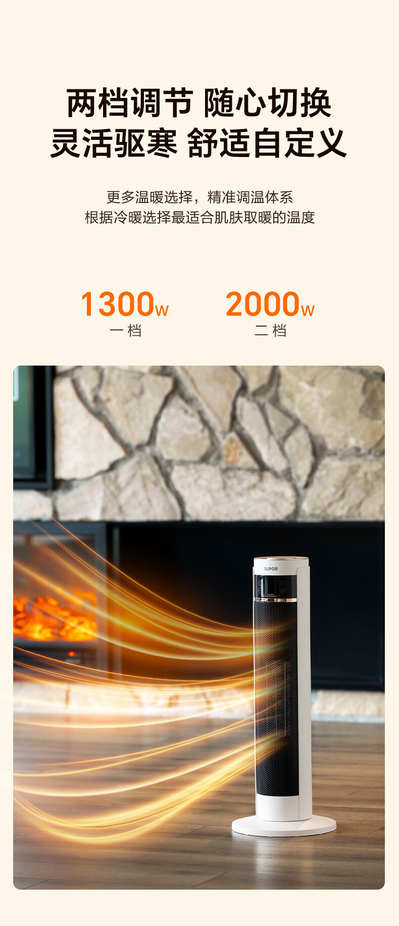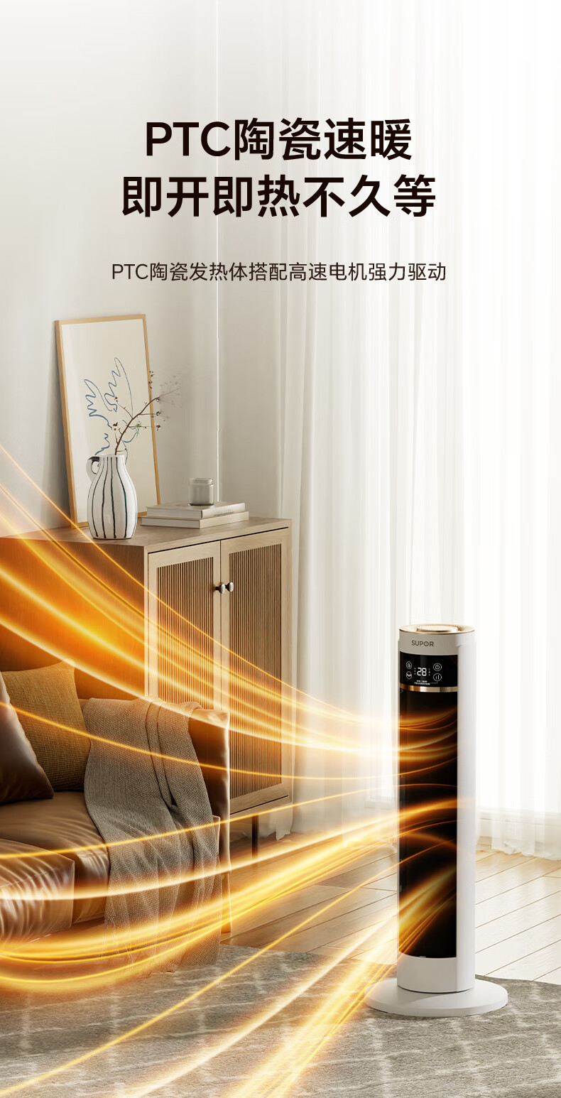 苏泊尔(SUPOR)【直流轻音】家用塔式暖风机浴室电热取暖器加热风机电暖器电暖气电热风扇PC202A-20