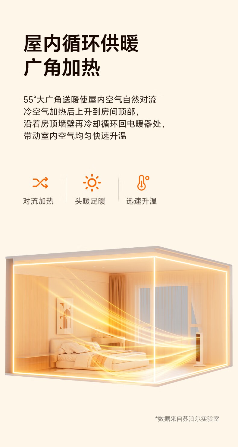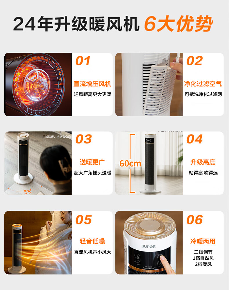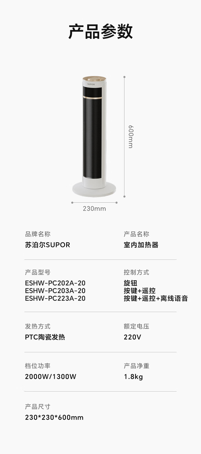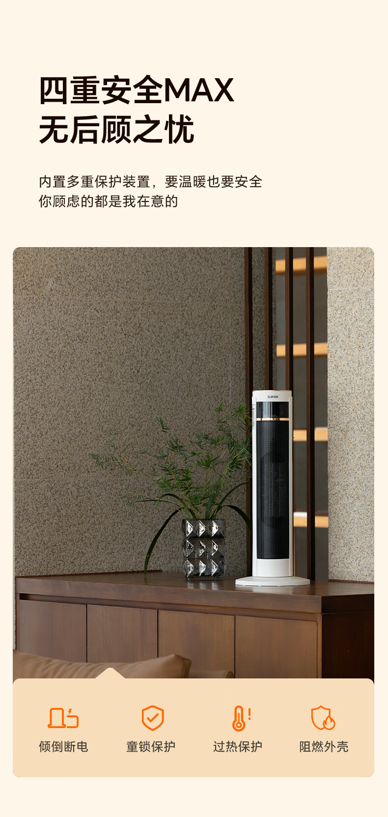 苏泊尔(SUPOR)【直流轻音】家用塔式暖风机浴室电热取暖器加热风机电暖器电暖气电热风扇PC202A-20