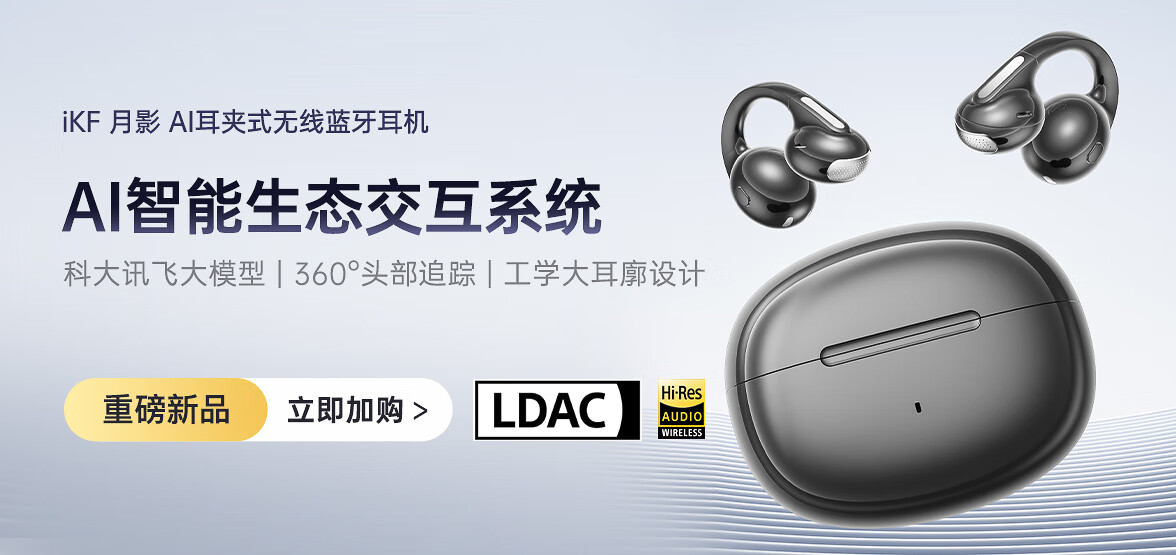iKF AirClip Pro 【Hi-Res金标】蓝牙耳机耳夹式无线开放式骨气传导耳机适用于华为小米苹果 星际黑