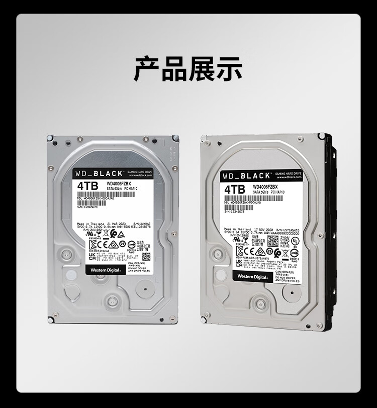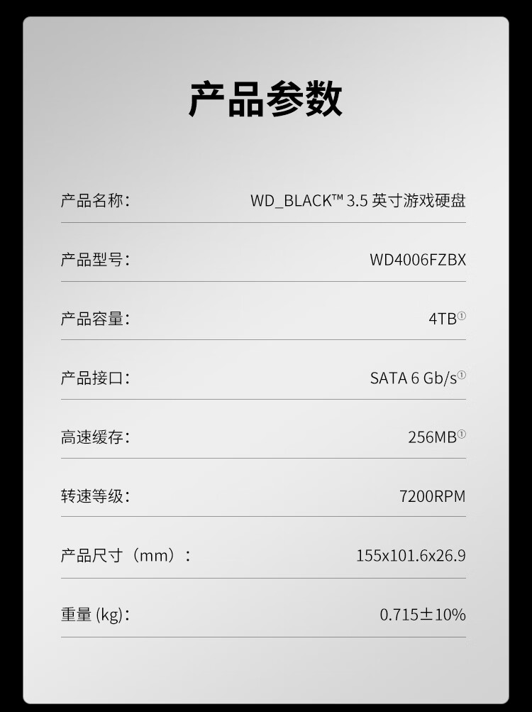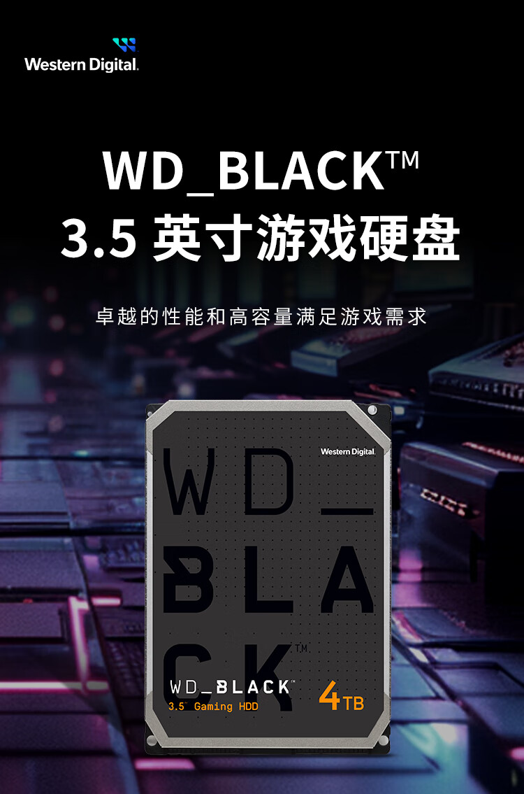 西部数据(WD)4TB 台式游戏机械硬盘 WD_BLACK 西数黑盘 SATA 7200转256MB CMR垂直 3.5英寸WD4006FZBX