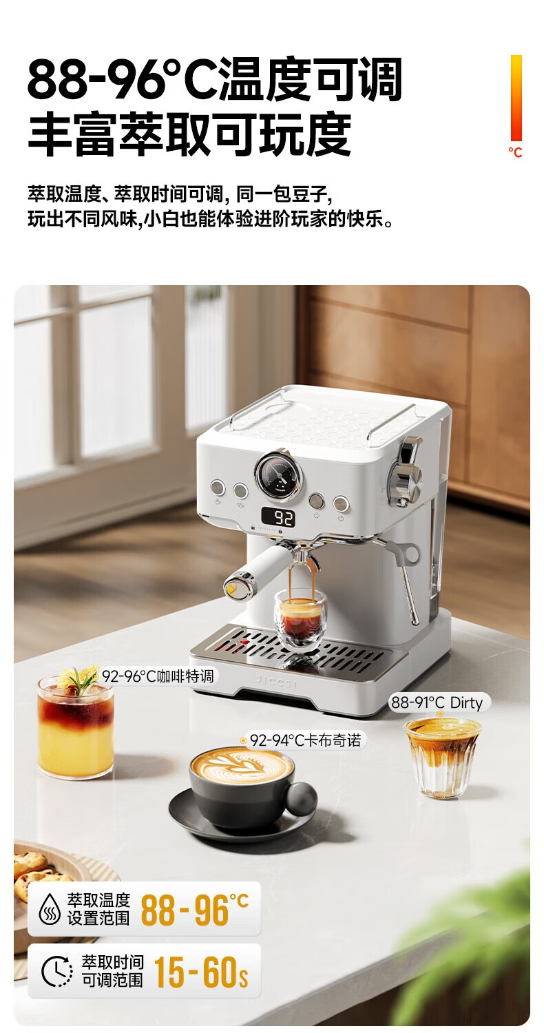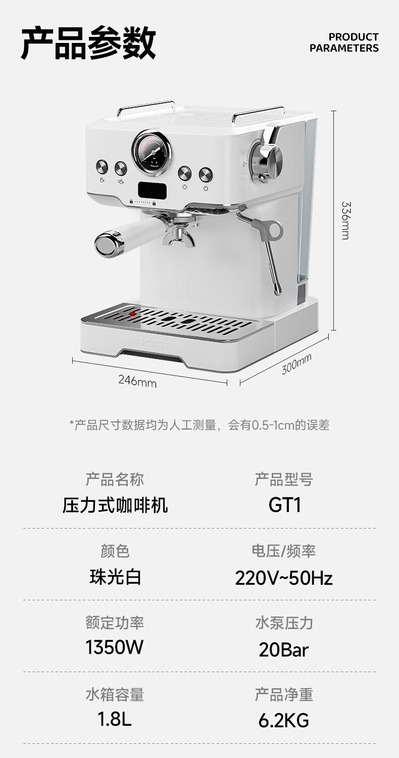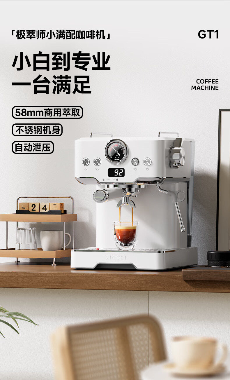 极萃师JICCSI咖啡机半自动家用小型咖啡机意式小满配GT1蒸汽打奶泡【一年质保】 【咨询好礼】GT1意式咖啡机