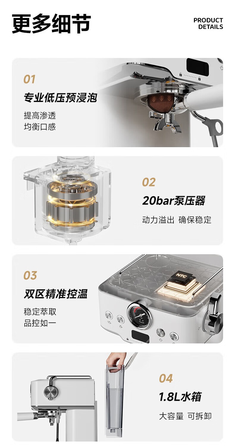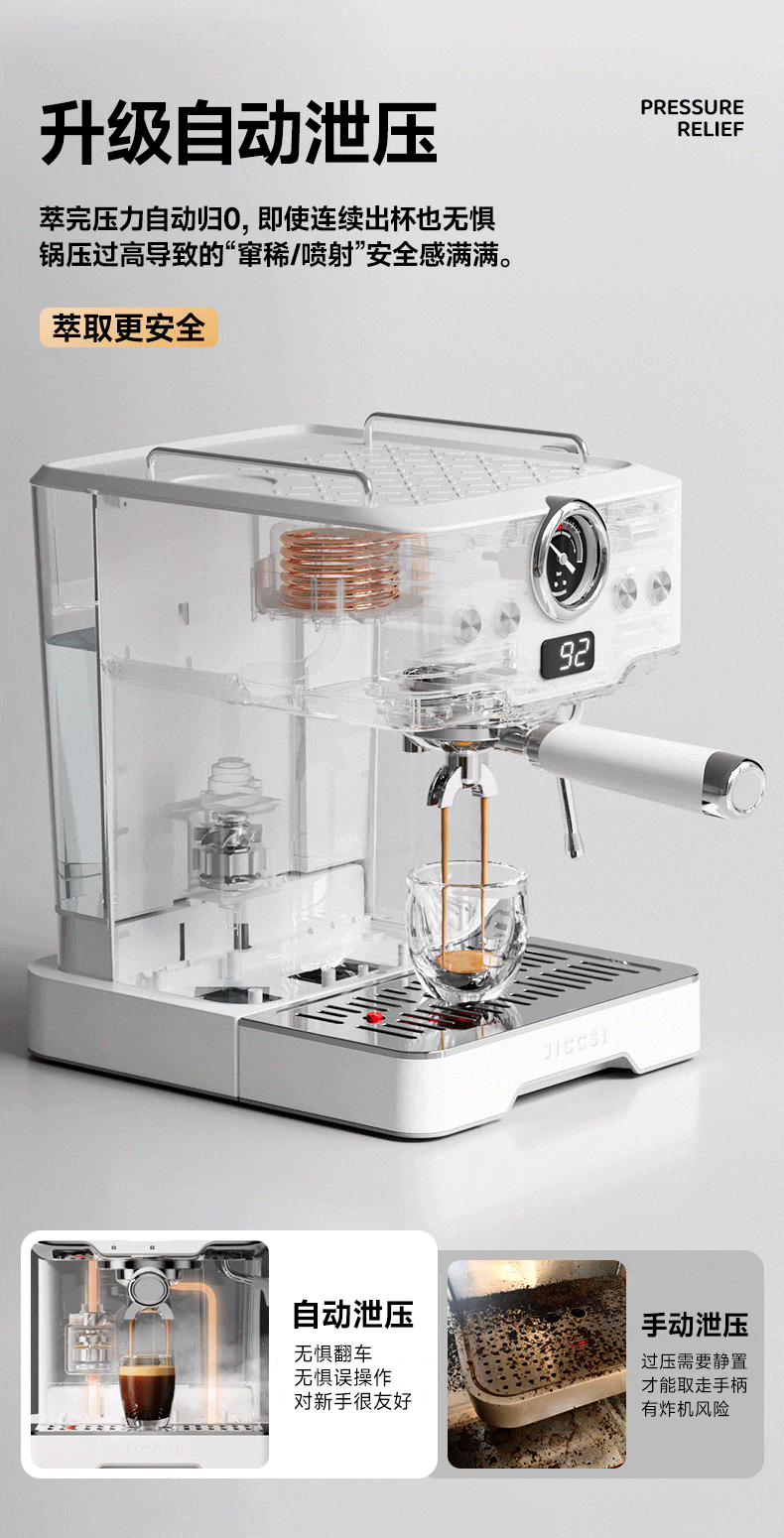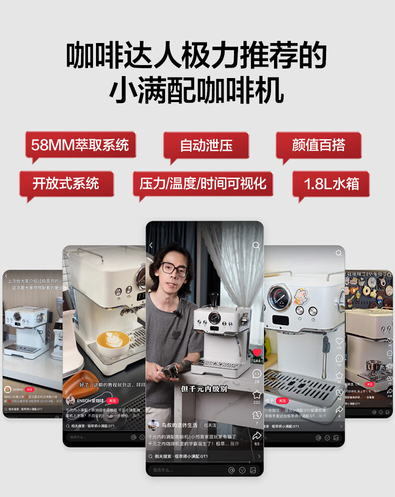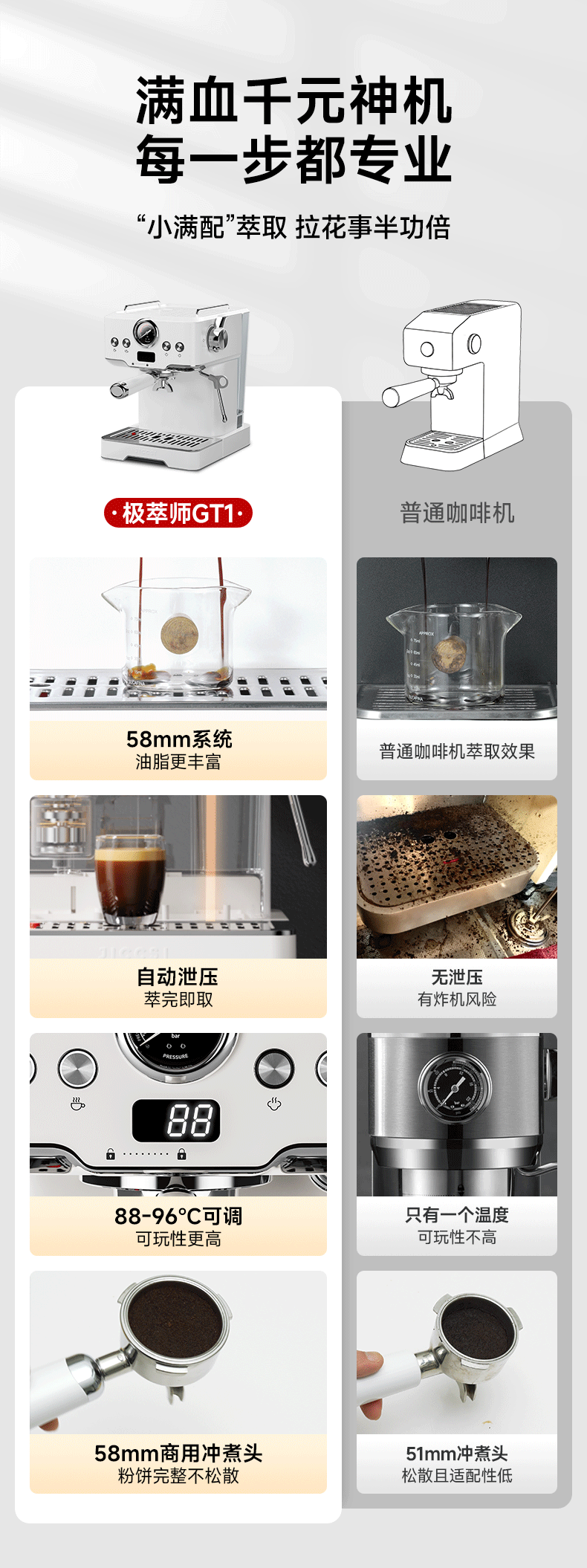 极萃师JICCSI咖啡机半自动家用小型咖啡机意式小满配GT1蒸汽打奶泡【一年质保】 【咨询好礼】GT1意式咖啡机