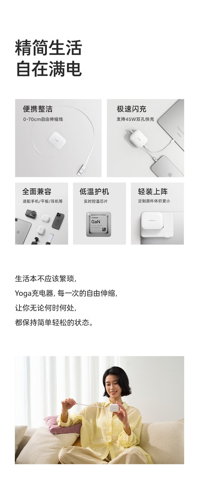 图拉斯yoga充电器【热销100W+丨自带伸缩线】小冰块45W苹果17pro max iPhone16氮化镓快充充电头 【钛金白】45W双口·自带伸缩线 2025至尊顶配款