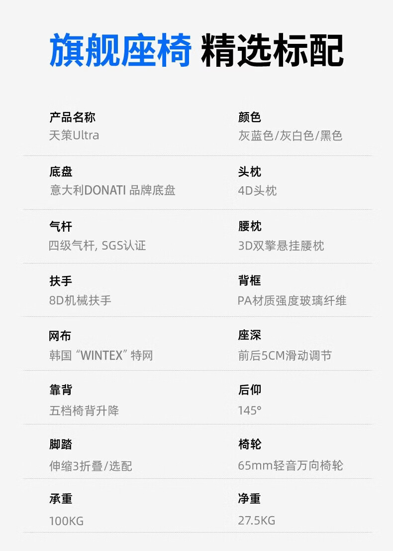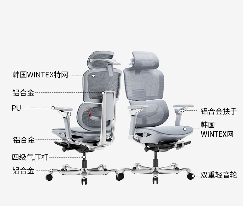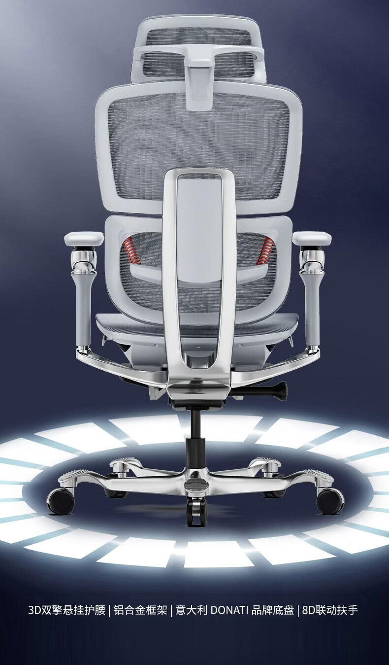 沃时天策Ultra/Max人体工学椅子透气舒适办公座椅久坐护腰书房电脑椅 Ultra灰白色【8D扶手+双擎腰靠+铝合金背+DONATI底盘】