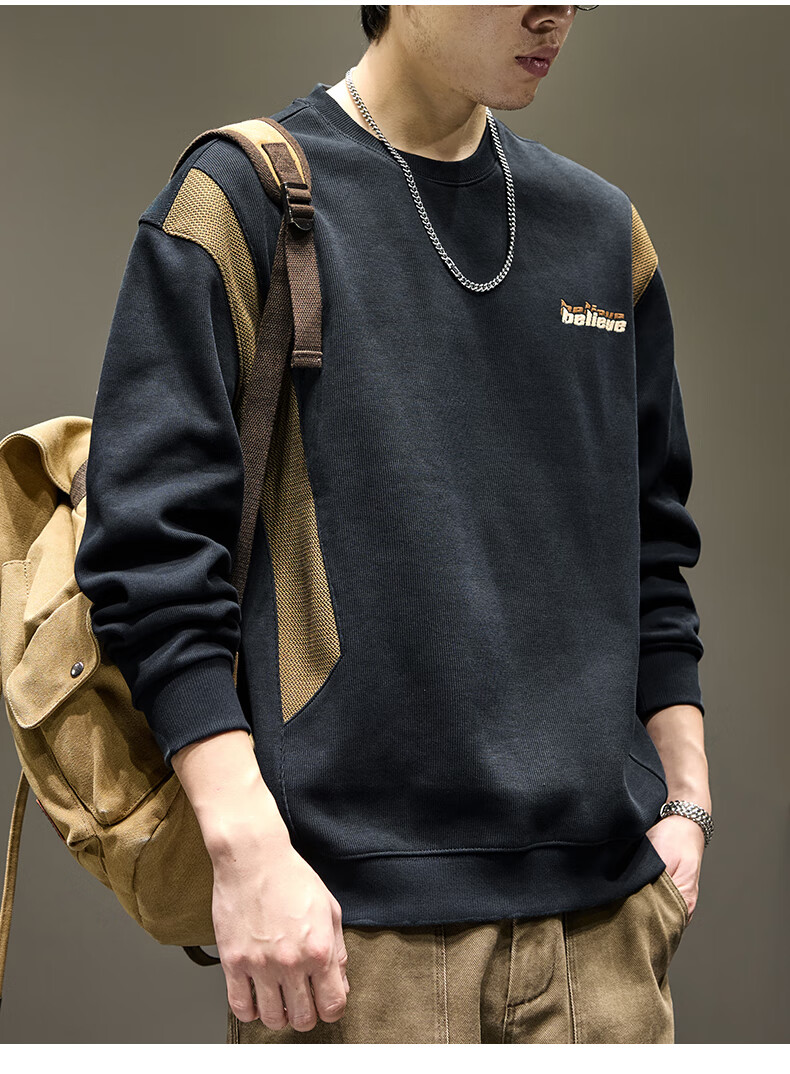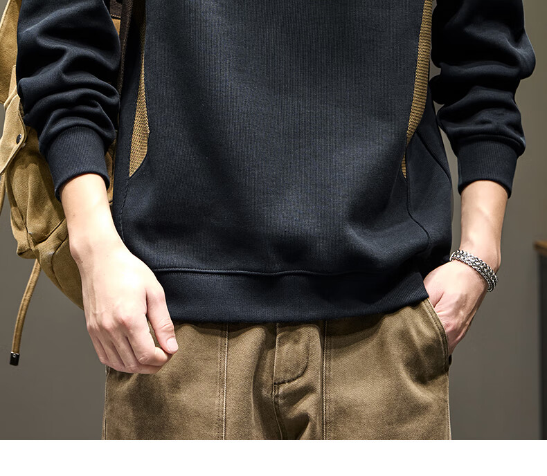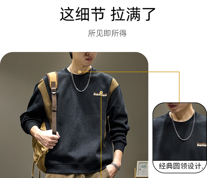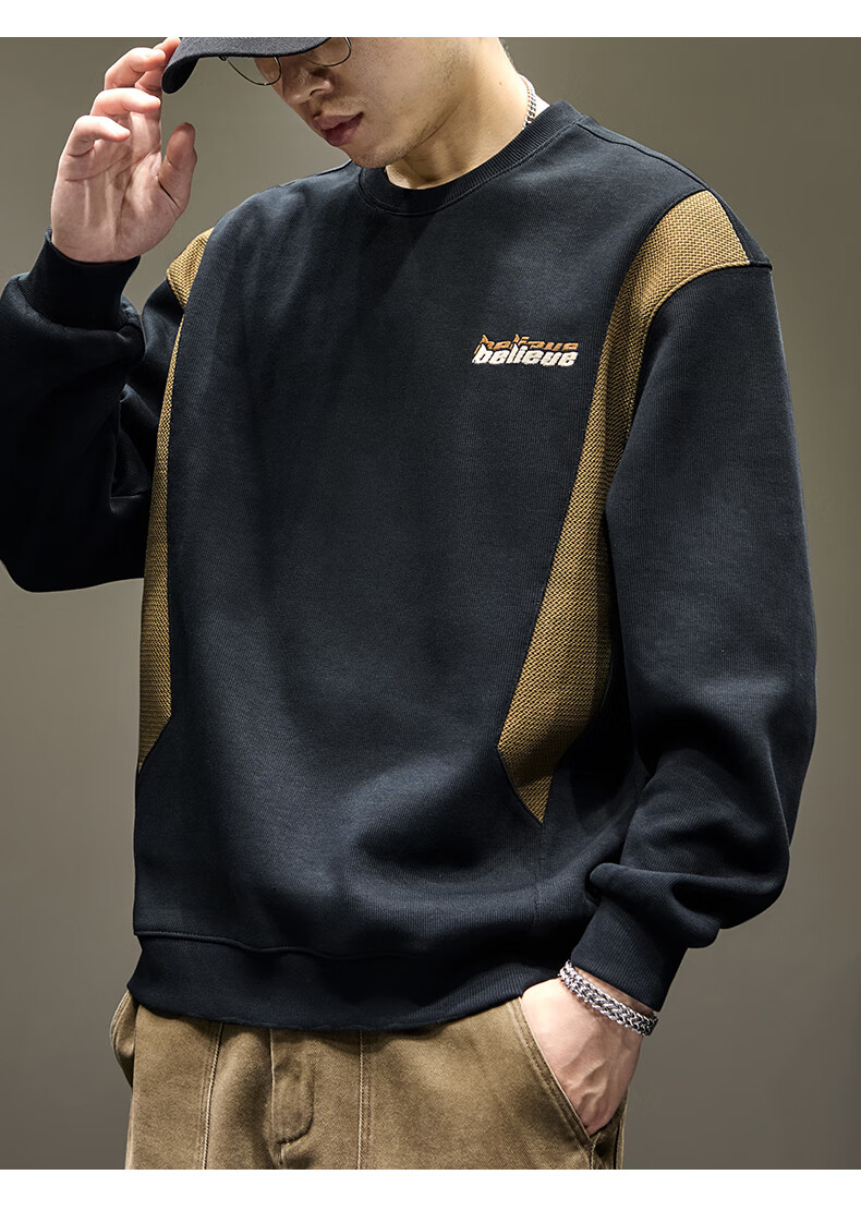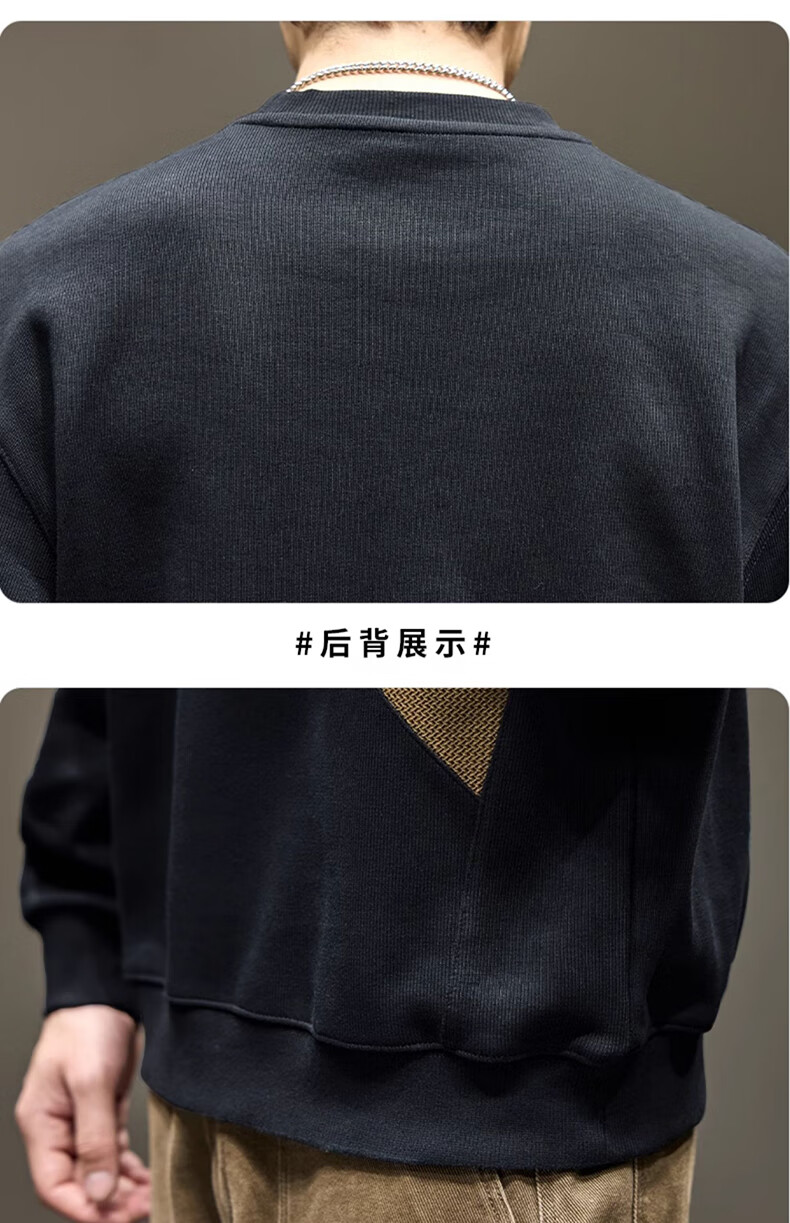 新百伦重磅卫衣男士秋冬款宽松大码长袖t恤高端加绒加厚上衣外套男 黑色 常规 XL 码【建议140-160斤】
