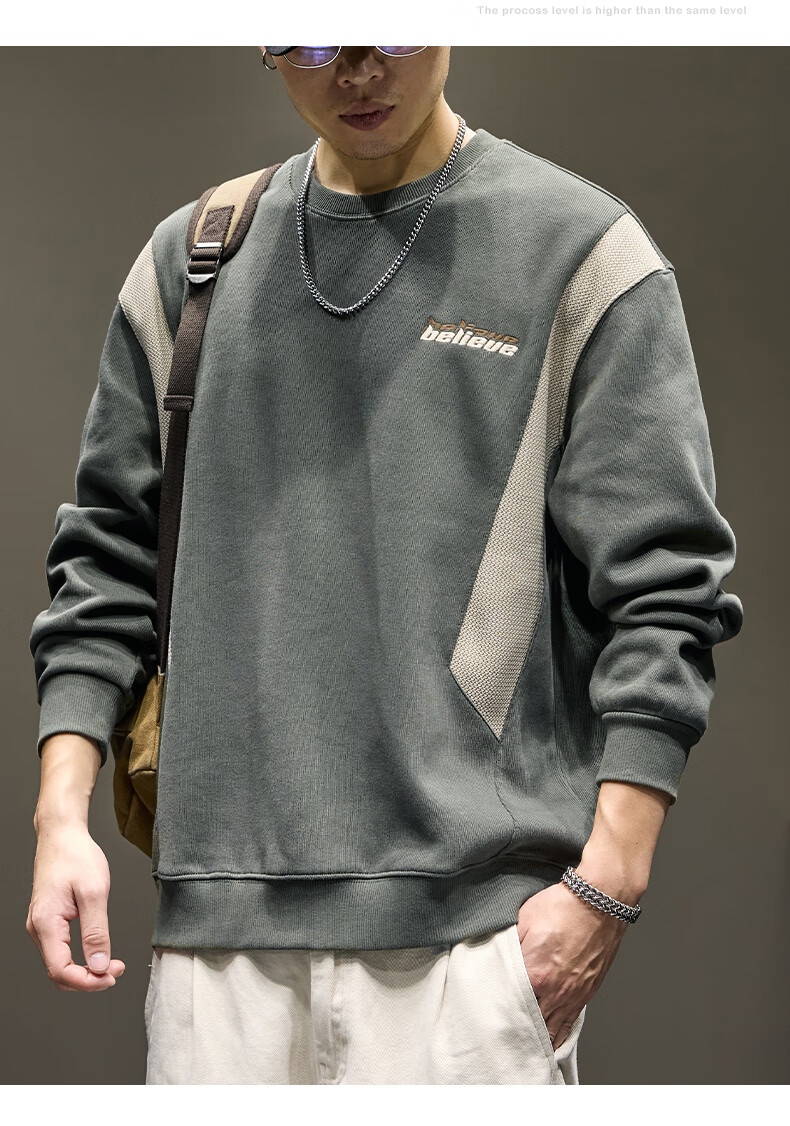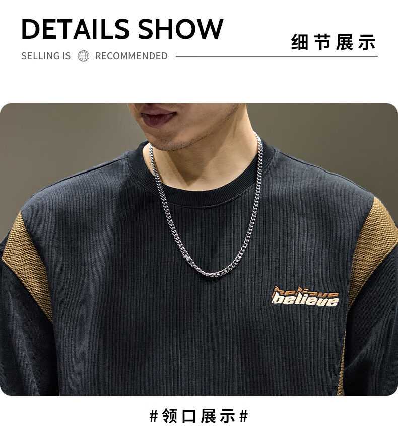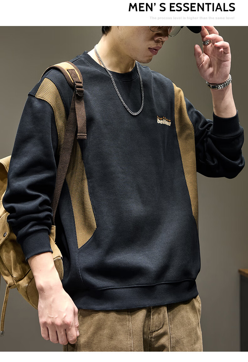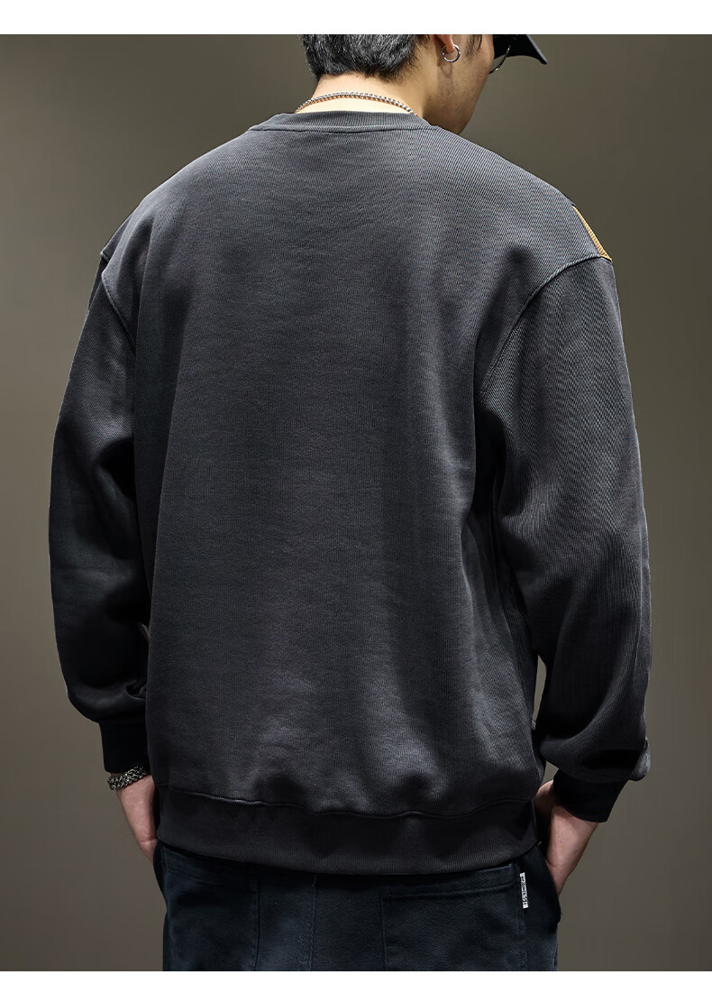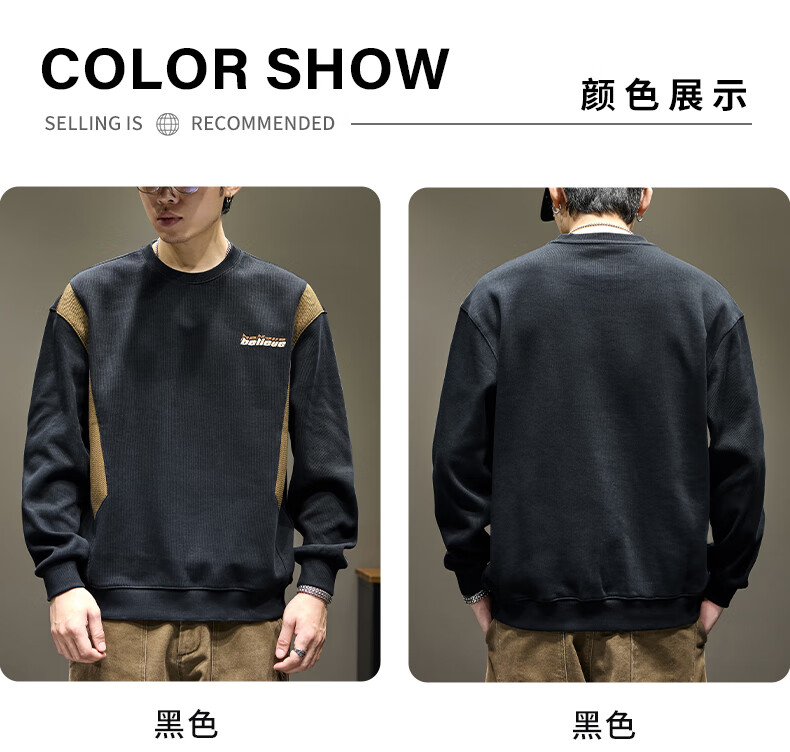 新百伦重磅卫衣男士秋冬款宽松大码长袖t恤高端加绒加厚上衣外套男 黑色 常规 XL 码【建议140-160斤】