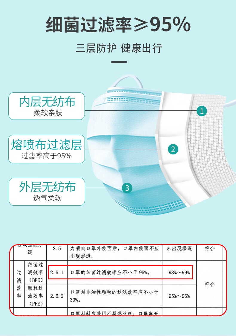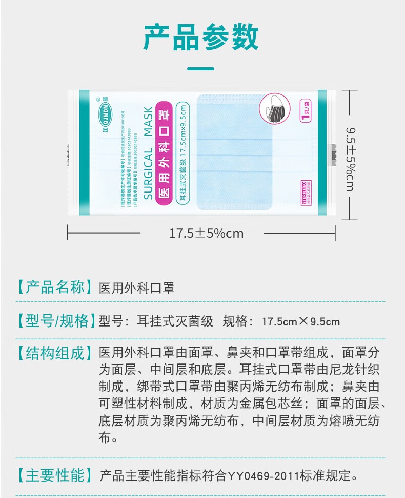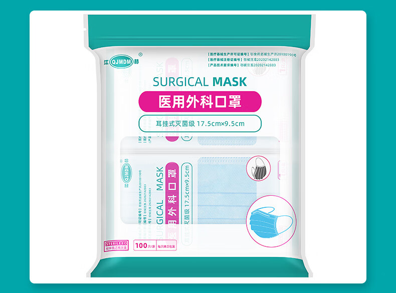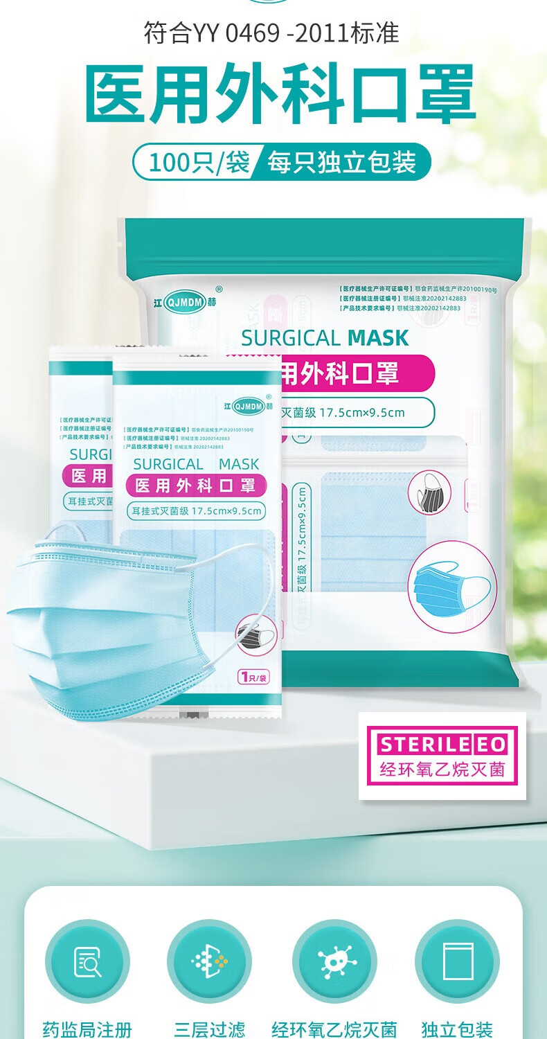 江赫 医用外科口罩挂耳式防细菌防甲流细菌飞沫防支原体隔离病菌防护 【10只/袋 共100只】