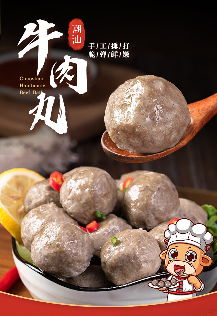 趣十八番正宗潮汕牛肉丸2斤手打牛筋丸生鲜牛丸 火锅丸子烧烤食材肉丸子 1斤牛肉丸+1斤牛筋丸