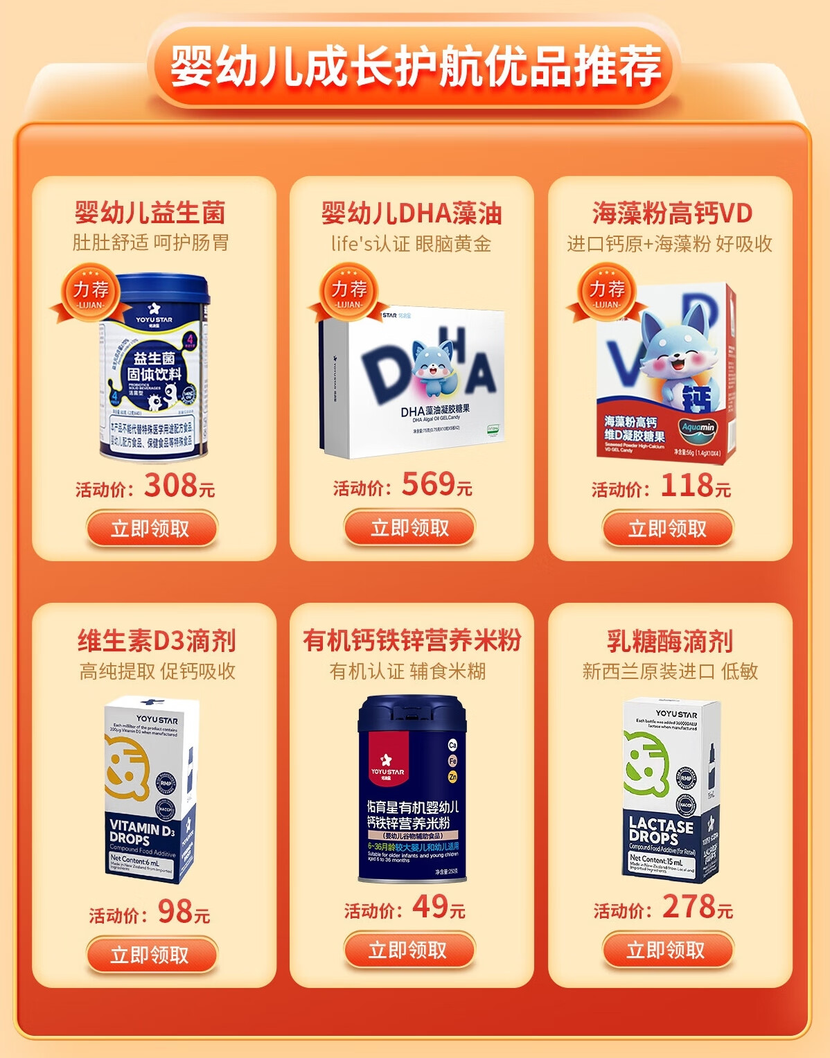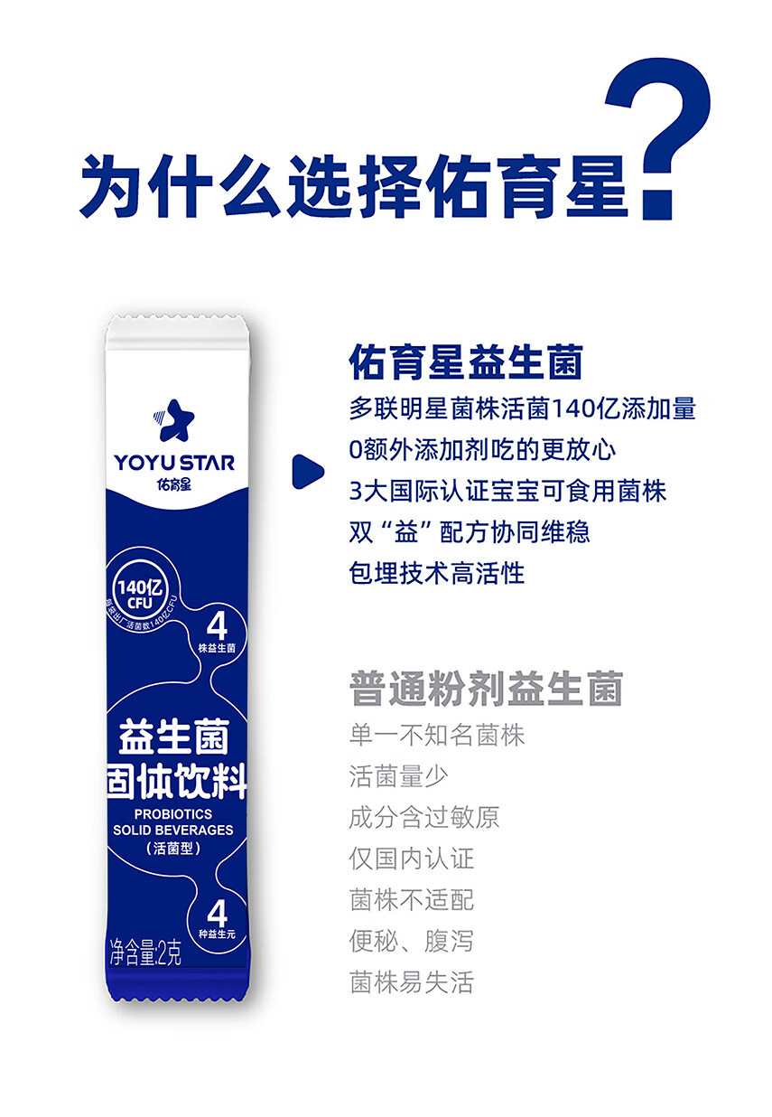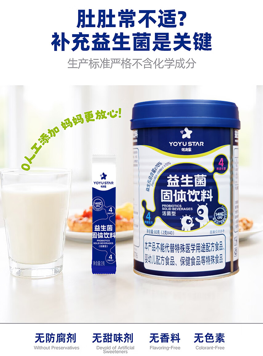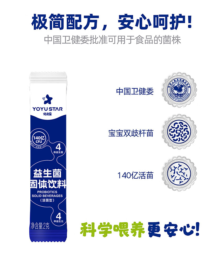 佑育星益生菌婴幼儿童0-12岁调理添加益生元肠胃肠道菌群胀气双歧杆菌 儿童益生菌益生元粉