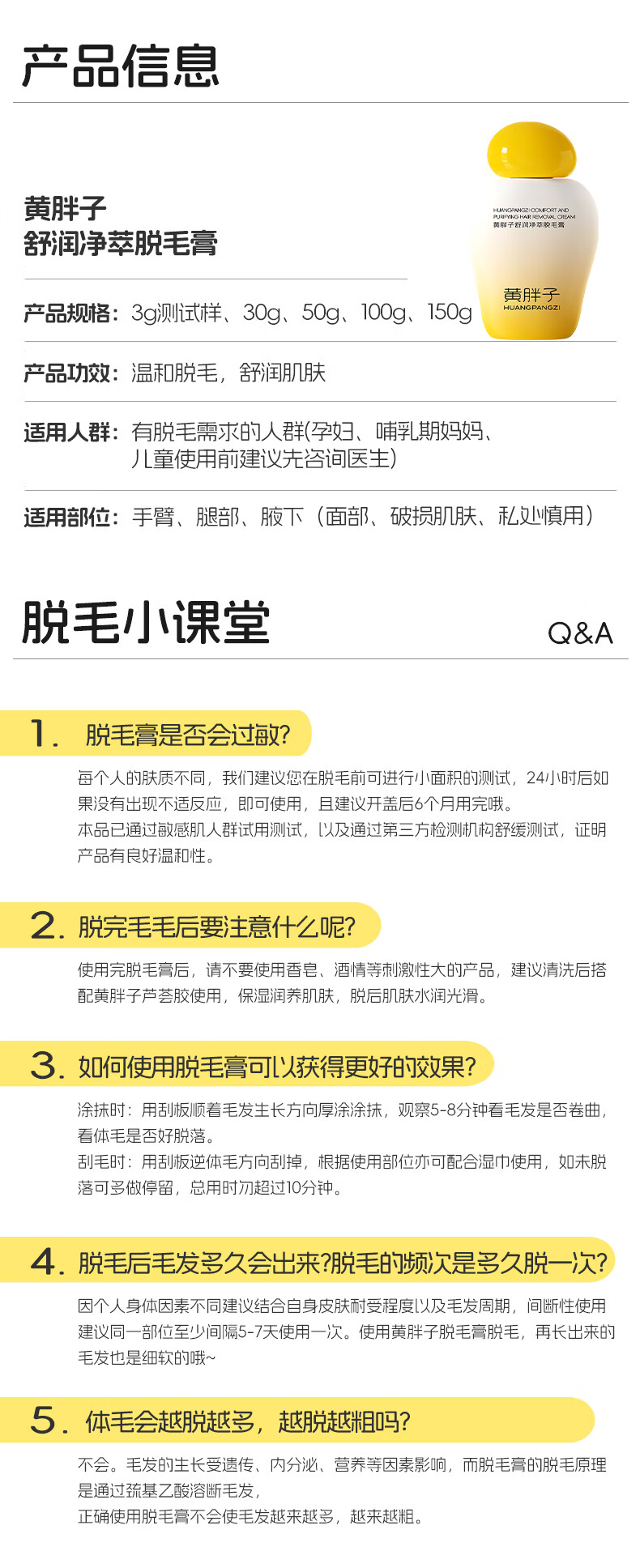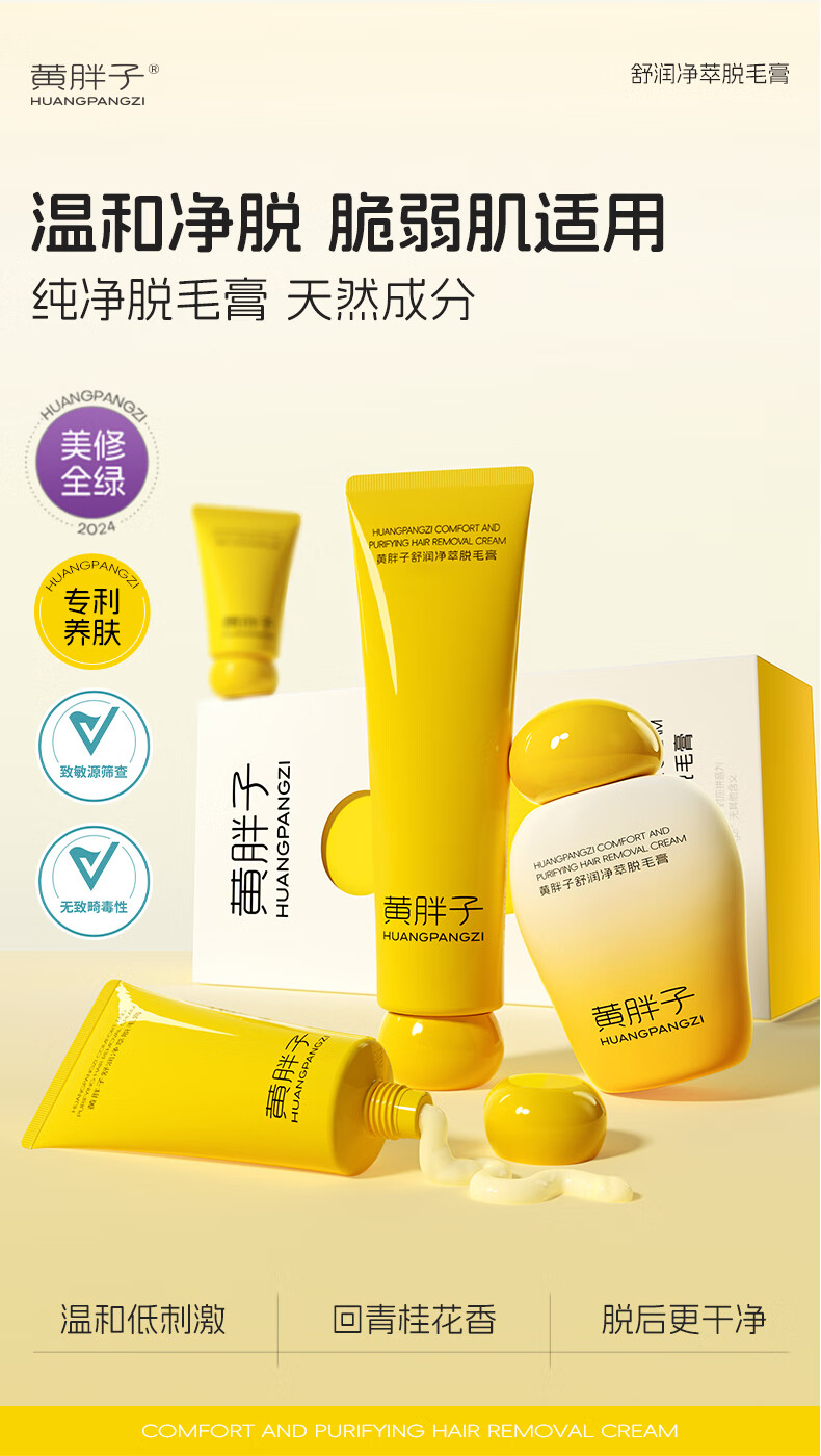黄胖子脱毛膏腋下去腿毛男女士温和舒润护理去毛膏非私密处脱毛礼物 150g