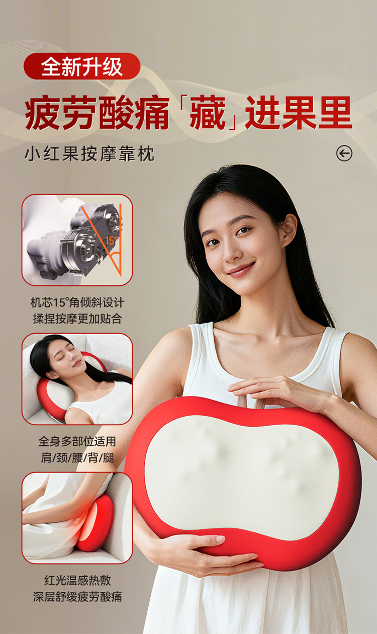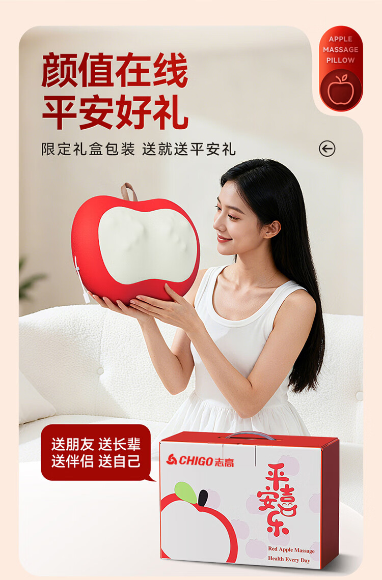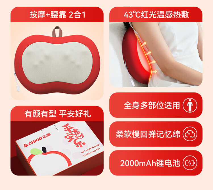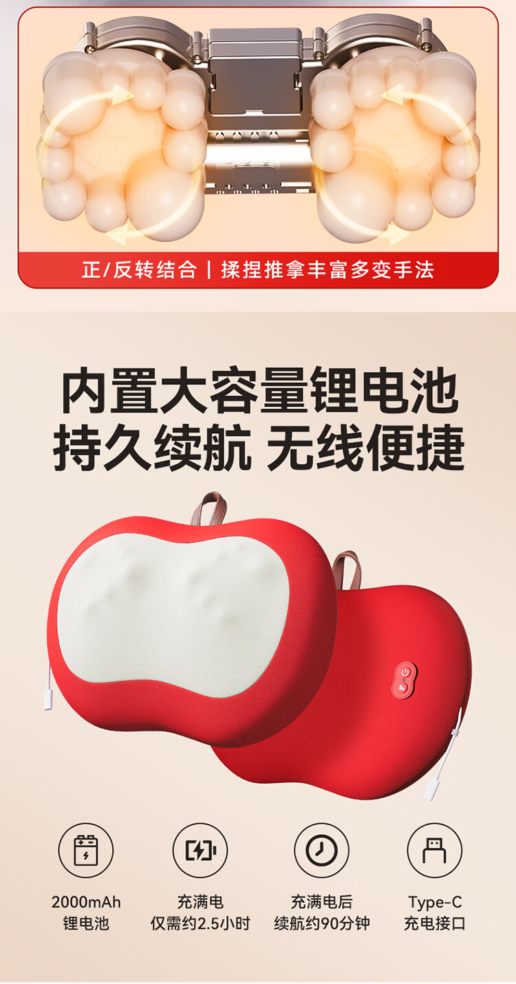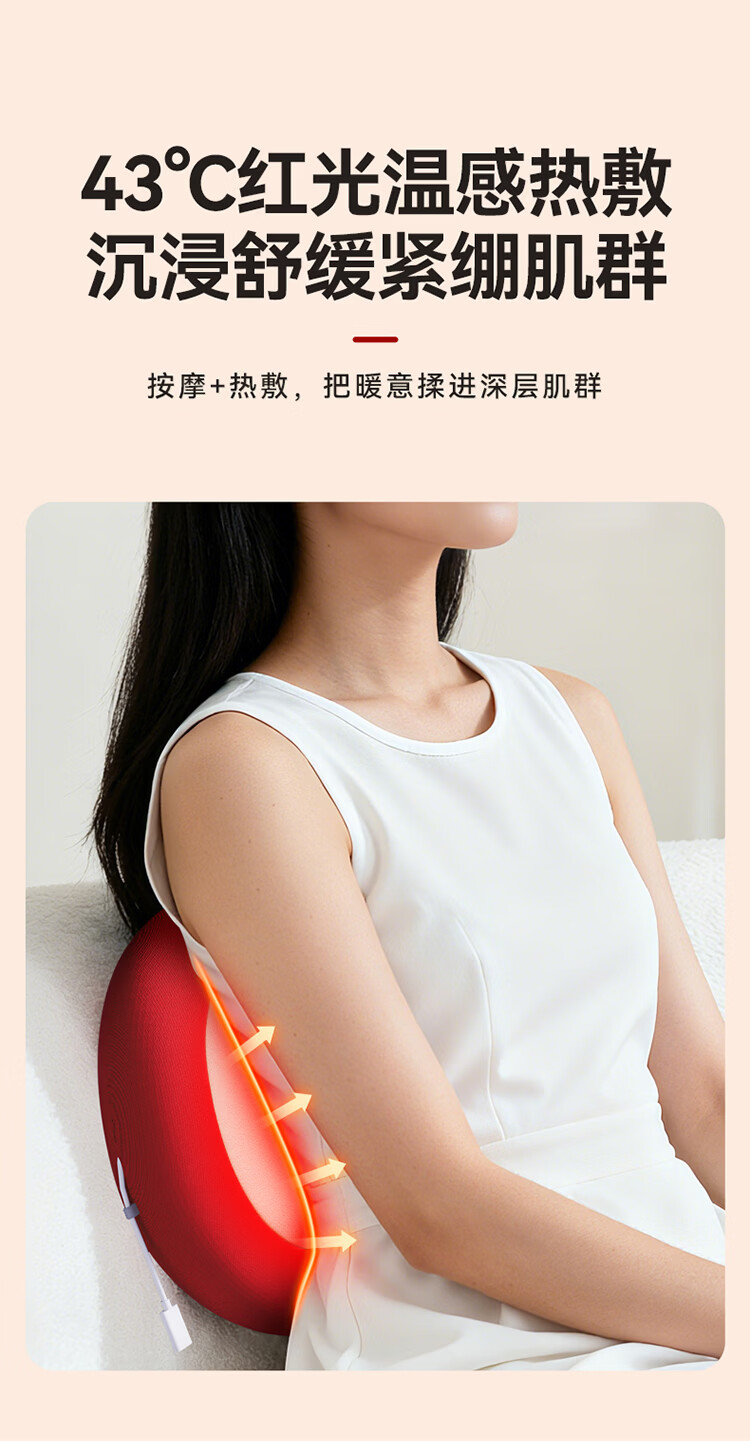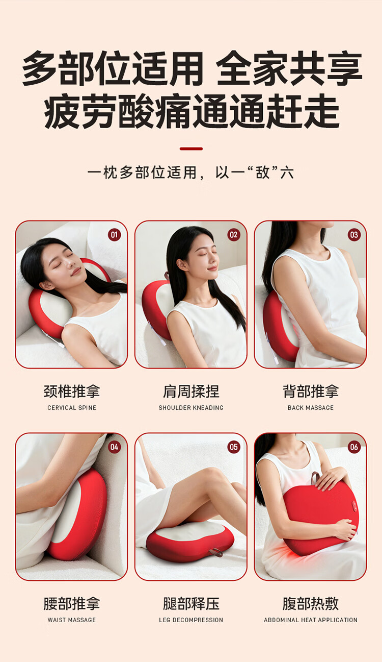志高颈椎按摩器全自动肩颈按摩枕头腰部按摩仪背部揉捏靠垫送父母长辈朋友礼品实用元旦礼物 红色彩盒充电款【无线使用+家车两用+全配置】