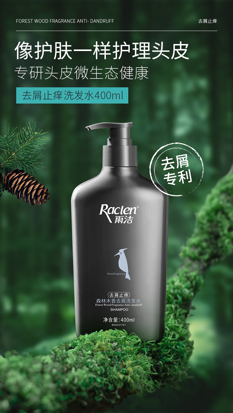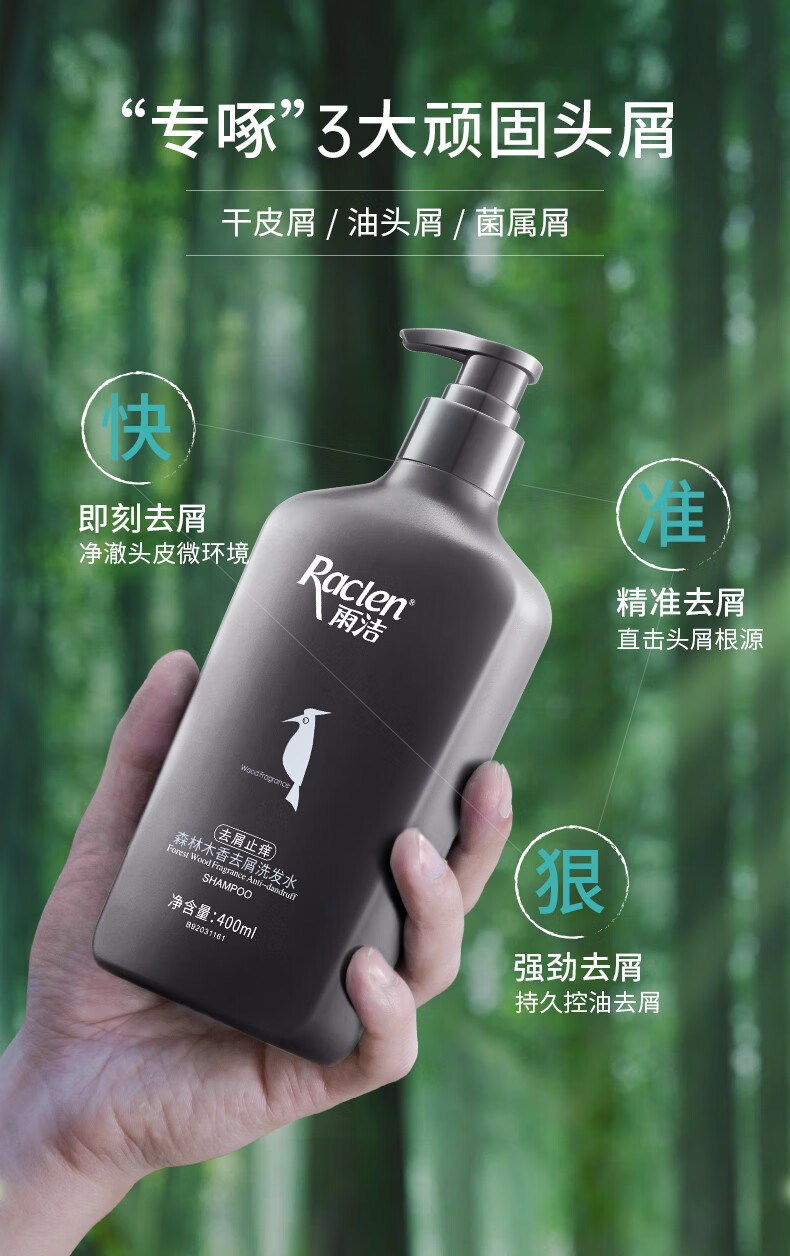 雨洁(RACLEN)啄木鸟洗发水森林木香去屑止痒洗发露持久清爽柔顺洗头膏洗发液 【啄屑止痒】单瓶400ml