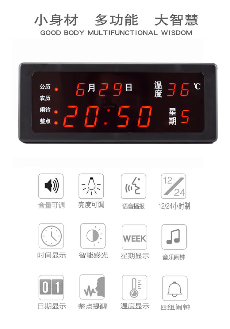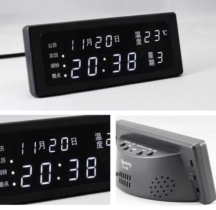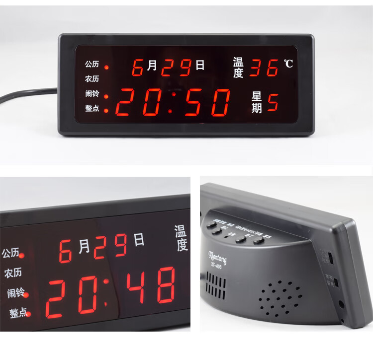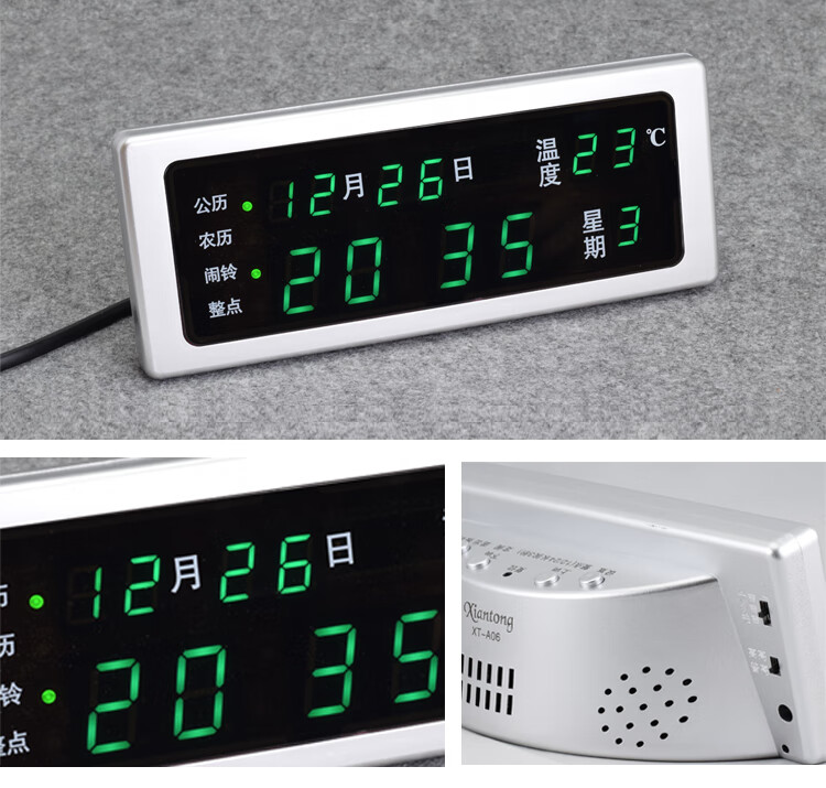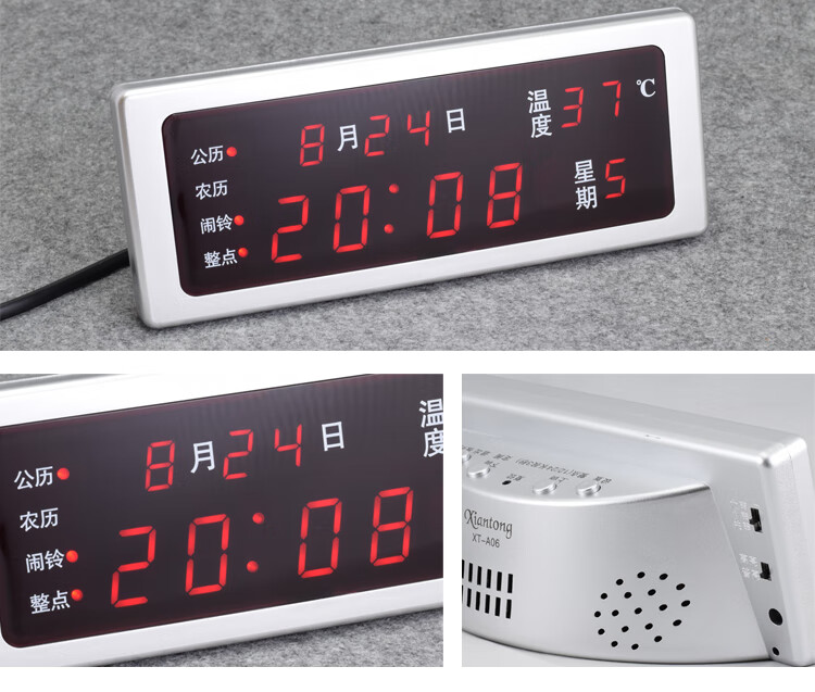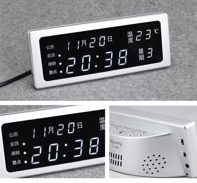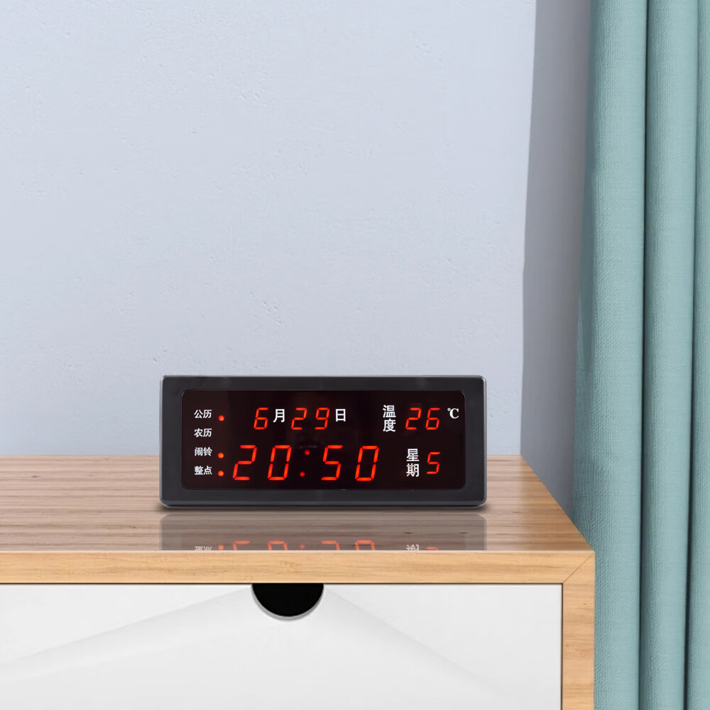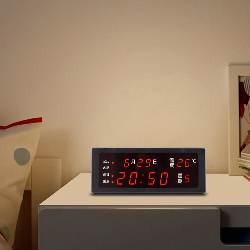 先通2025年新款万年历电子钟静音现代简约客厅挂钟时钟座钟闹钟大屏 升级版 银色 红光 万年历电子钟