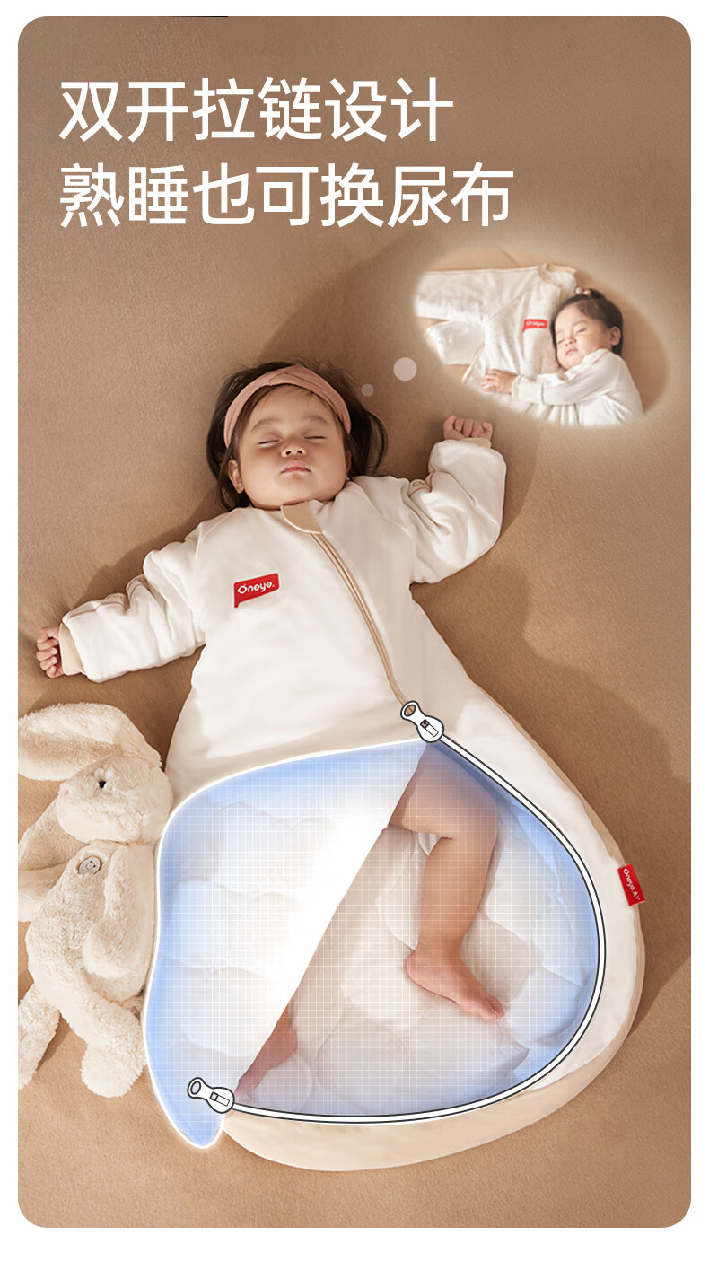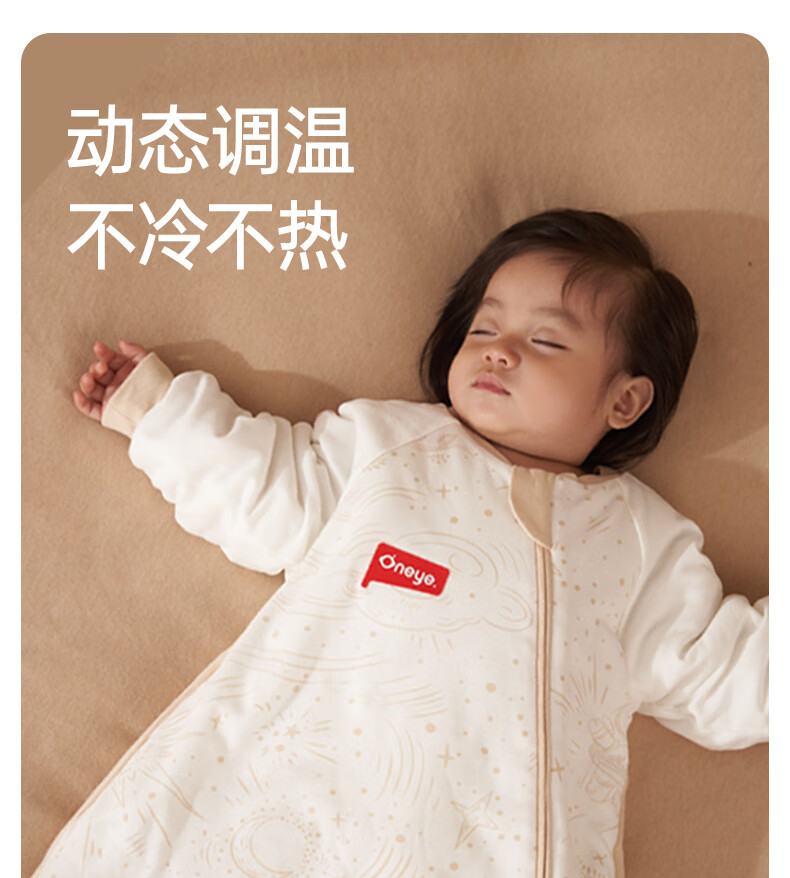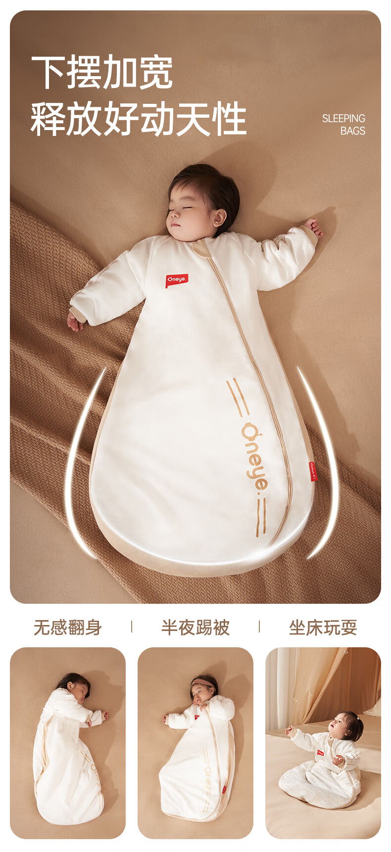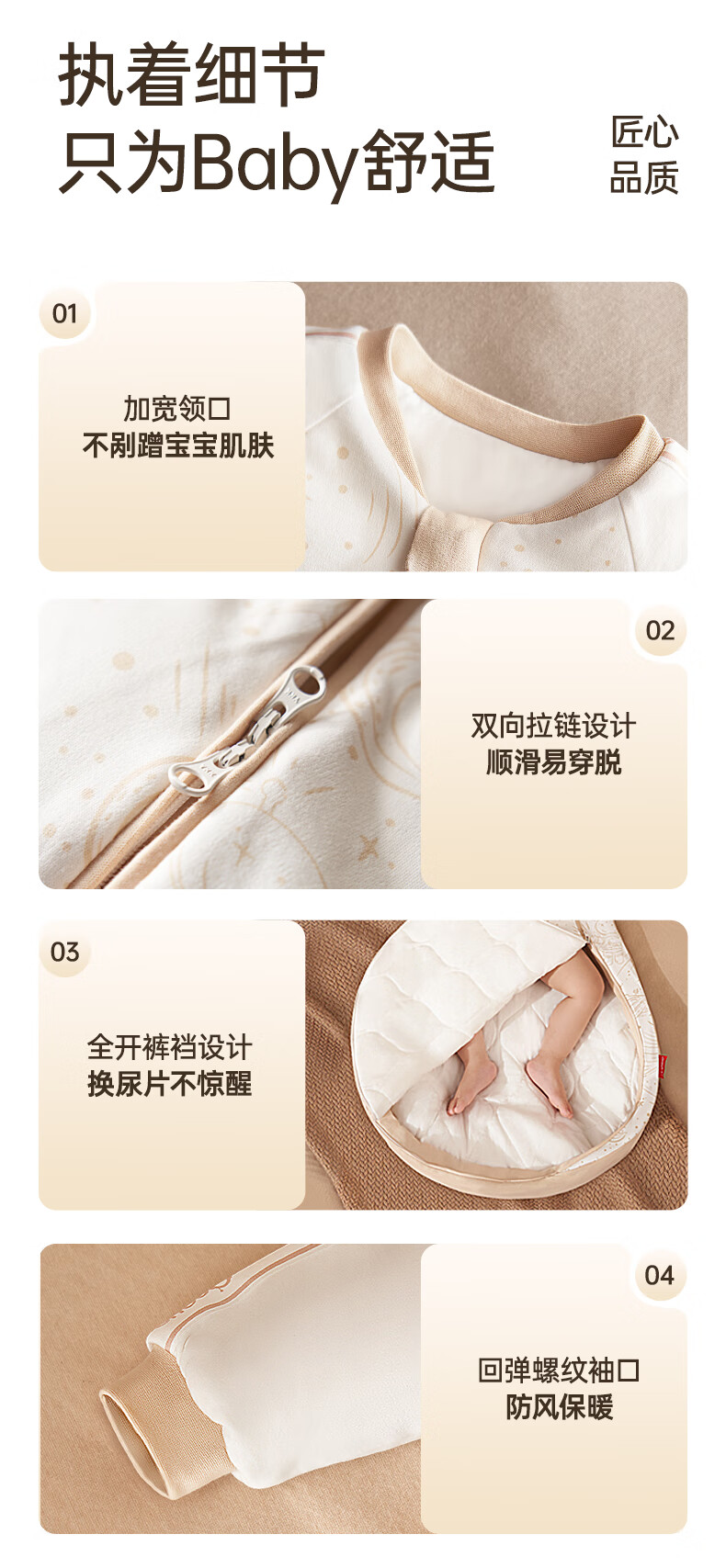 丸丫婴儿睡袋秋冬恒温防踢被宝宝儿童包腿睡袋纯棉一体式睡袋连体睡衣 【秋冬加厚】卡其织带款 8-18℃ 【L】推荐身高87-90cm 18-24个月