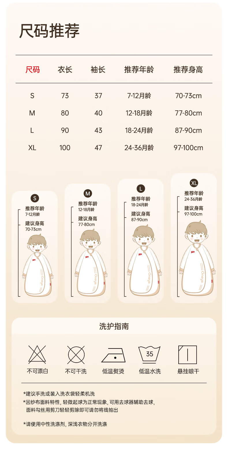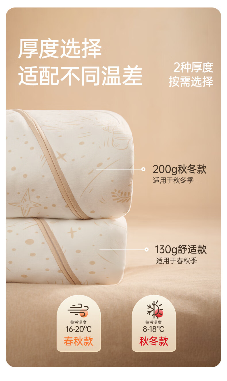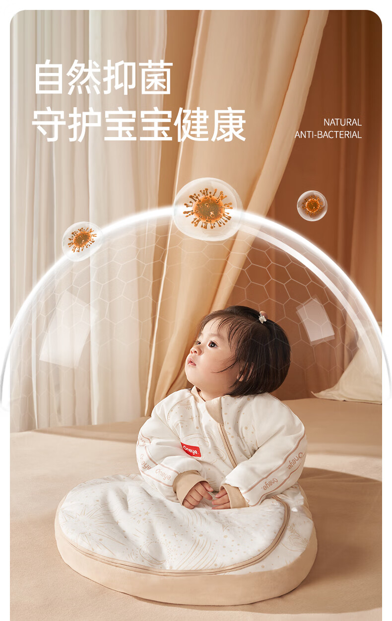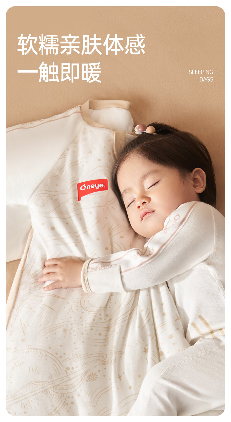 丸丫婴儿睡袋秋冬恒温防踢被宝宝儿童包腿睡袋纯棉一体式睡袋连体睡衣 【秋冬加厚】卡其织带款 8-18℃ 【L】推荐身高87-90cm 18-24个月