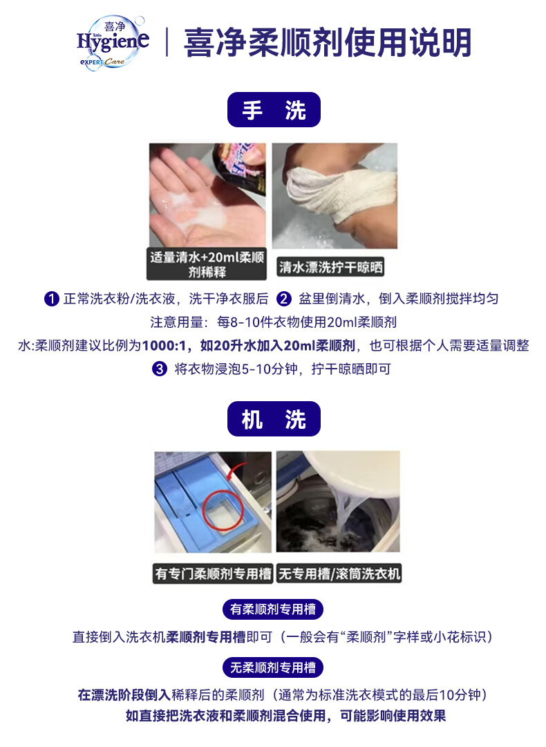 喜净(Hygiene)泰国原装进口柔顺剂 洗护浓缩持久浸泡衣服留香去静电 芍药盛放480ml