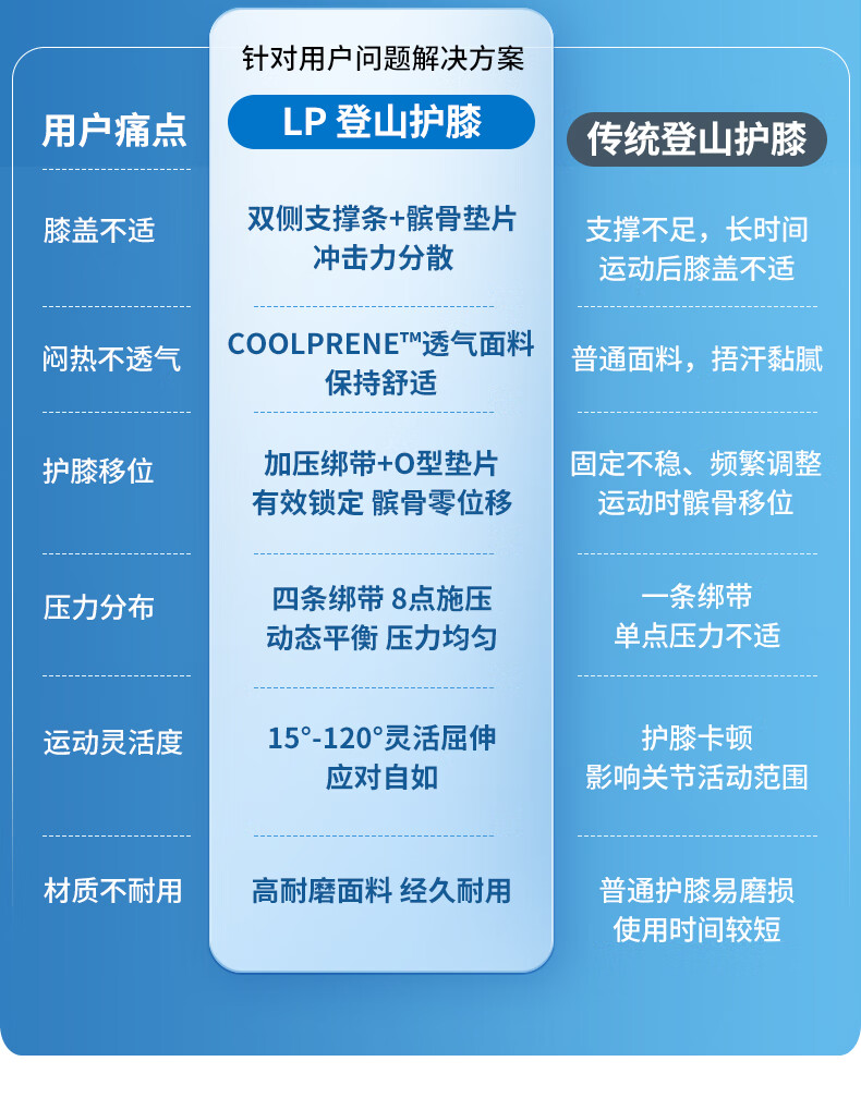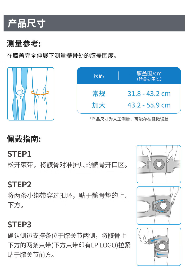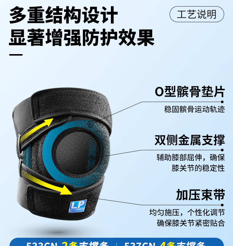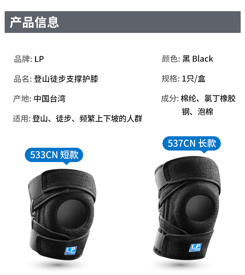 LP 专业登山护膝 户外骑行徒步跑步高透气运动护具533系列运动护膝 短款双弹簧533CN 【礼盒两只装】 均 码