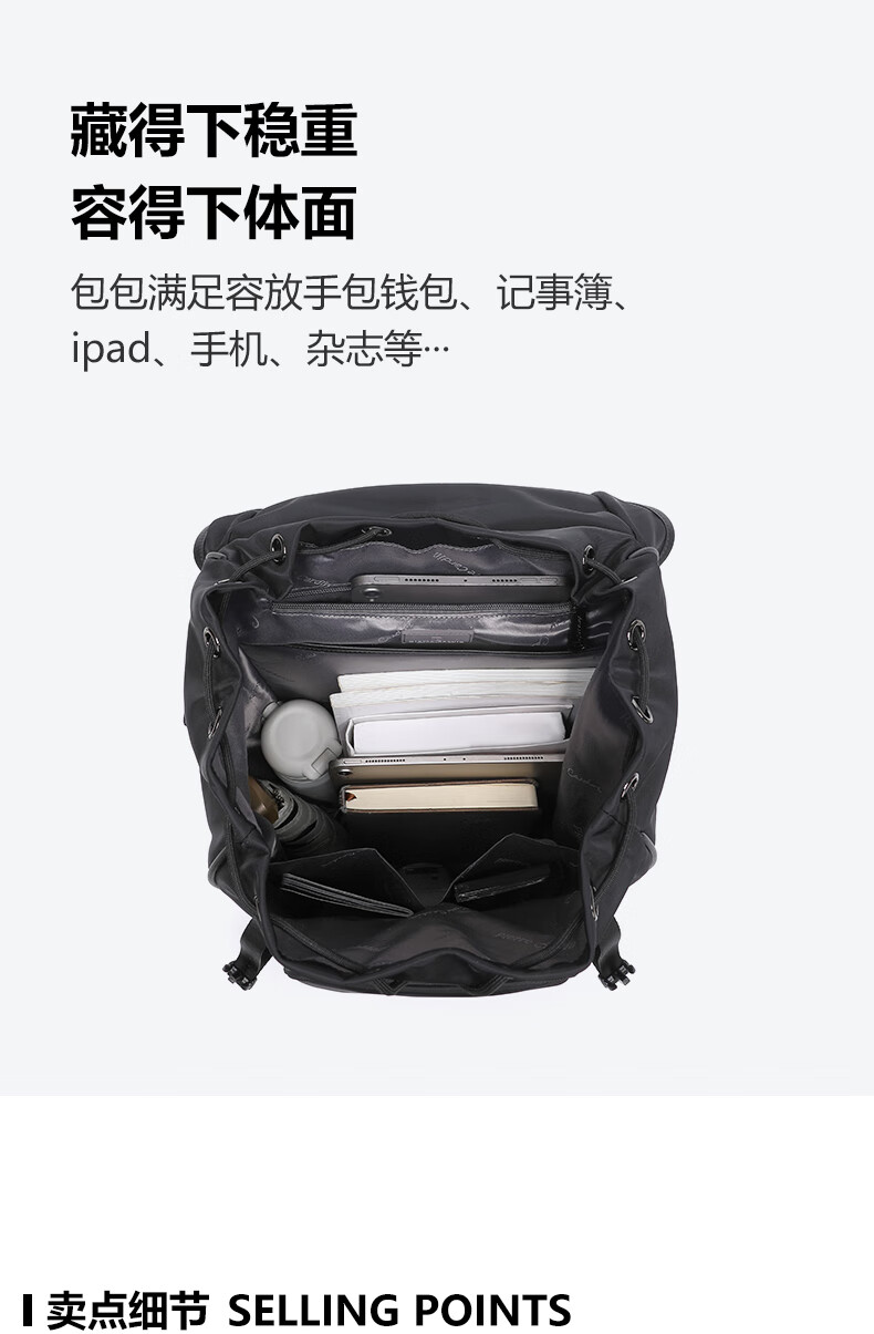 inateck小伞包斜挎包女小包轻量化胸包单肩包学生运动休闲旅行防水皮膜 横款-幻夜黑