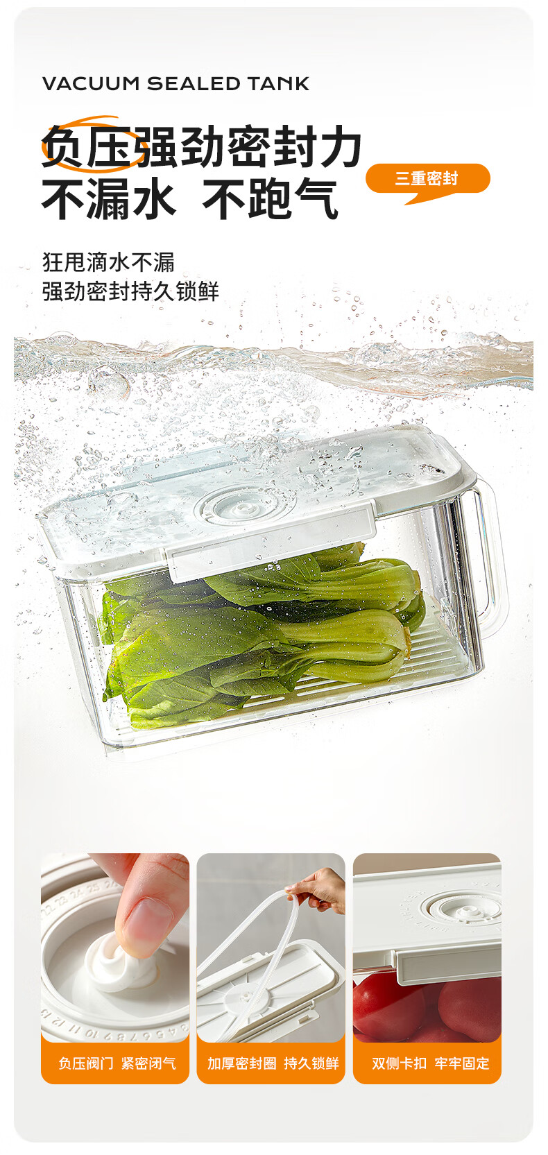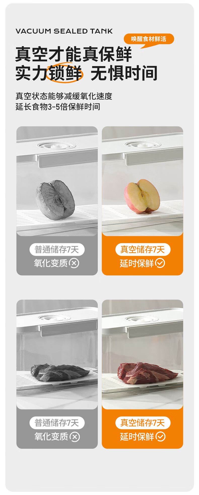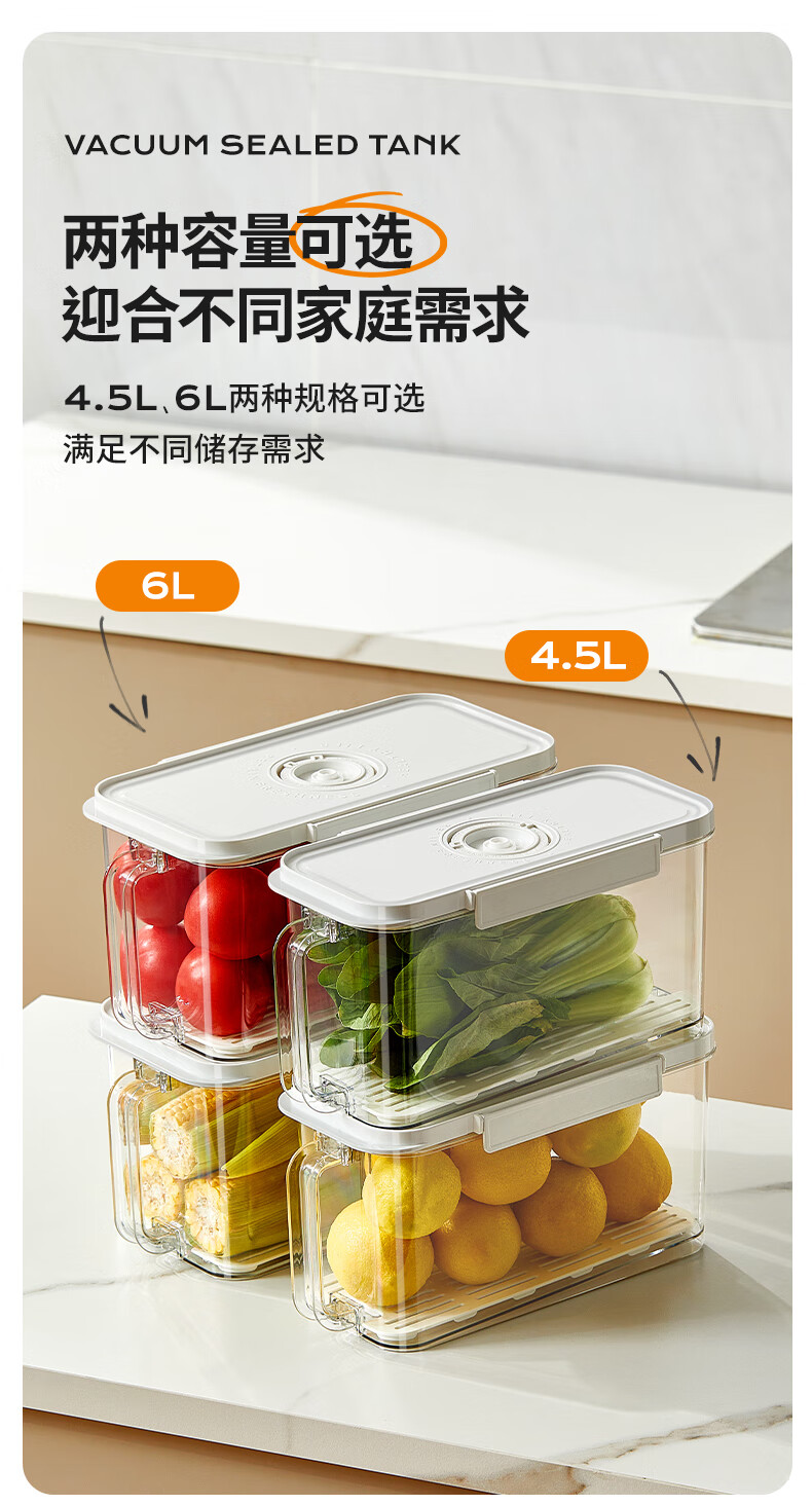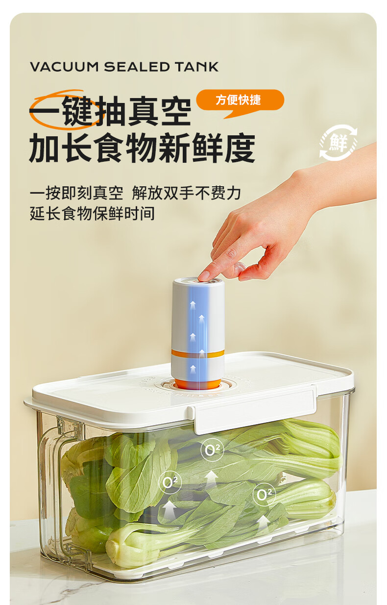 艾仕可真空保鲜盒密封食品级水果蔬菜冷冻分装专用整理冰箱食物收纳盒子 4.5L*1个装+电动抽真空泵