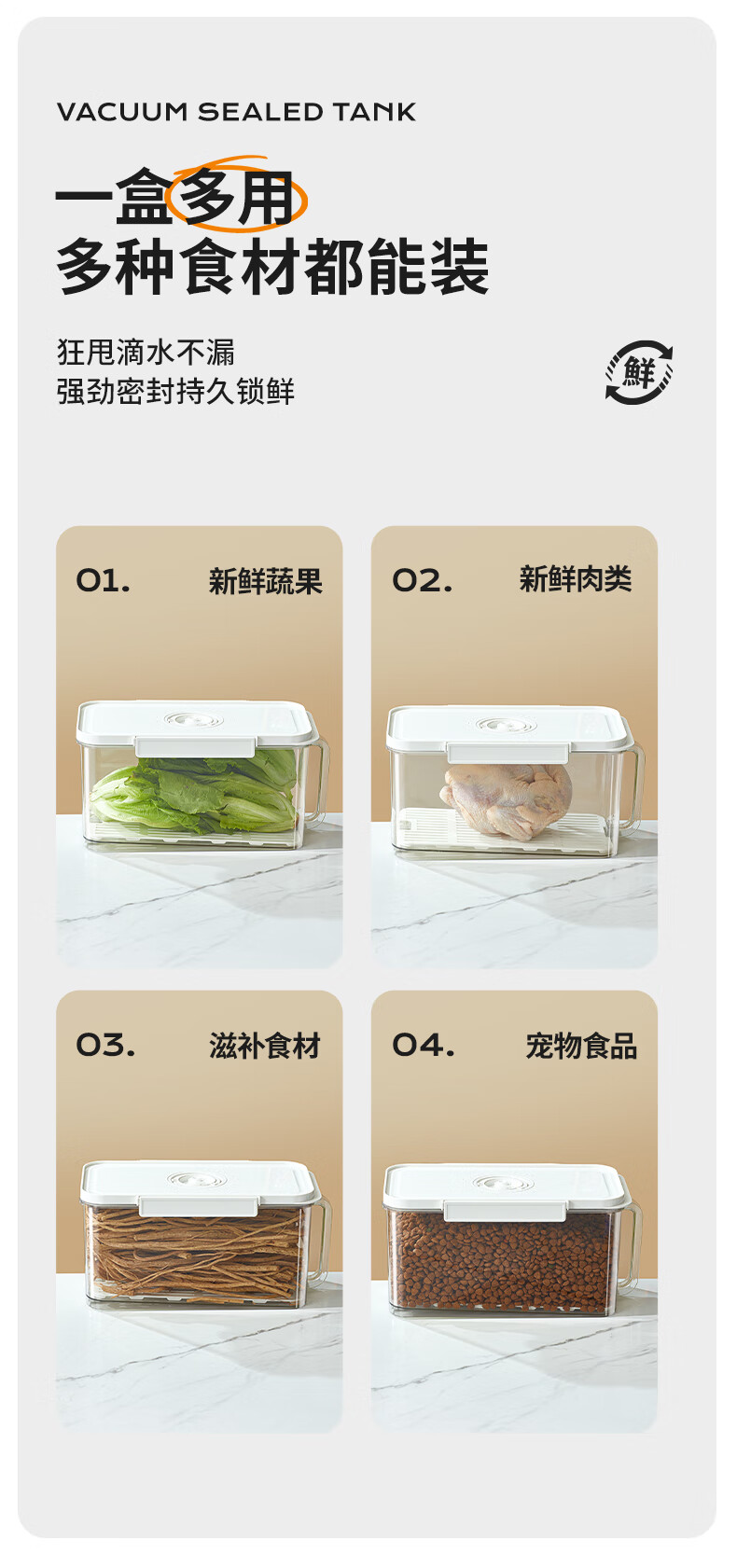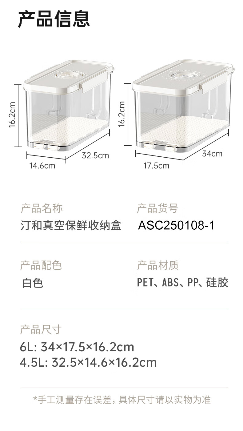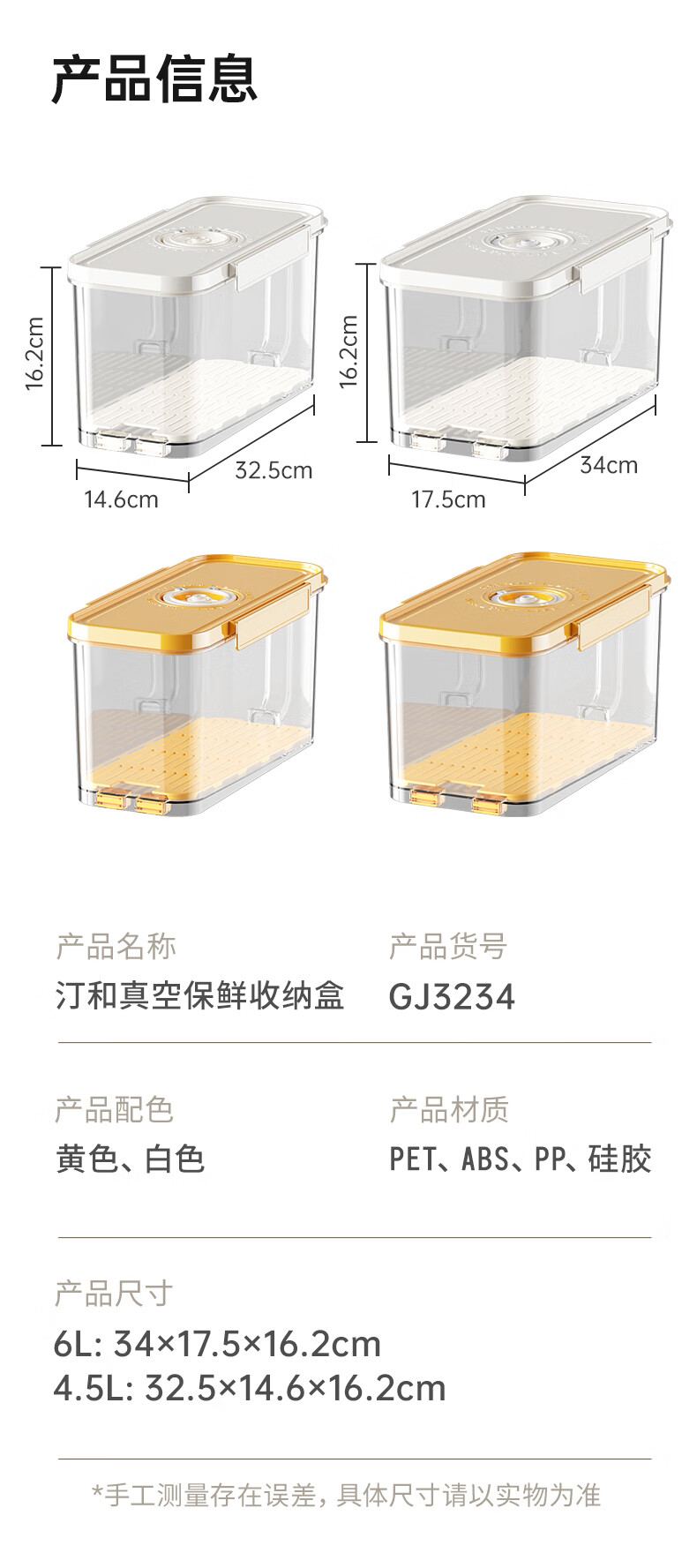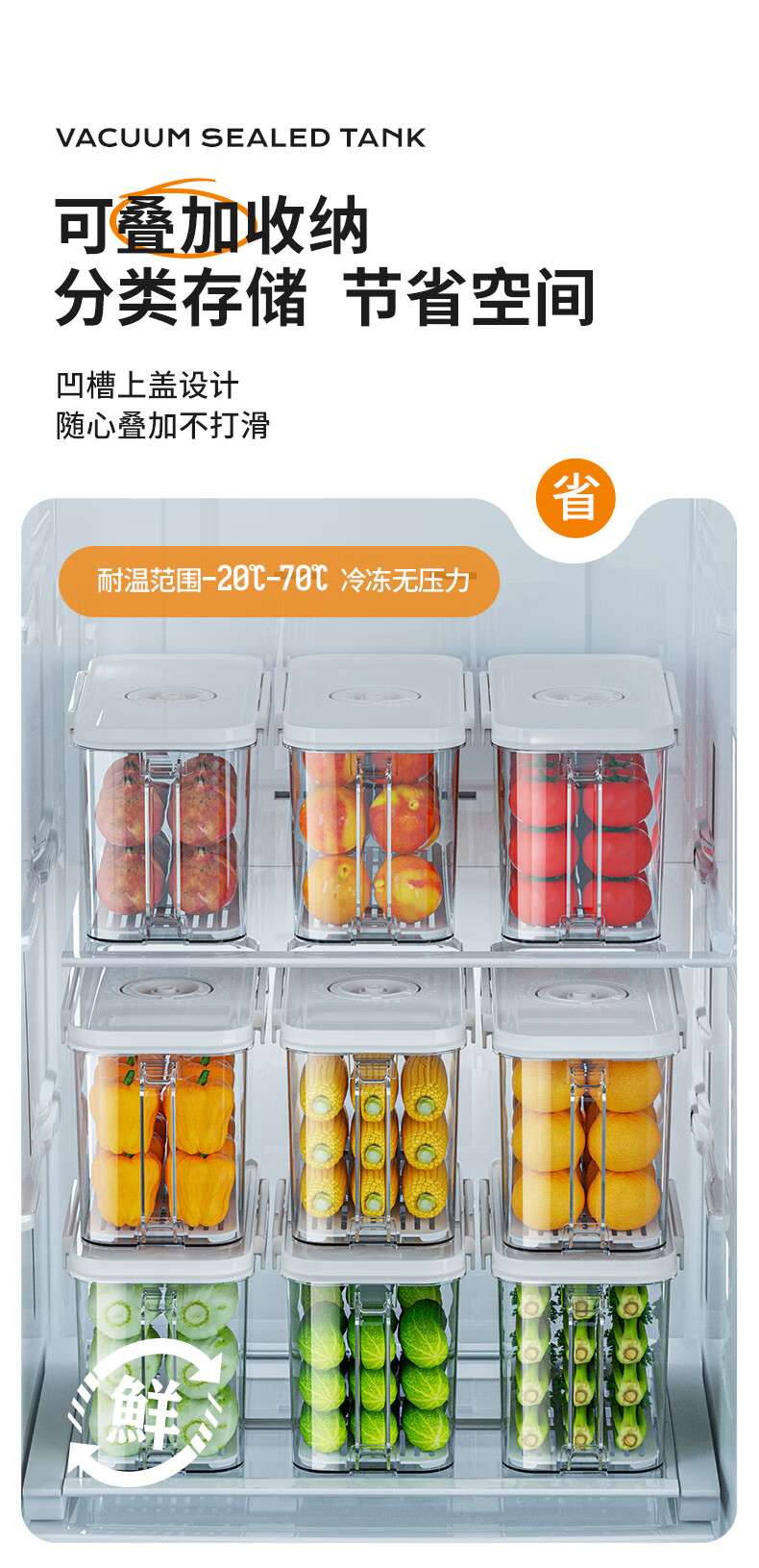 艾仕可真空保鲜盒密封食品级水果蔬菜冷冻分装专用整理冰箱食物收纳盒子 4.5L*1个装+电动抽真空泵