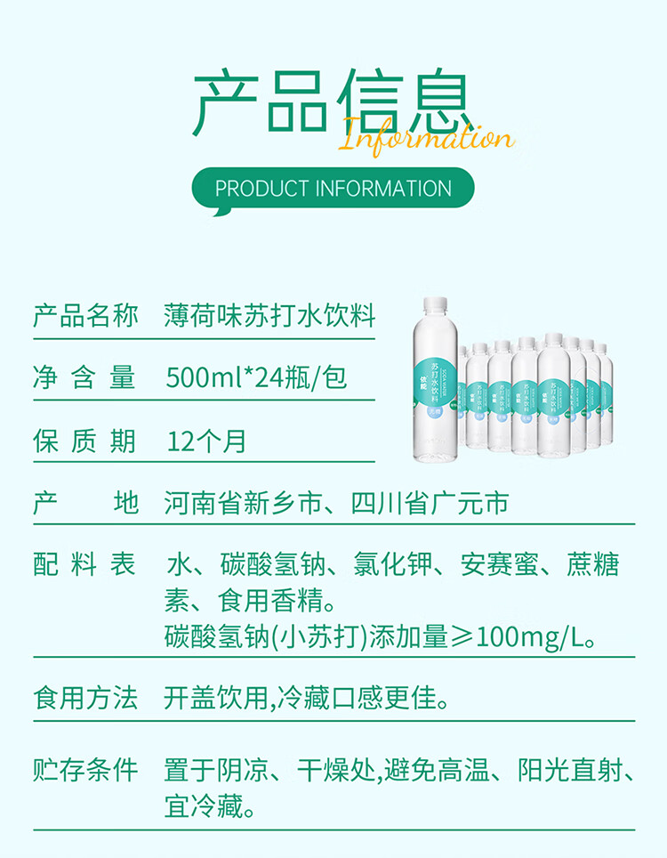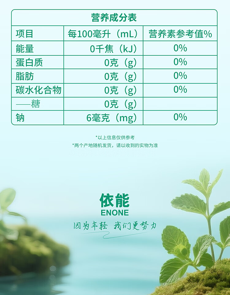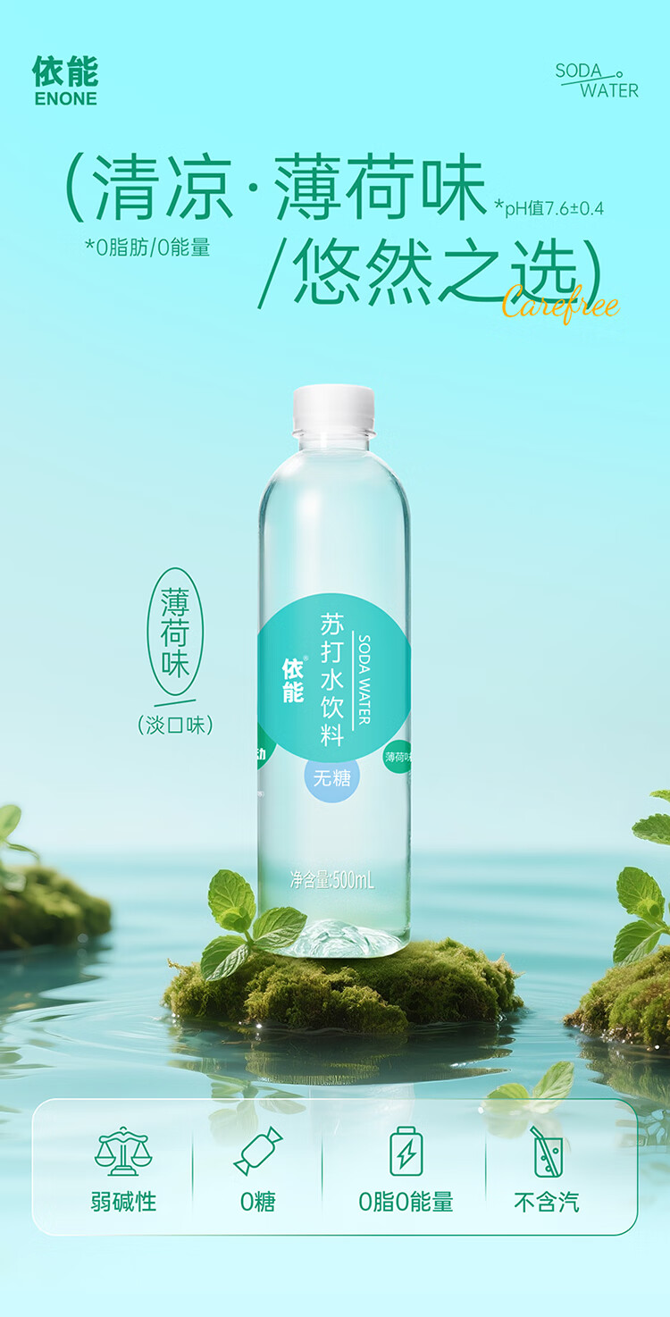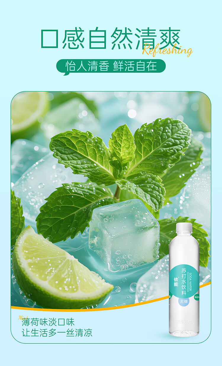依能薄荷味苏打水饮料 无糖无汽弱碱0脂 500ml*24瓶 塑膜装可饮用饮品