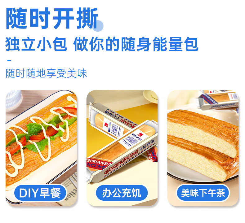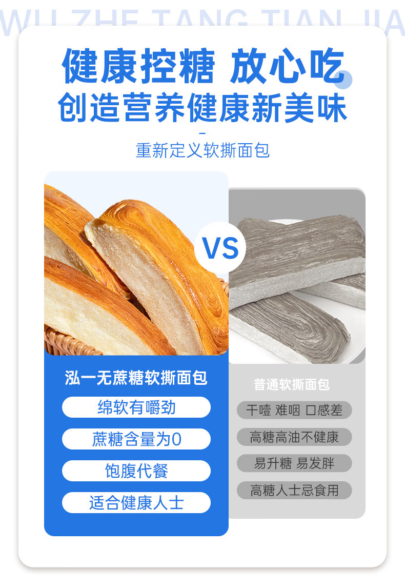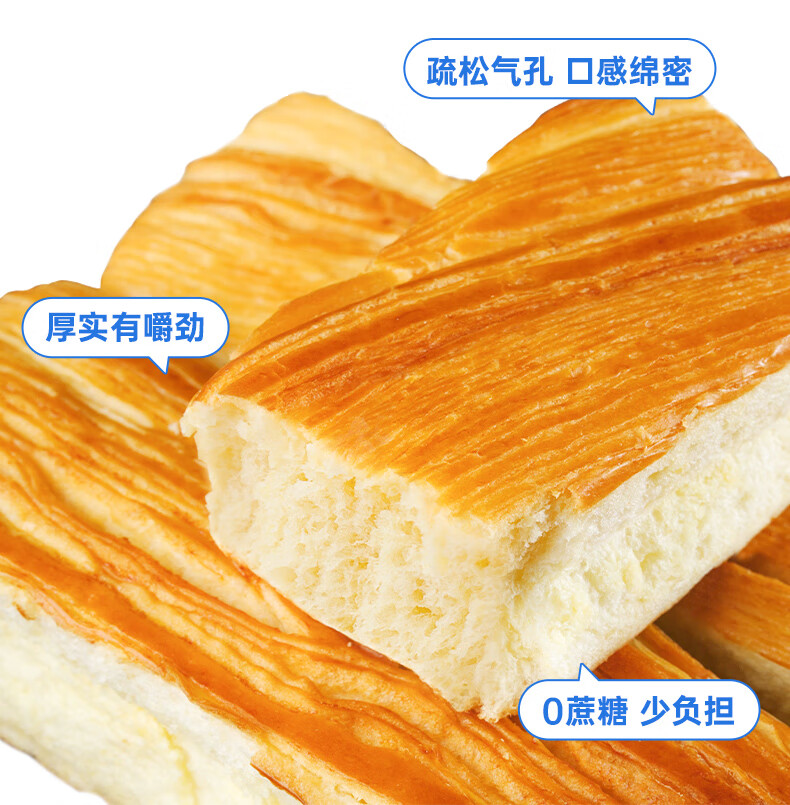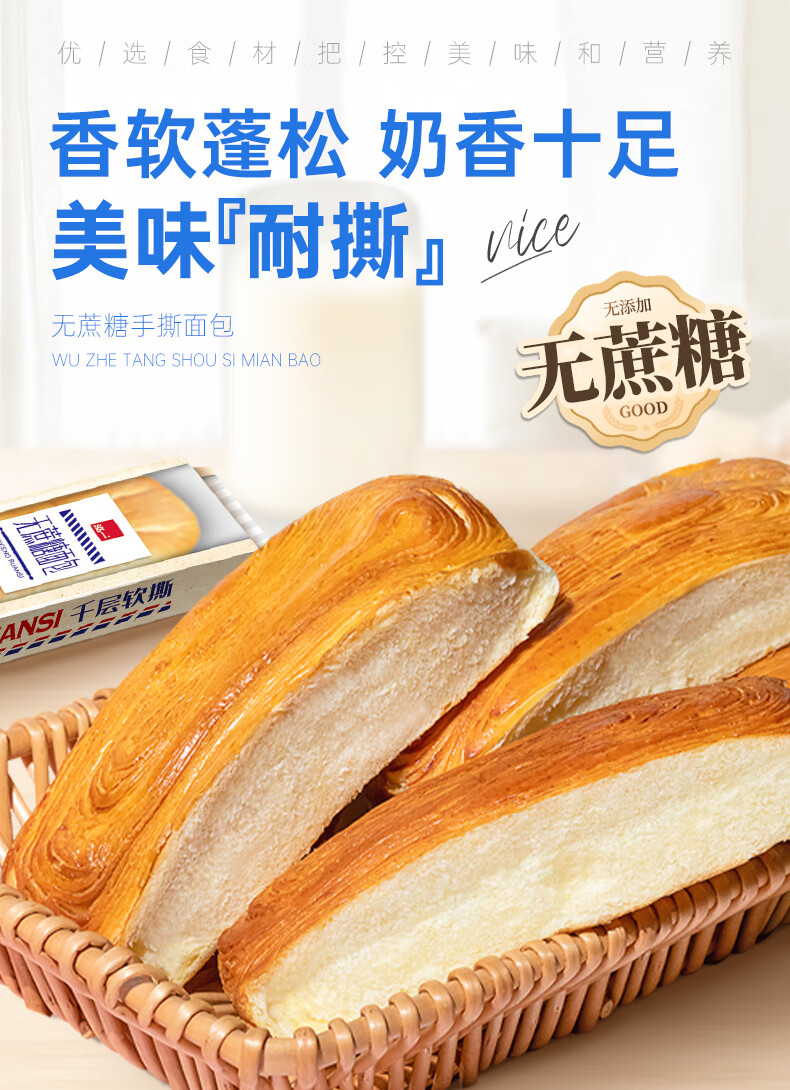泓一无蔗糖千层软撕面包 手撕面包营养早餐饱腹轻食代餐速食零食800g