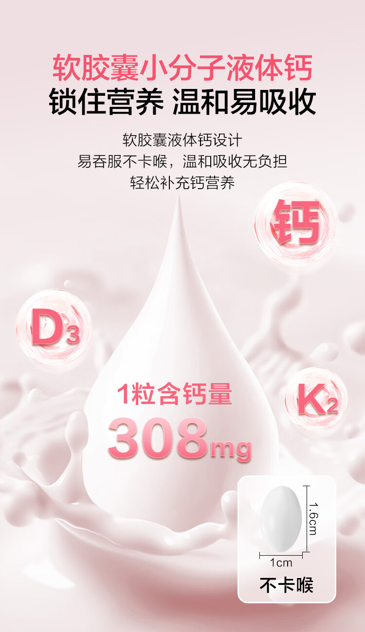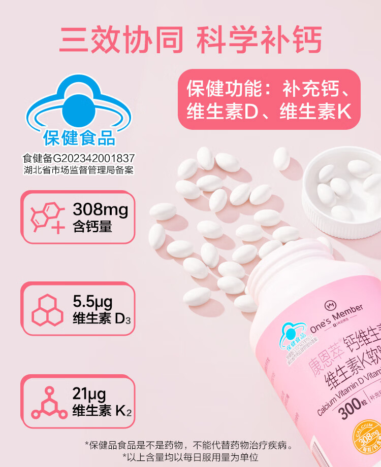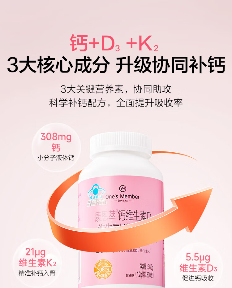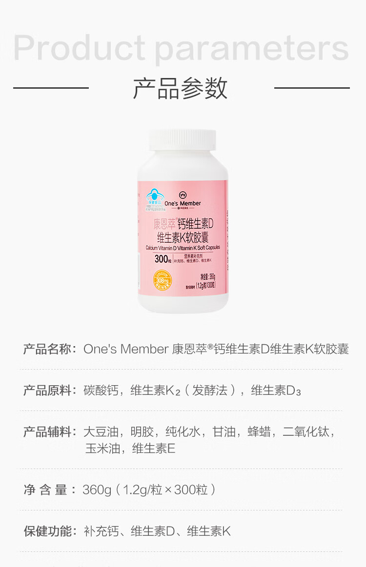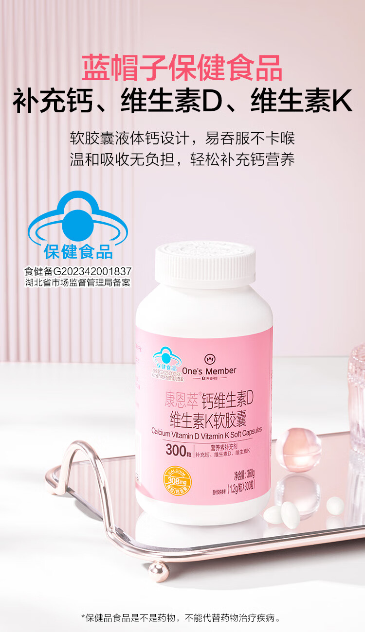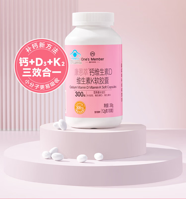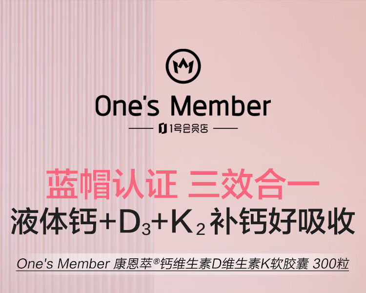 1号会员店(One's Member)液体钙维生素DK软胶囊 温和吸收中老年成人女士补钙骨骼健康300粒