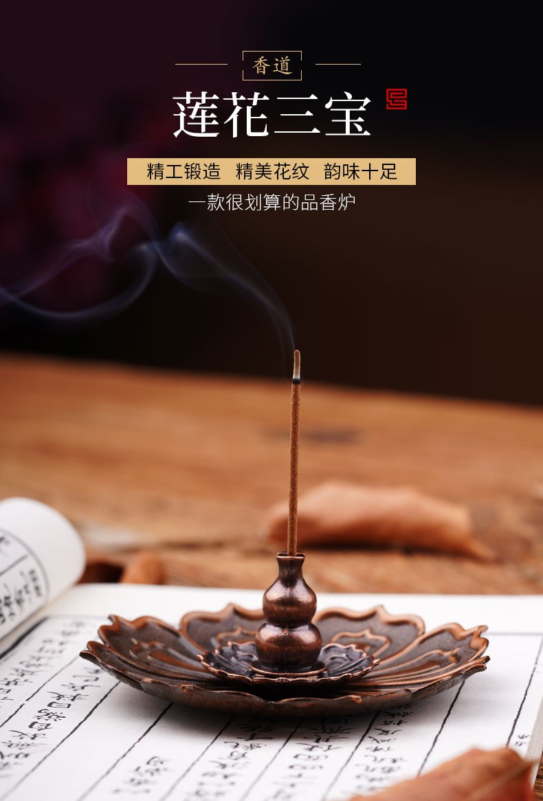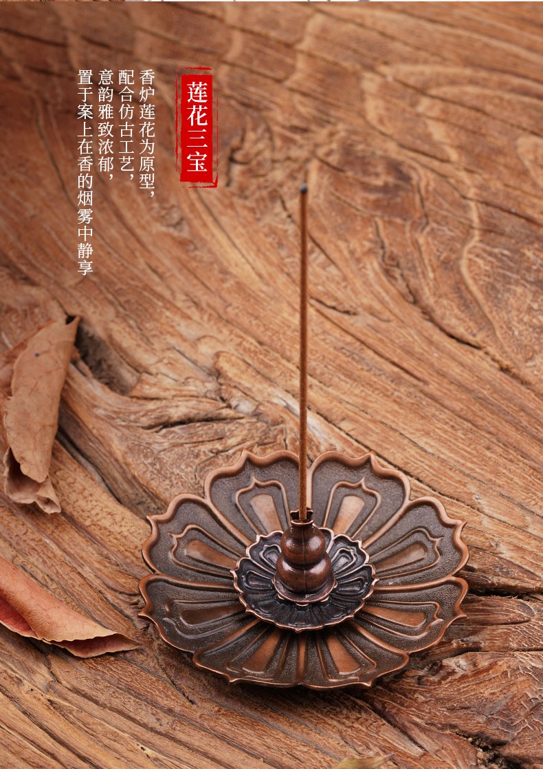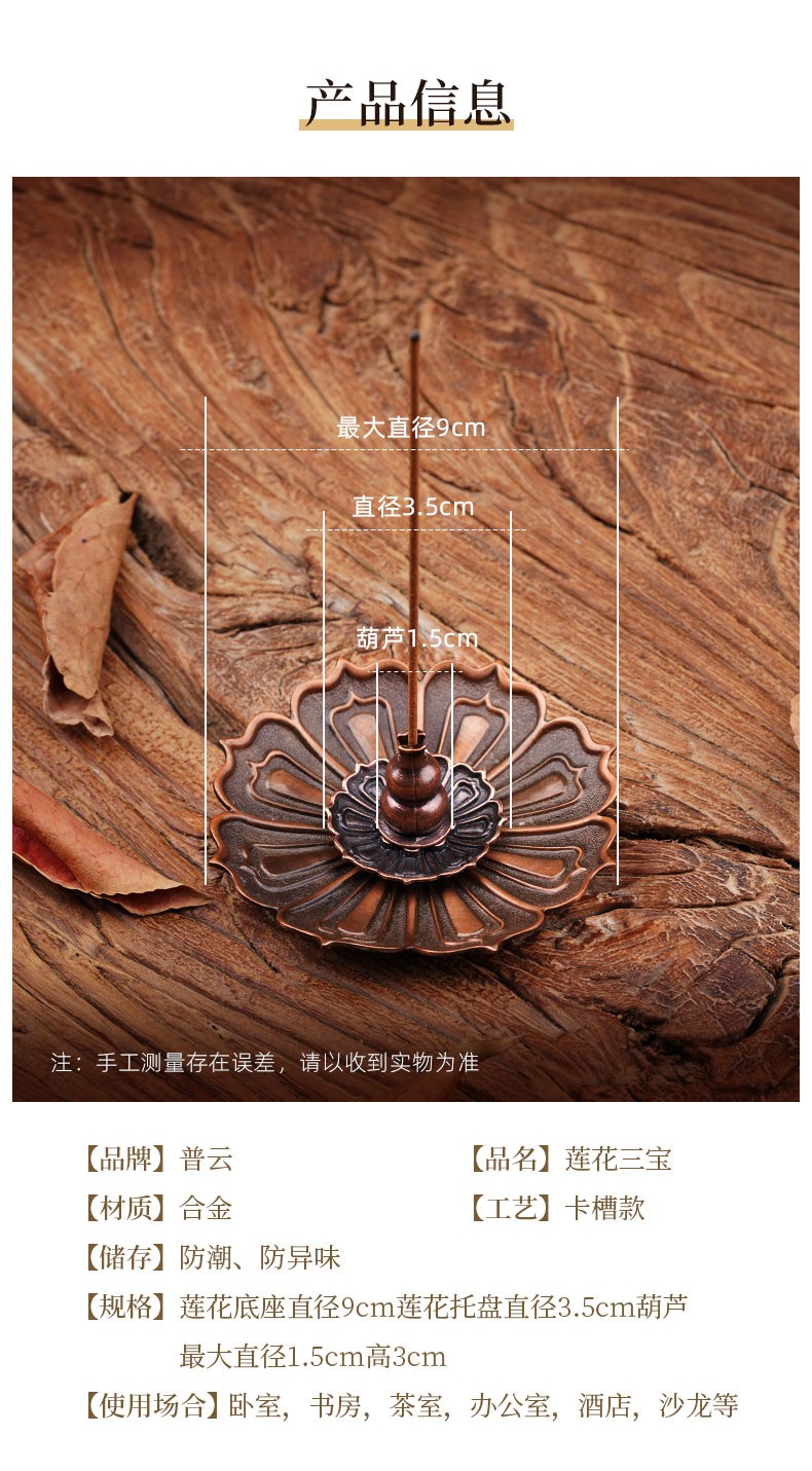 普云 莲花三宝铜合金香盘 三件套组香盘 香插适用盘香粗细款线香塔香 莲花三宝铜合金香盘
